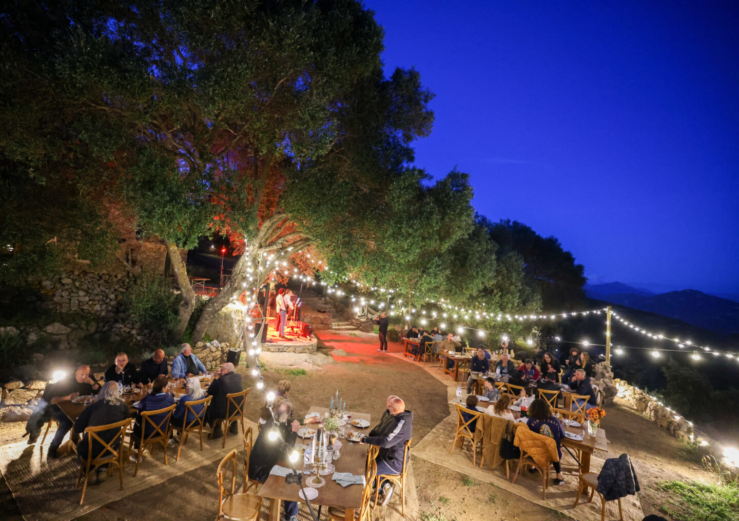À deux pas de Cargèse, en Corse du Sud, U Sognu di Paomia offre un cadre idyllique pour un mariage en plein air. Ici, pas de salle fermée, mais un vaste espace extérieur face à un panorama unique entre mer et maquis. Ce lieu féérique et authentique accueille idéalement 70 à 80 invités pour une cérémonie laïque en pleine nature, suivie d’un cocktail ou d’un dîner sous les étoiles. L’atmosphère est intime, conviviale et baignée de lumière. Pour prolonger la fête, trois bergeries aménagées permettent d’héberger vos proches sur place, alliant le charme simple de la tradition corse à un confort raffiné.