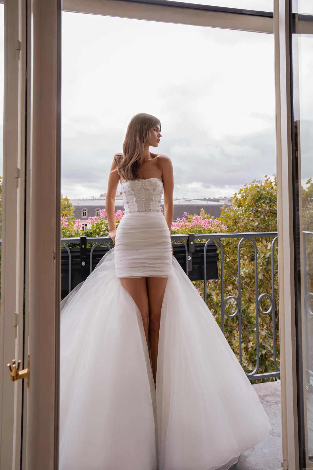 - Mise en valeur des accessoires : Avec une robe plus simple et épurée, les accessoires prennent toute leur importance. Chaussures, bijoux, voile, ou même chapeau, chaque détail est magnifié par la sobriété de la coupe courte.