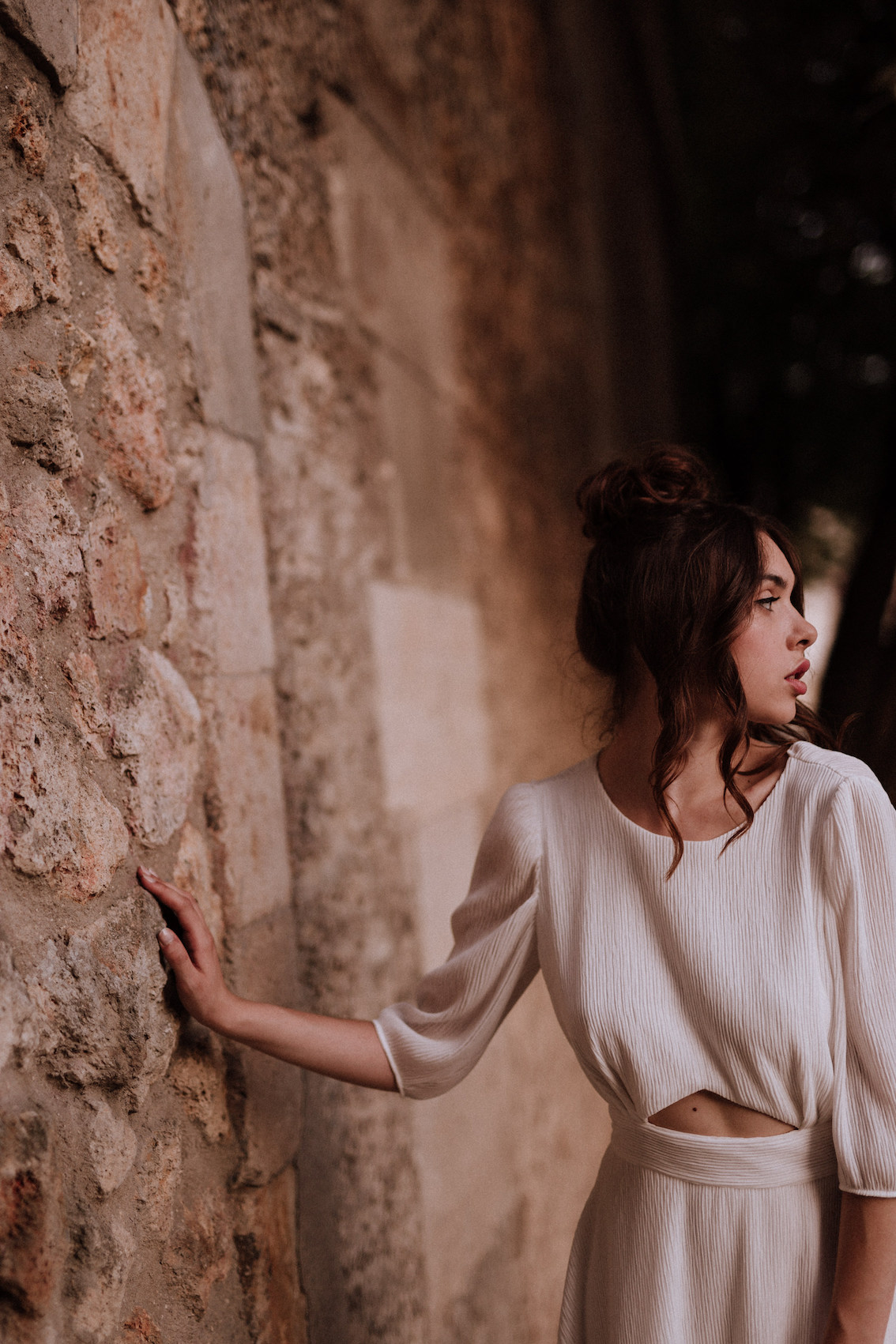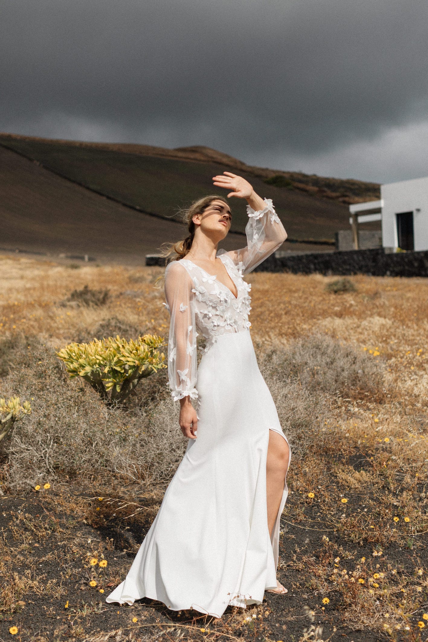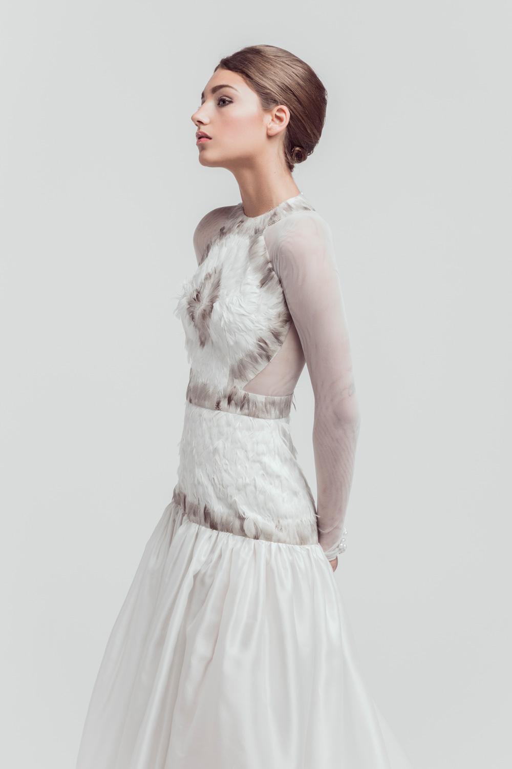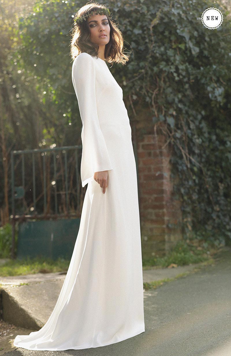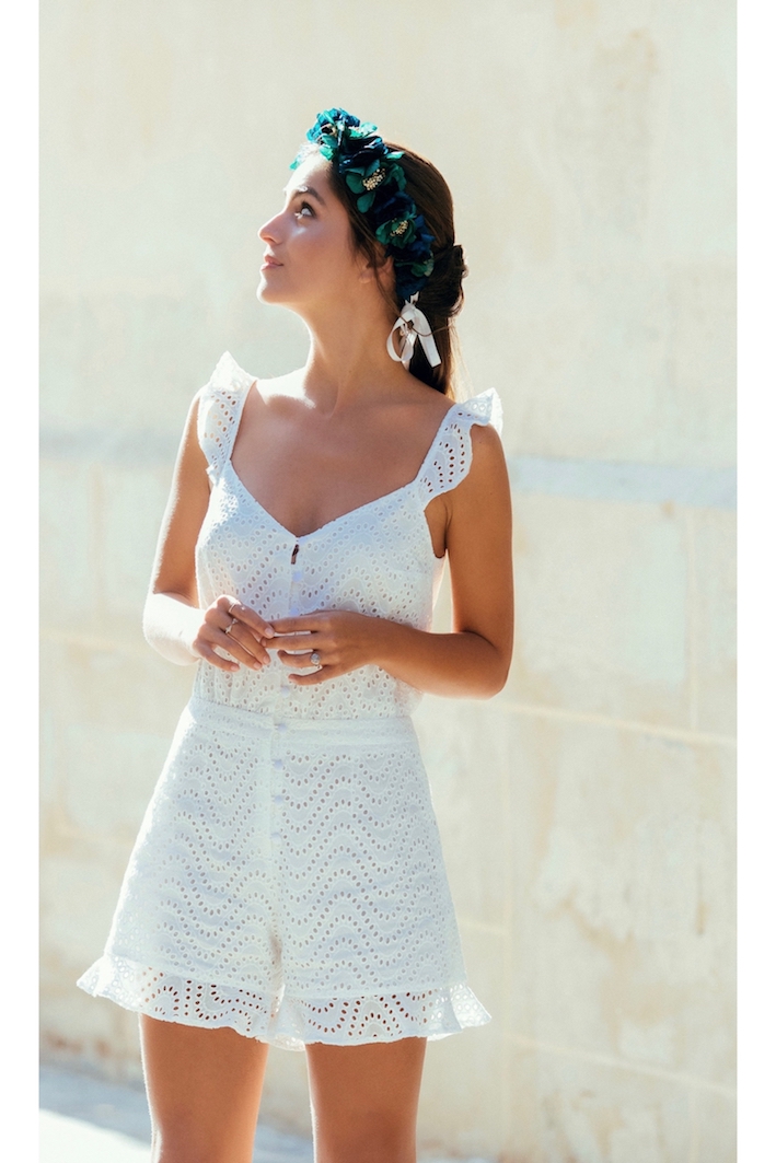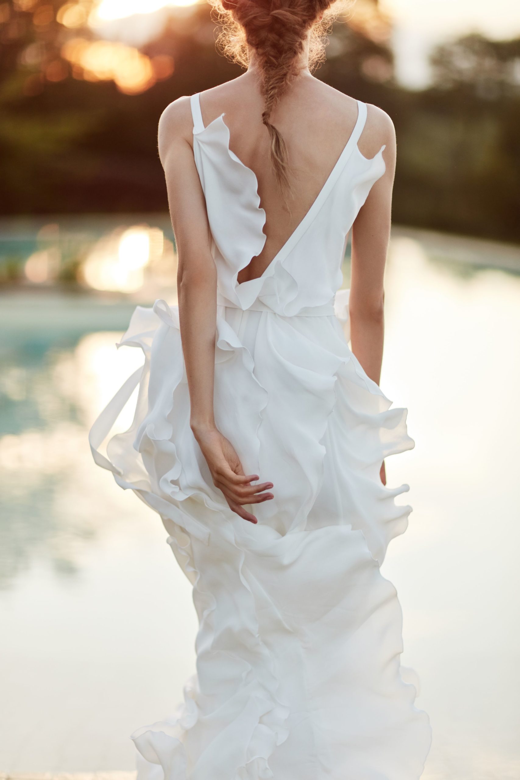 Ce mois-ci, on reste sur des tenues de mariée blanches. Par contre, on se laisse aller sur des petits détails qui attirent l’œil avec un tombé qui magnifie la silhouette.