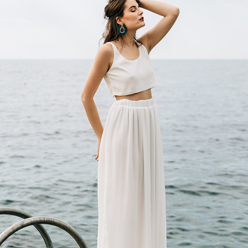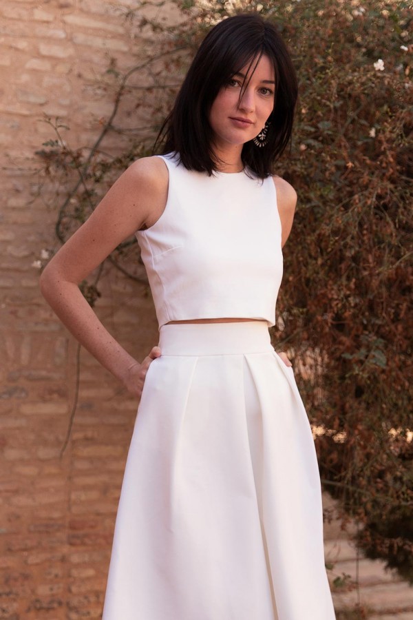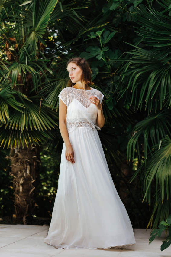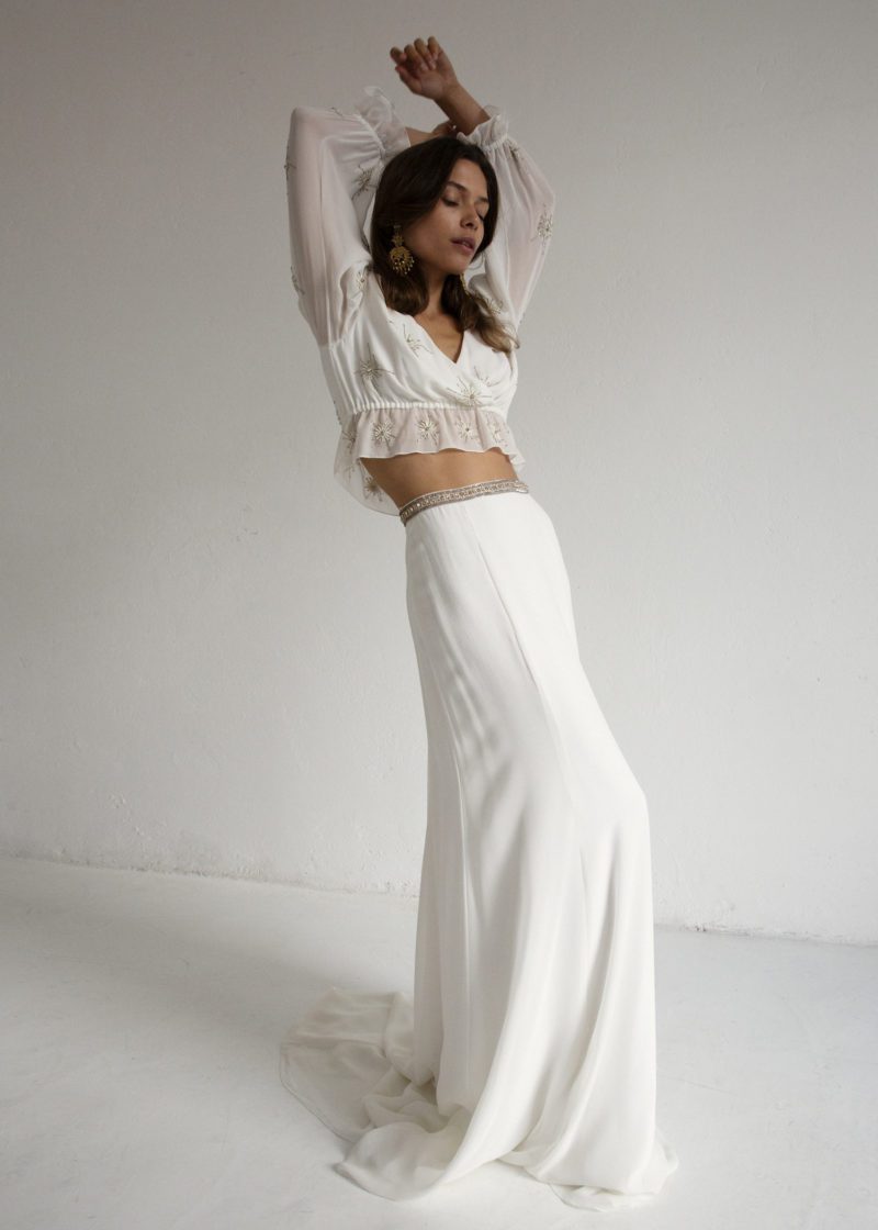 Pour votre tenue de mariage, vous trouvez la robe de mariée trop encombrante. Un haut travaillé, une jolie jupe et hop! Vous êtes satisfaite. Pour être belle en deux pièces, voici 20 ensembles qui vont vous plaire.