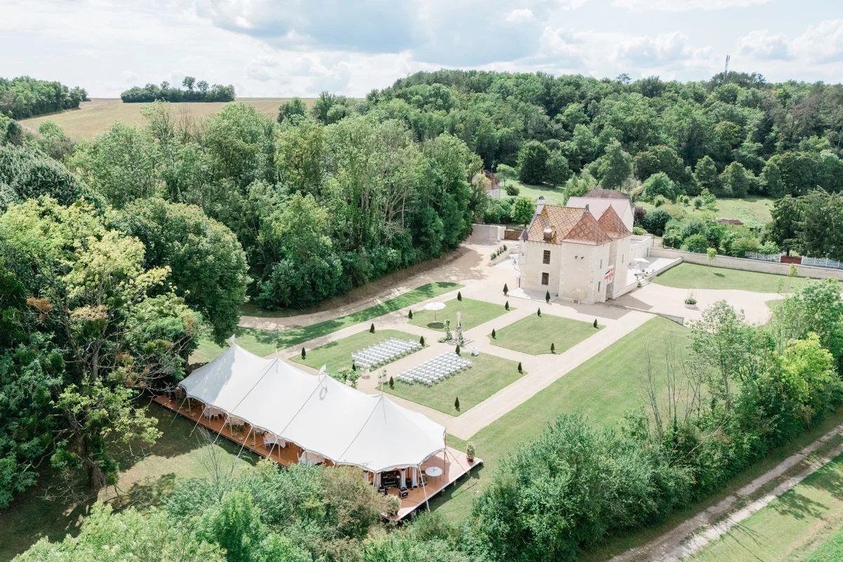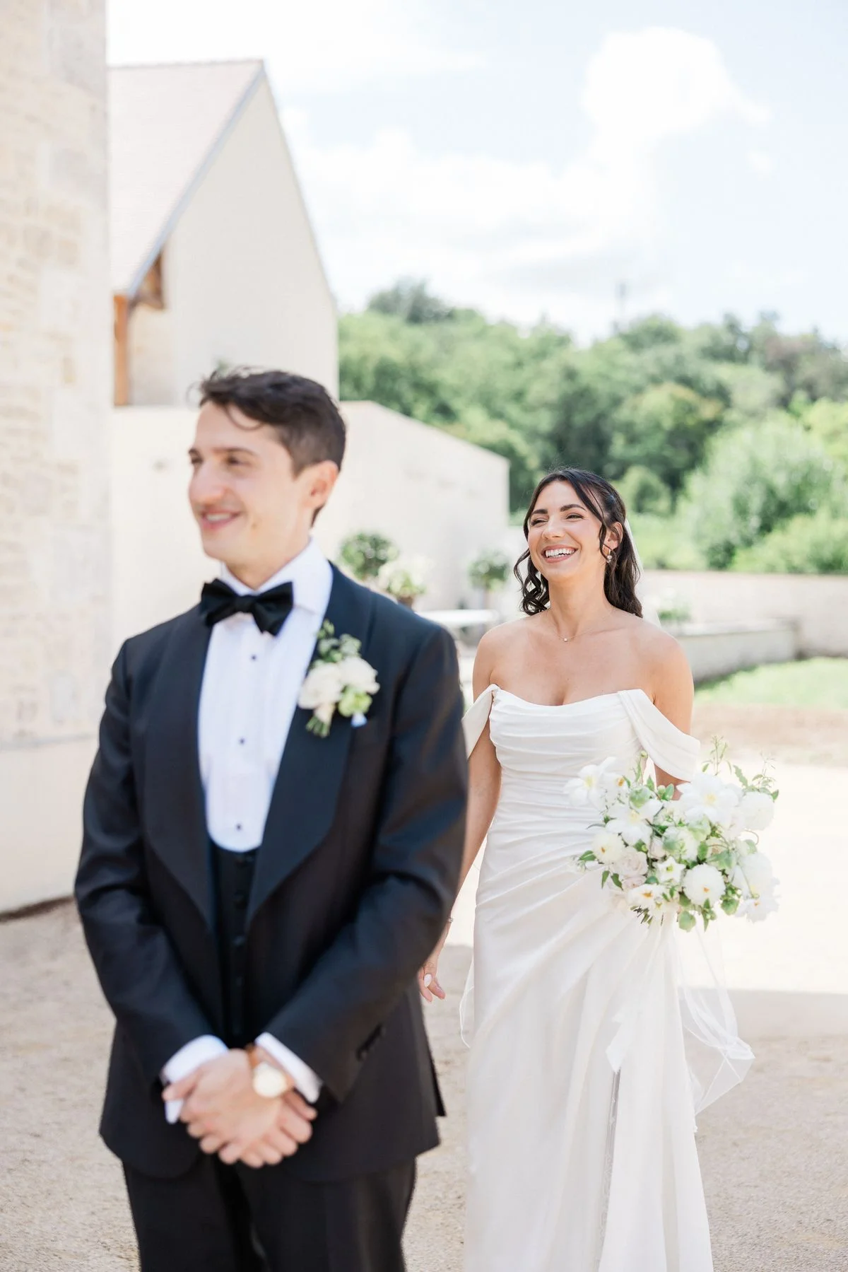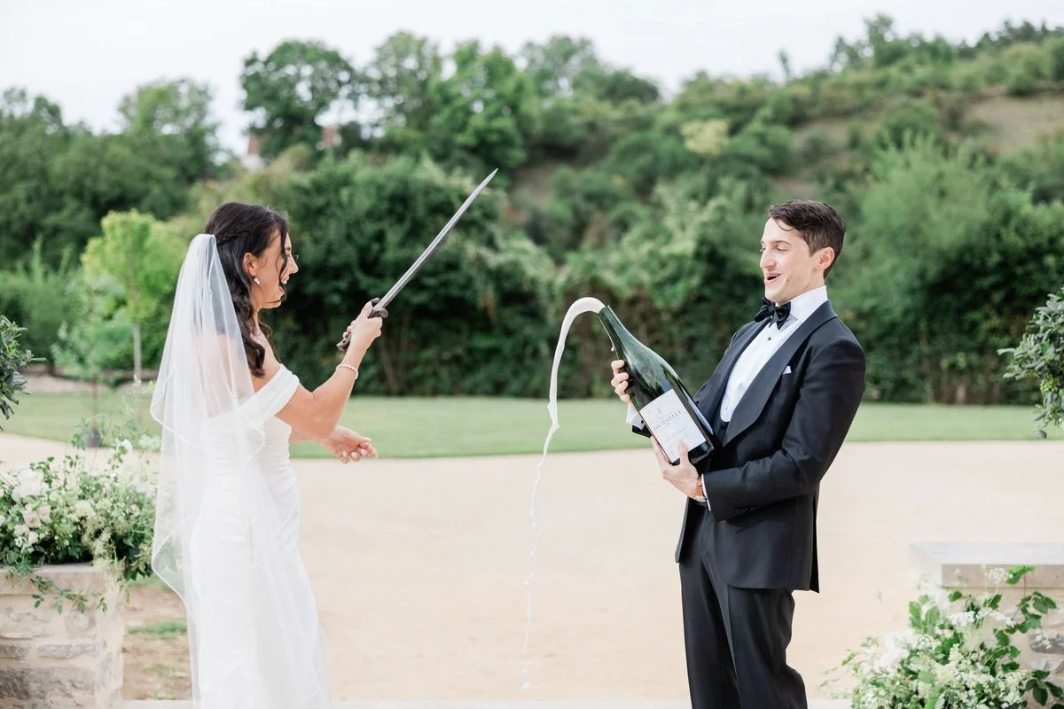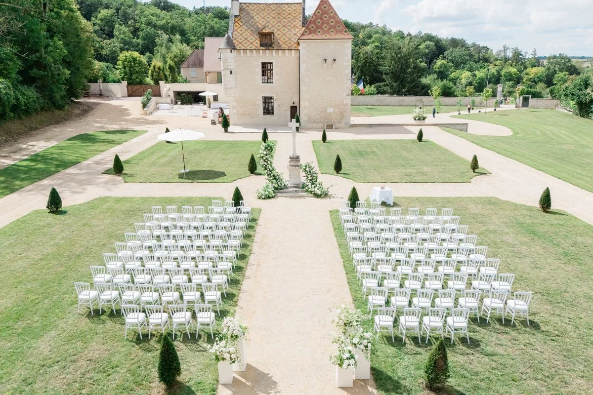 Nous avons d’abord listé les éléments clés que nous souhaitions : un mariage dans la demeure familiale, la présence de notre famille et de nos proches venus des États-Unis, une cérémonie laïque, et la date du 2 août 2025.