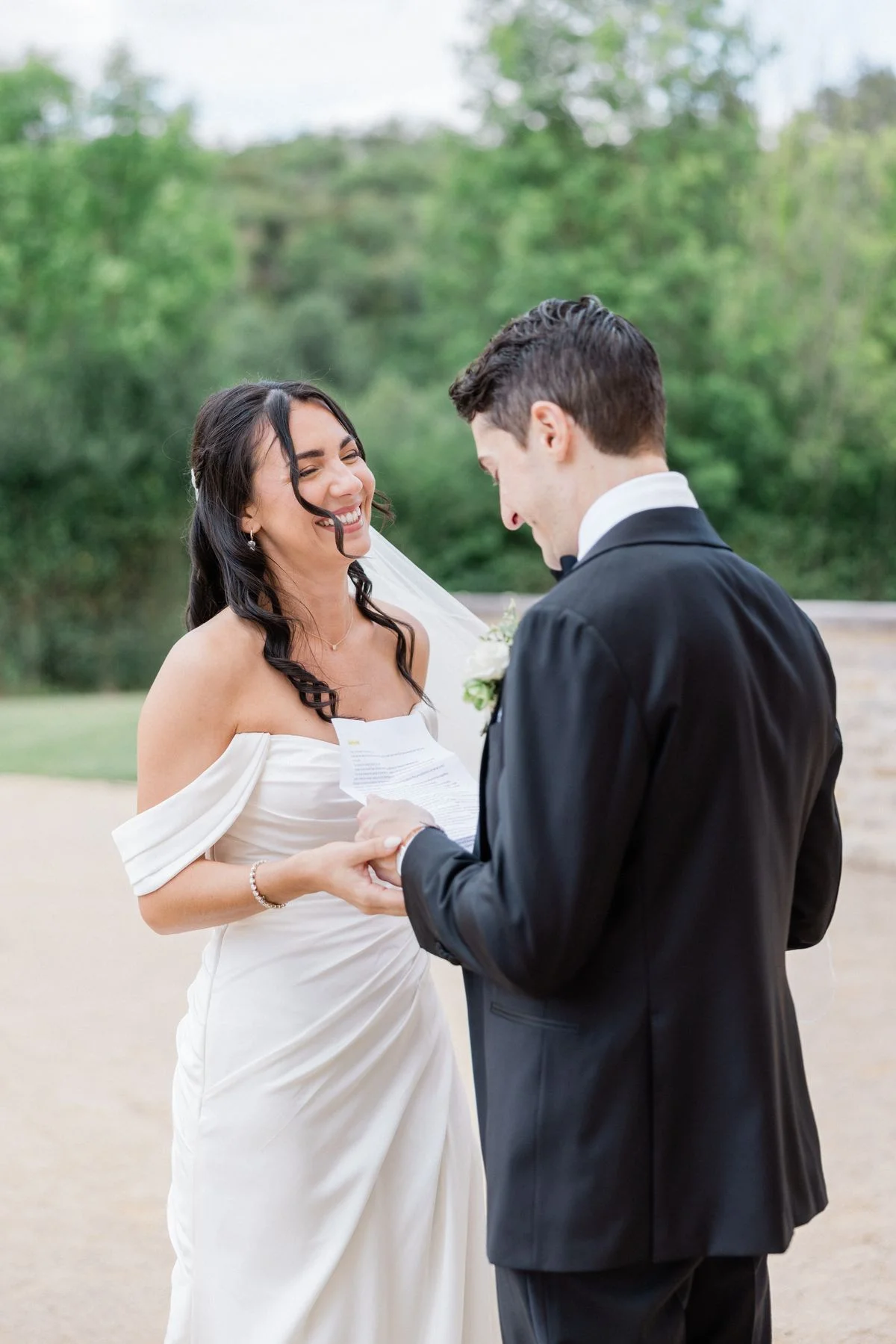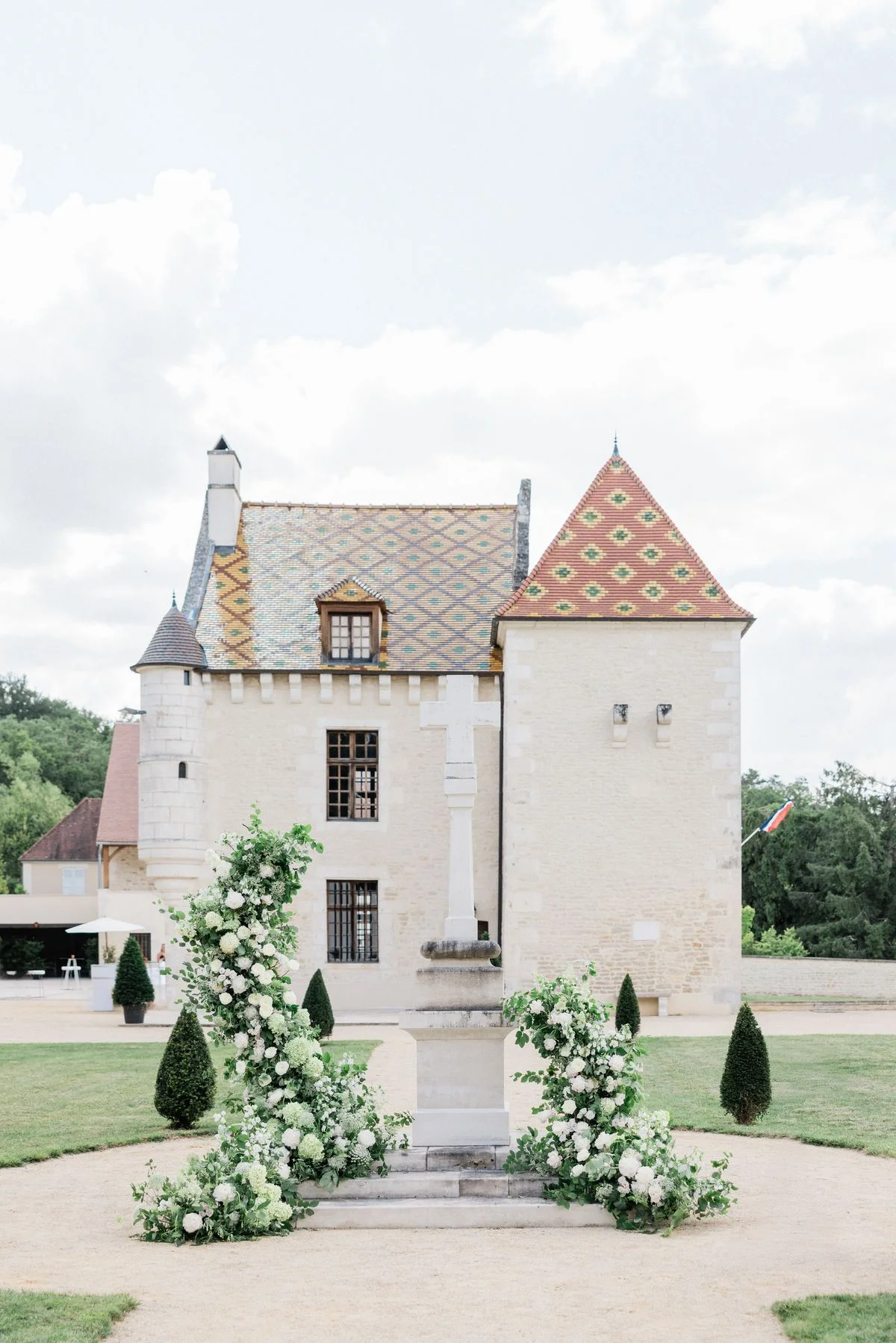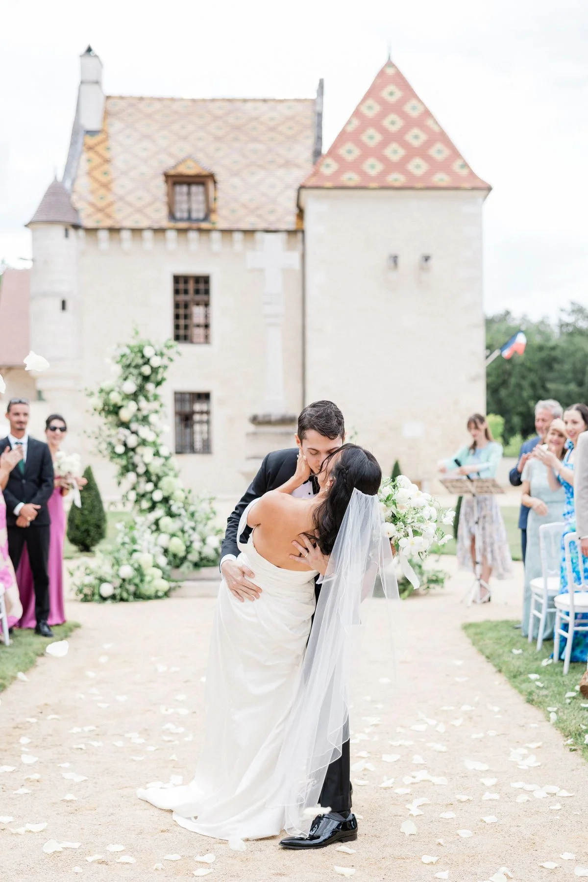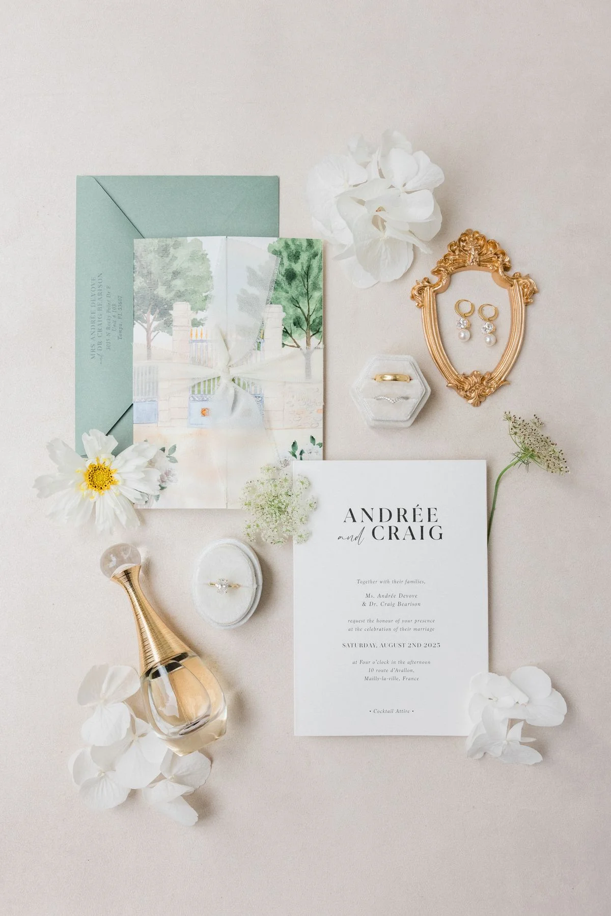 Nous avons d’abord listé les éléments clés que nous souhaitions : un mariage dans la demeure familiale, la présence de notre famille et de nos proches venus des États-Unis, une cérémonie laïque, et la date du 2 août 2025.