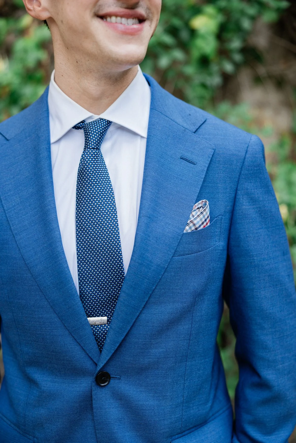 Craig portait un costume trois-pièces de chez Suit Supply (Tampa). Andrée portait une robe de la boutique Ivory & Lace, de la marque MoriLee NY, achetée à Tampa avec sa mère et sa sœur.