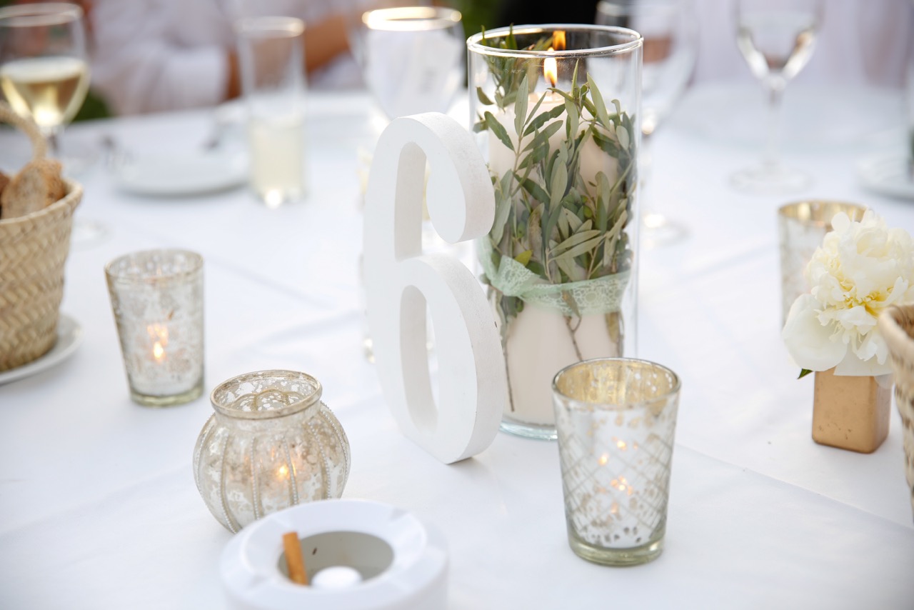 « Tous nos invités étaient en blanc, la décoration était blanche aussi. Les fleurs (pivoines, roses, lisianthus) étaient accompagnées de branchage d’olivier, pour rappeler le Sud et le soleil. »