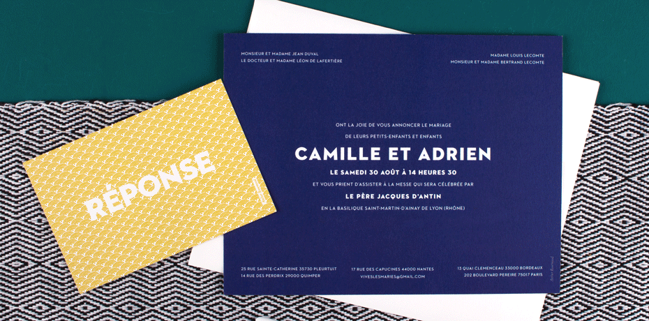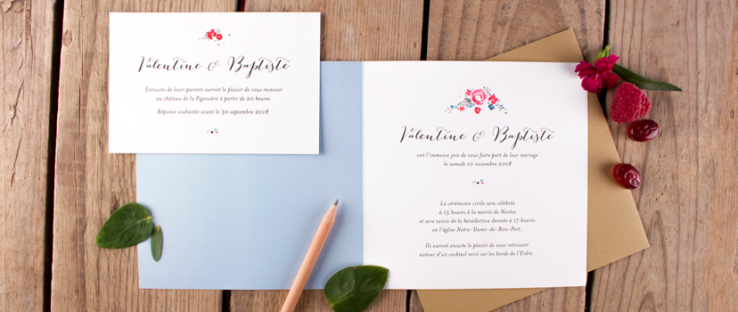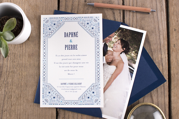 Atelier Rosemood, c’est avant tout un service de retouche, puisque l’ensemble des faire-parts sont relus, corrigés, et harmonisés par un graphiste. Un grand choix d’enveloppes de couleurs et un service de personnalisation avancé avec une adaptation de chaque modèles pour qu’ils conviennent aux futurs mariés. Enfin, une large sélection d’idées de texte et de conseils de rédaction. Alors, n’hésitez plus et foncez sur leur site internet pour admirer leur créations : Atelier Rosemood.