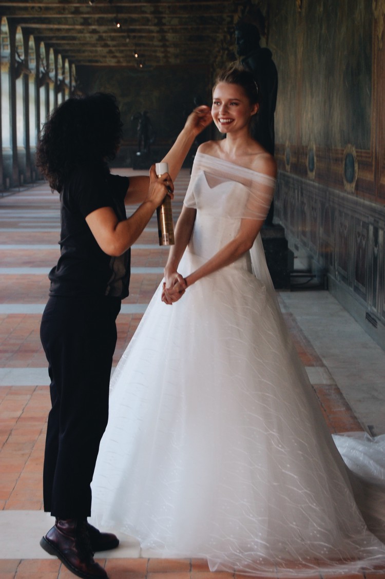 Ce shooting fût également l’occasion de découvrir et d’échanger avec les designers de la marque qui mettent un point d’honneur à sublimer chaque robe. La maison collabore avec Patrice Dutartre qui revient cette année avec des créations qui inculquent un nouveau souffle tout en préservant son ADN créatif et sa légèreté. Le créateur Olivier Portais met également ses talents d’alchimiste de la matière au service du mariage. Il met un point d’honneur à souligner les détails et à concevoir ses créations en fonction des parties du corps que la femme souhaite mettre en valeurs.