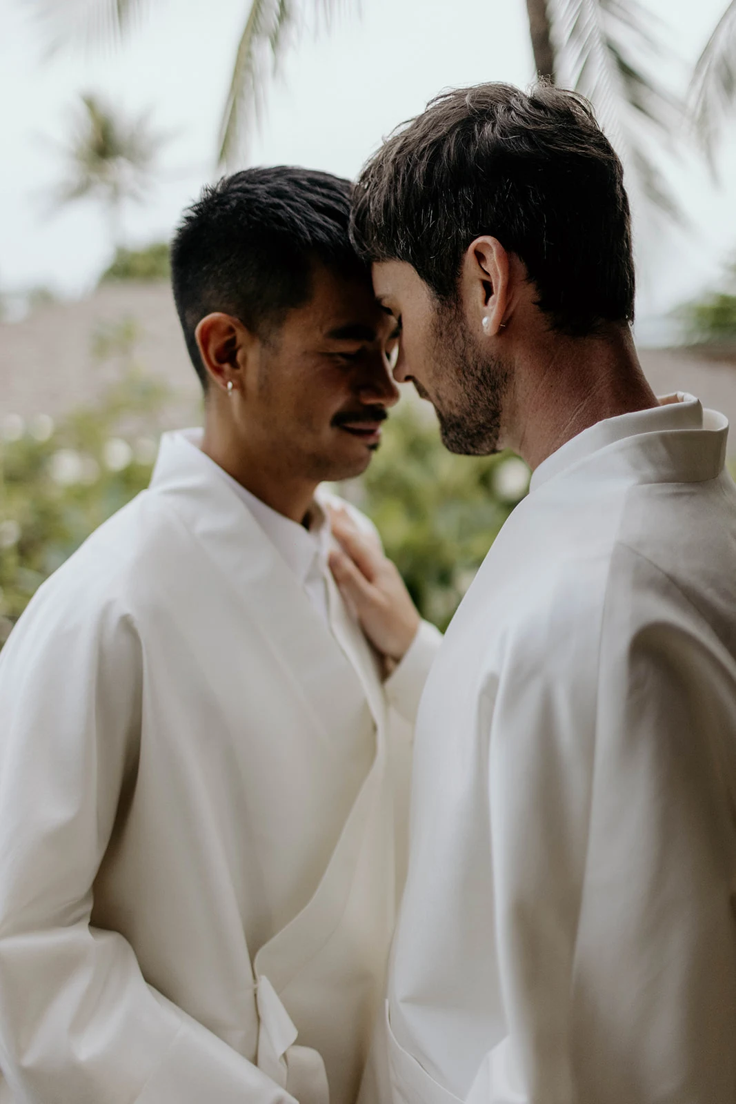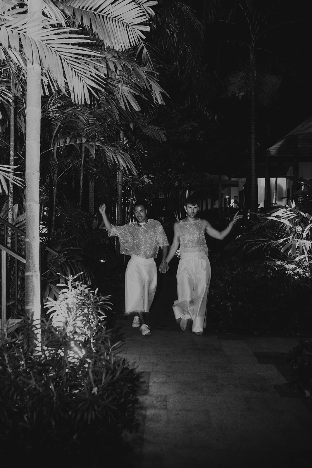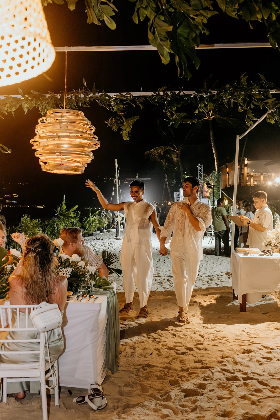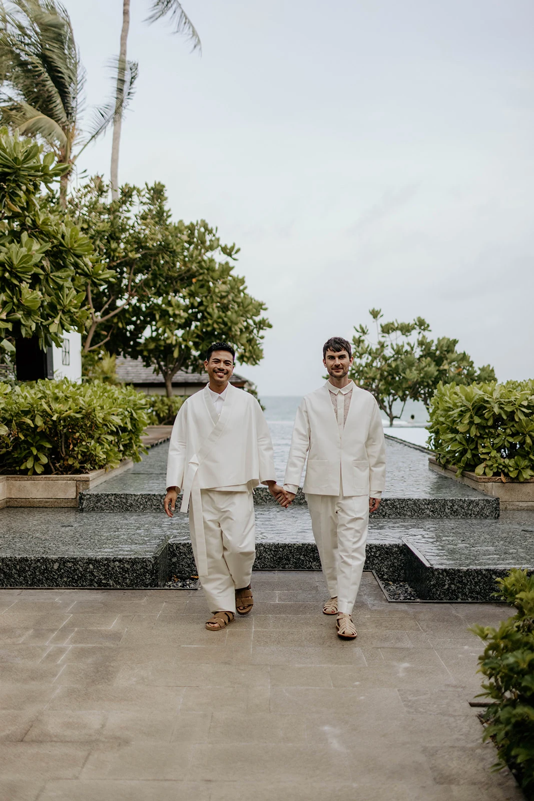 De notre côté, nous avons organisé un cocktail de bienvenue dans un restaurant cosy sur les hauteurs de Koh Samui, avec une vue panoramique sur l’ensemble de l’île. Le lendemain du mariage, nous avons également privatisé la piscine de l’hôtel pour une pool party avec nos invités, et quelques drag queens pour le fun.