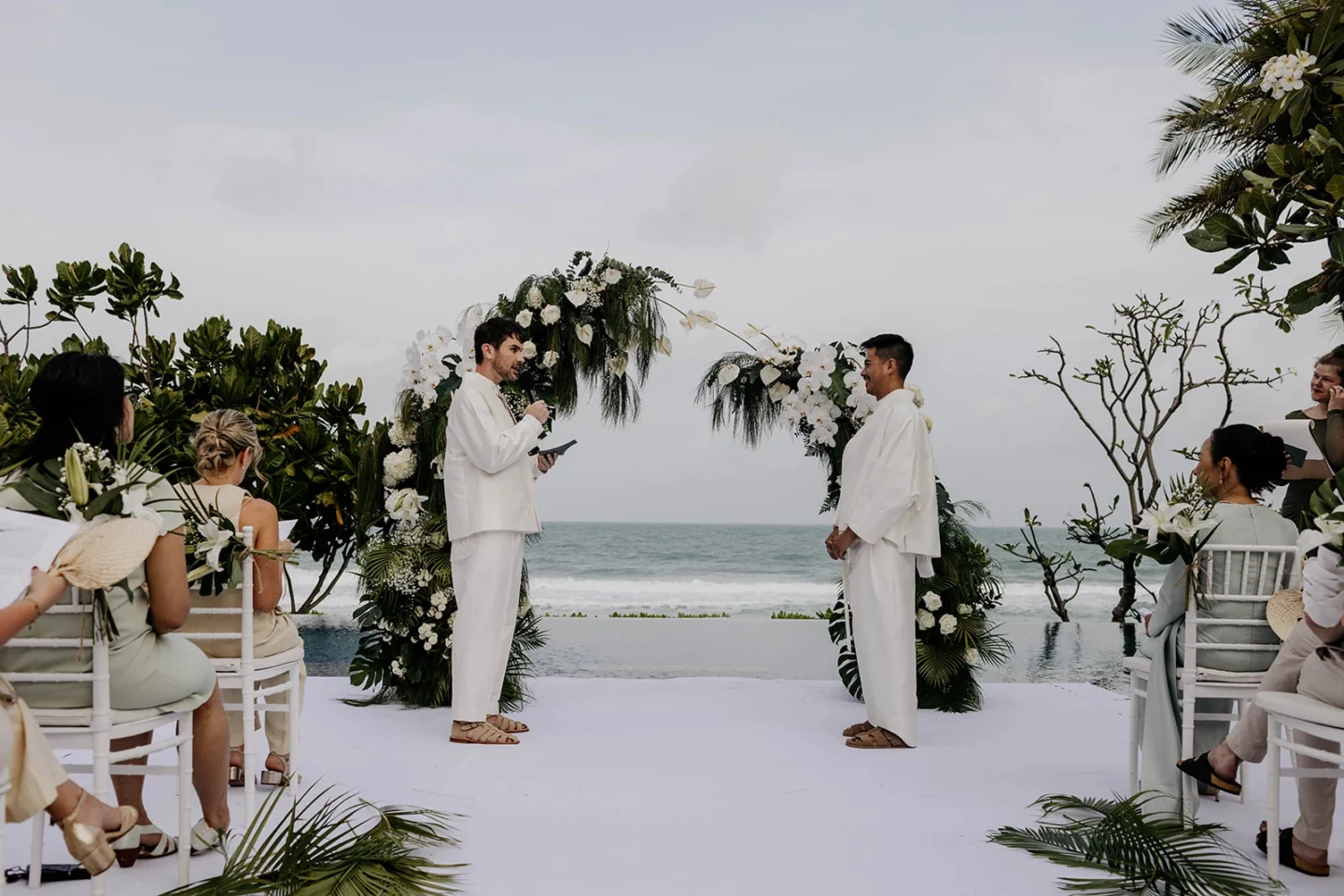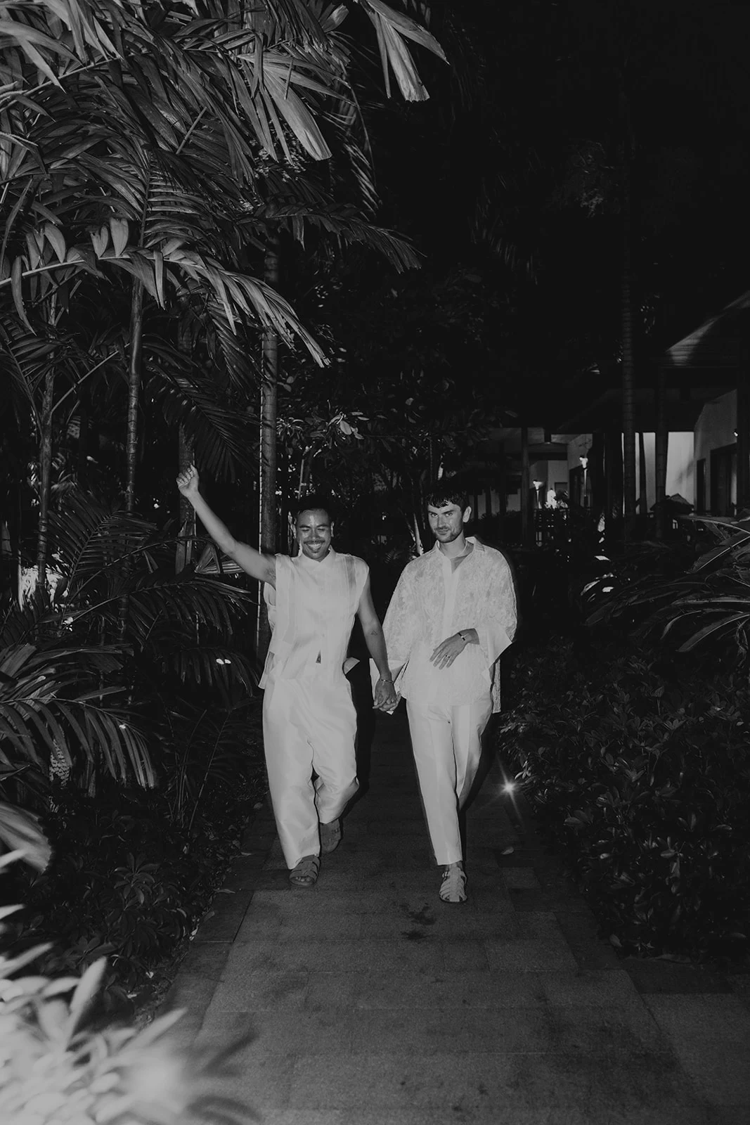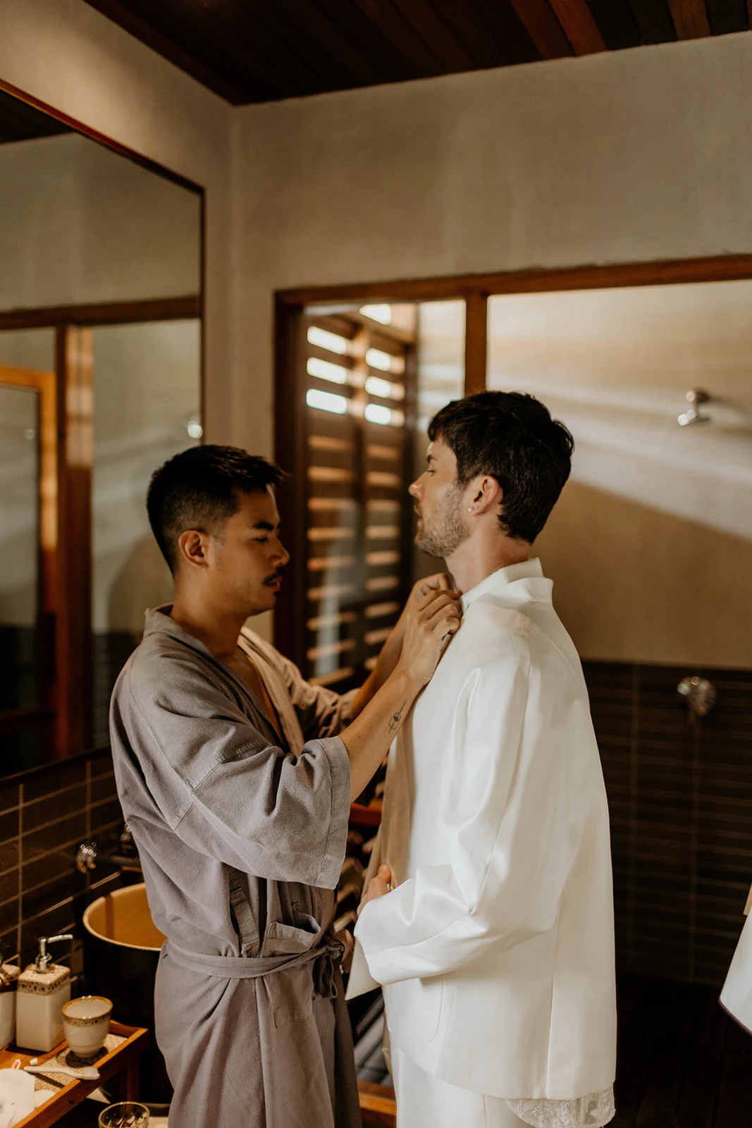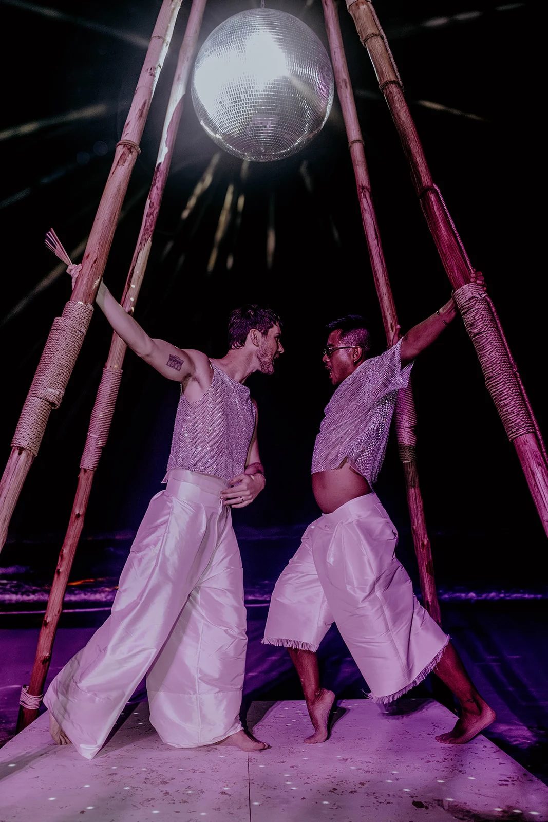 De notre côté, nous avons organisé un cocktail de bienvenue dans un restaurant cosy sur les hauteurs de Koh Samui, avec une vue panoramique sur l’ensemble de l’île. Le lendemain du mariage, nous avons également privatisé la piscine de l’hôtel pour une pool party avec nos invités, et quelques drag queens pour le fun.
