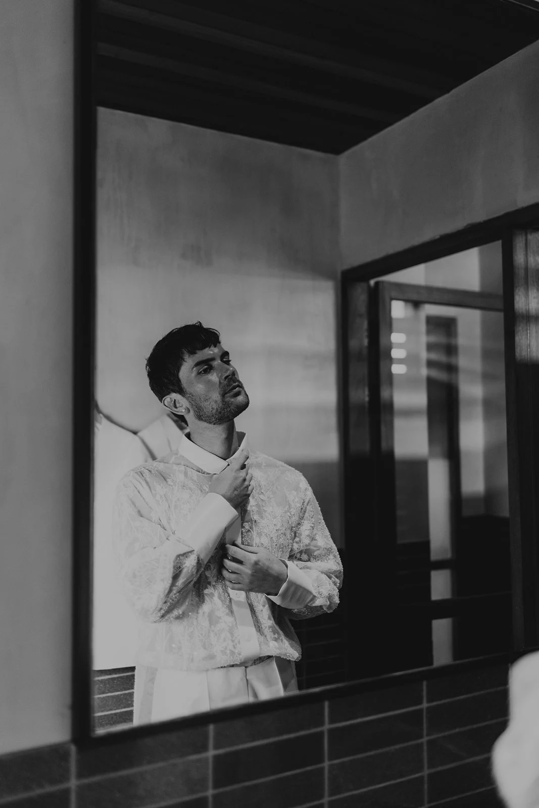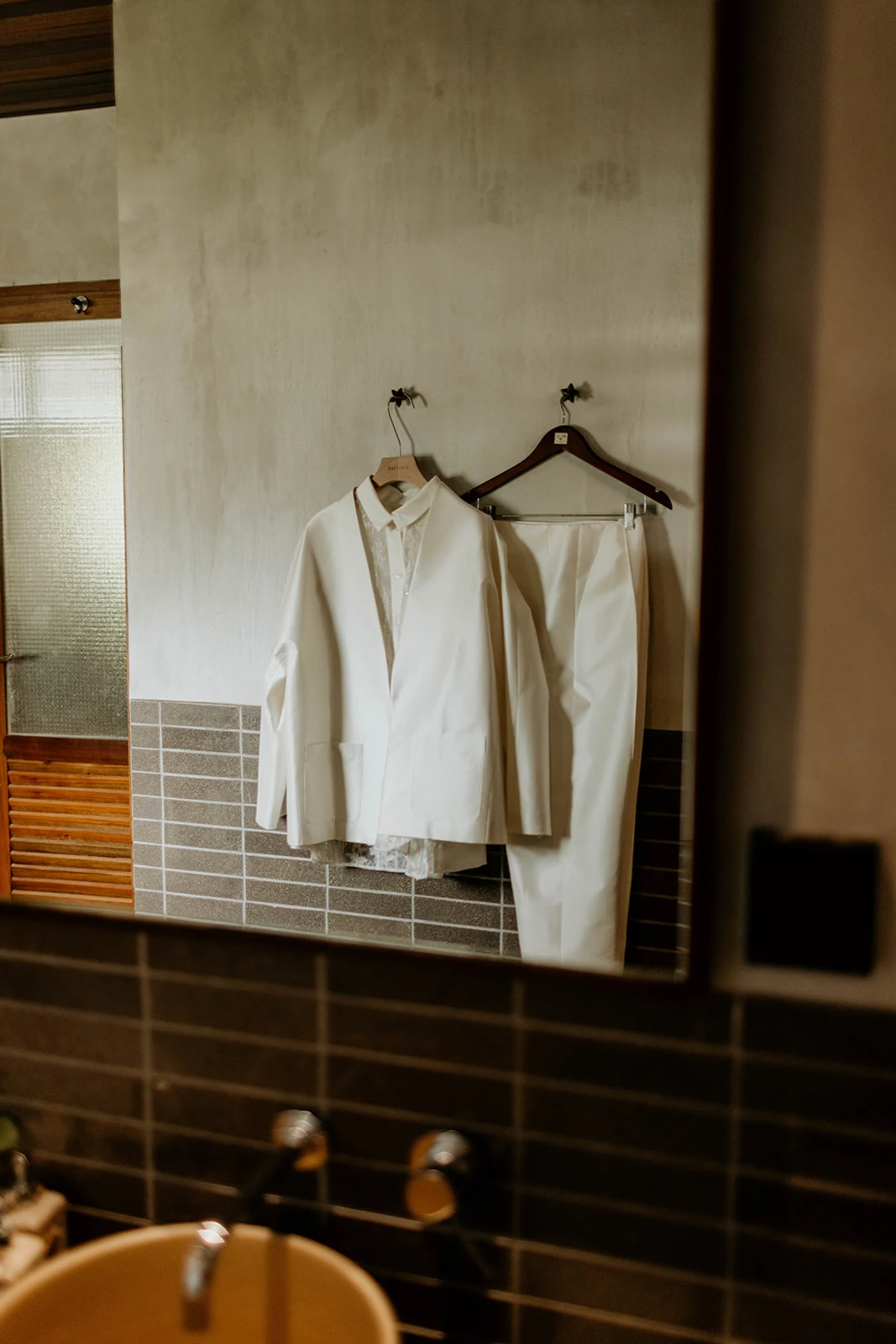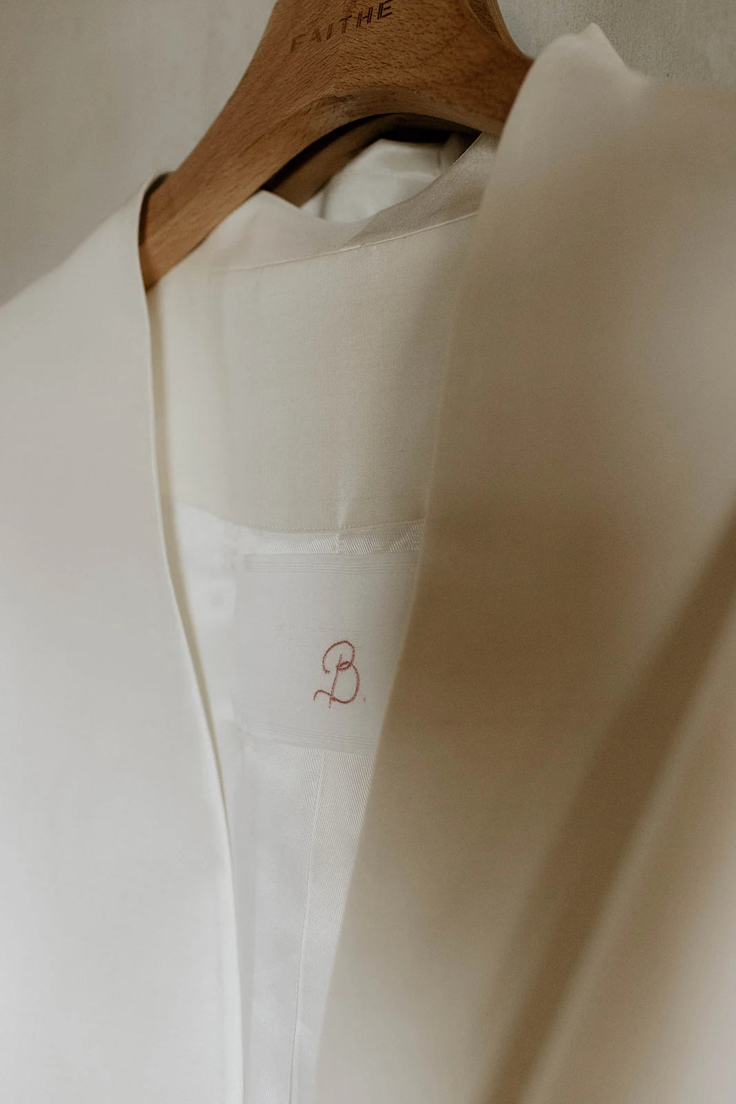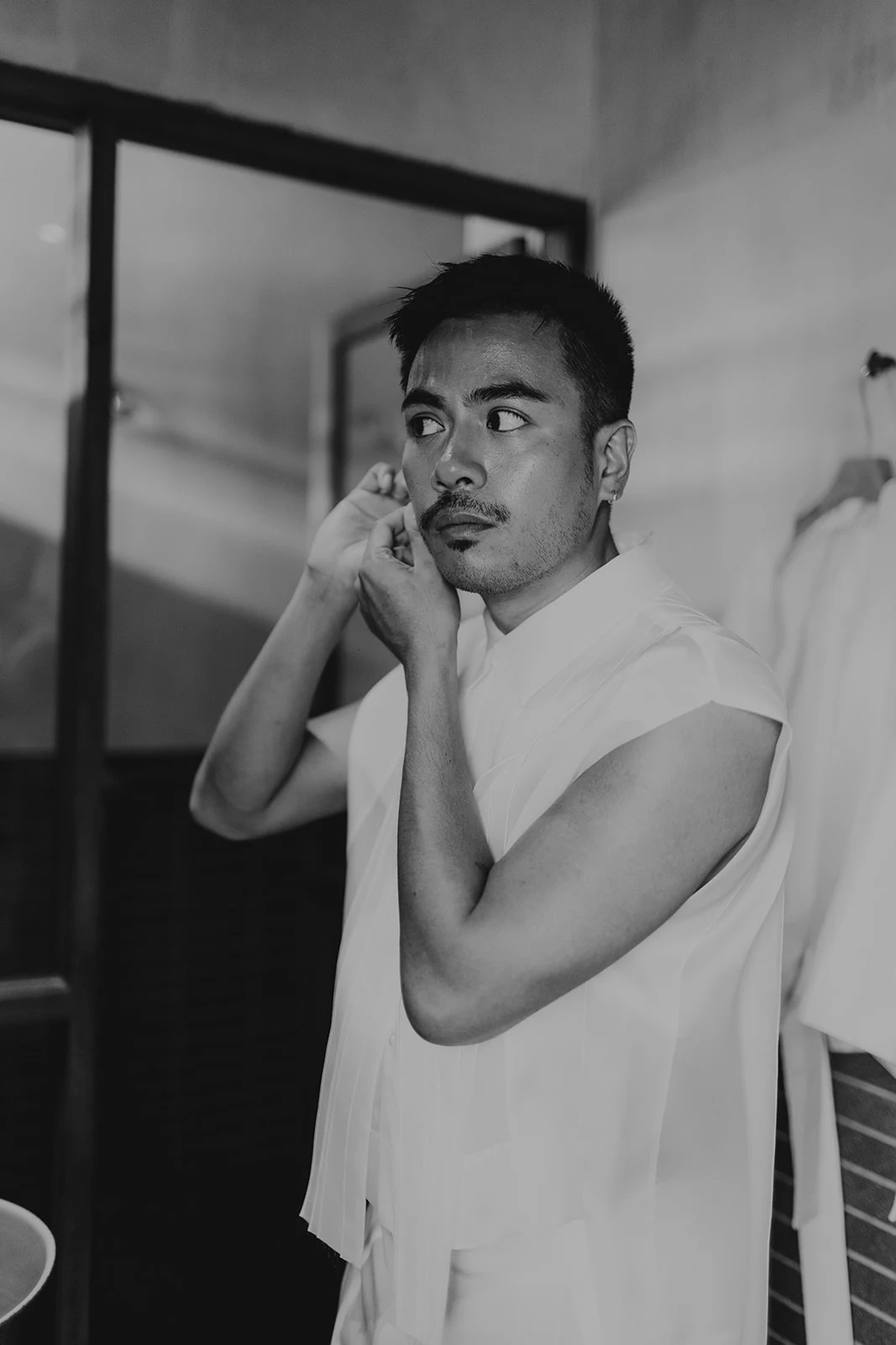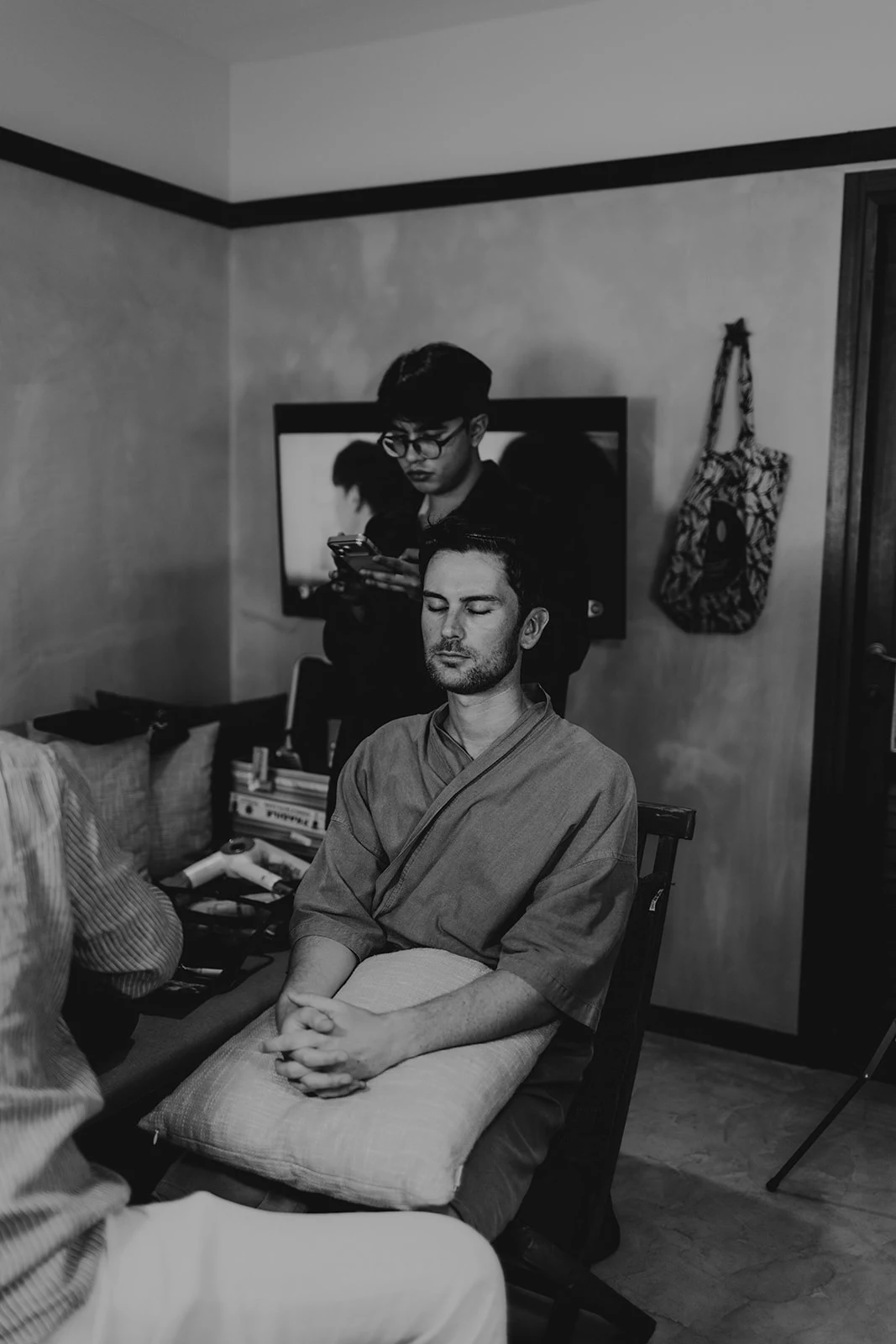 Nos tenues ont été conçues par Por, créateur de la maison de couture House of Faithe à Bangkok. Nous voulions des tenues blanches, faites de matériaux locaux, par un designer local, et surtout fidèles à la personnalité de chacun : inspirées de traditions thaï pour Krit, et avec une French touch pour moi.
