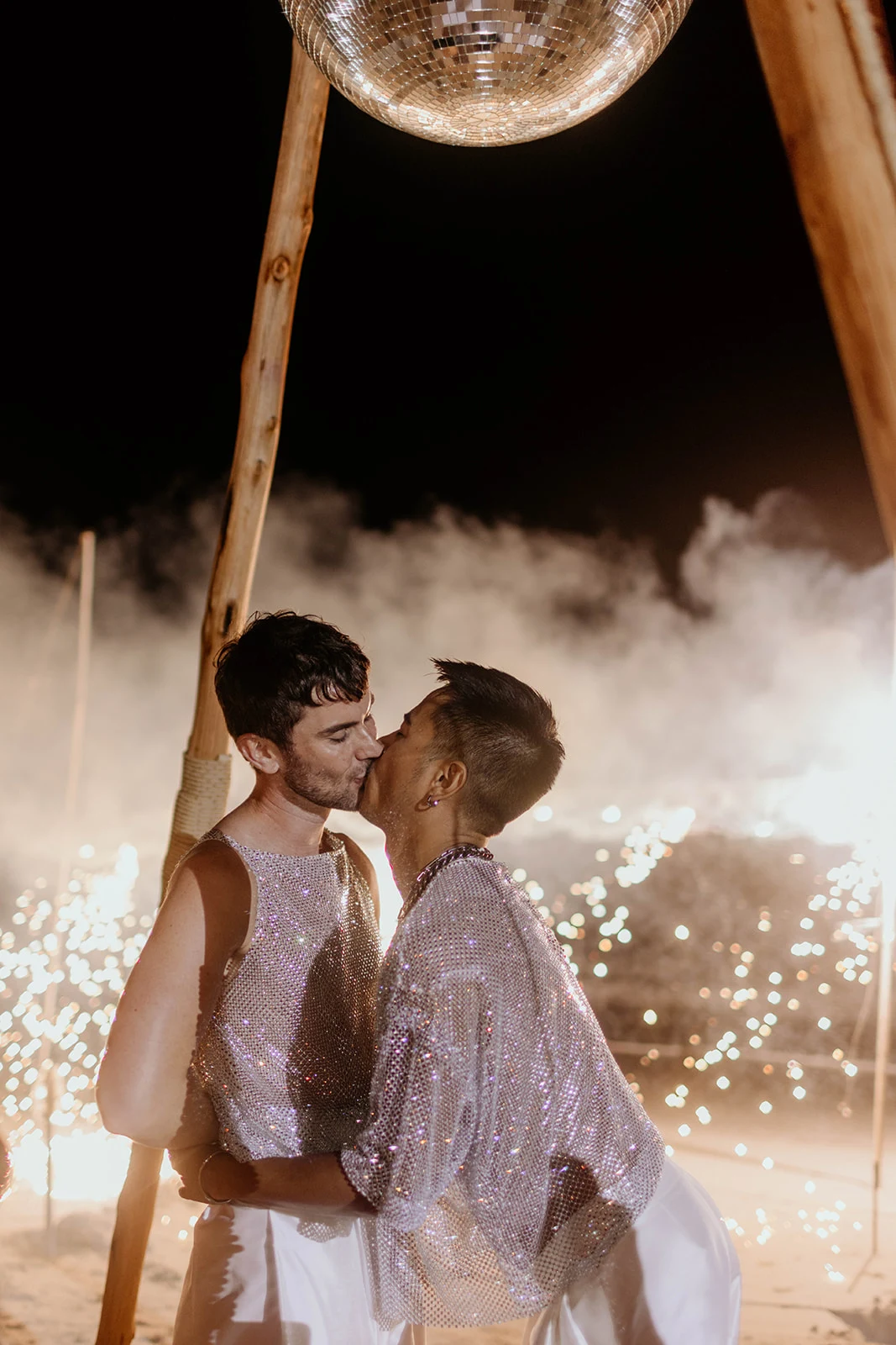 Nous gardons également un souvenir incroyable de notre ouverture de bal, après le dîner, sur la plage, sous les reflets d’une magnifique boule à facettes, sur la chanson de Kylie Minogue « All the Lovers ».