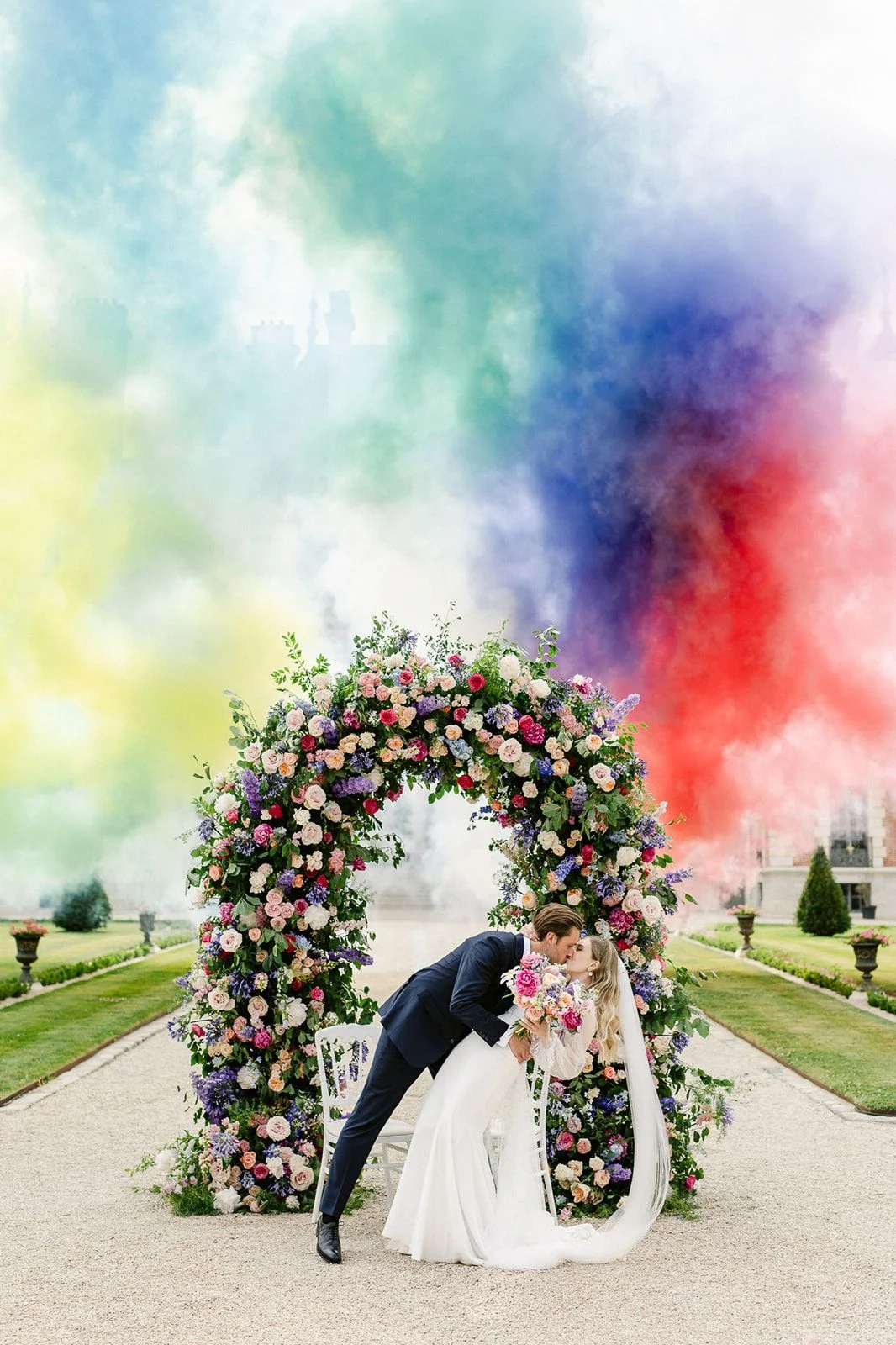 Après avoir vu une vidéo d’un mariage sur le thème coloré, nous sommes tombés amoureux de ce thème, qui change de ce qu’on peut voir habituellement.