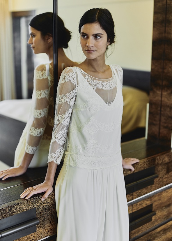 La créatrice Laure de Sagazan, présente sa nouvelle collection 2018 ! Détails soignés, broderies délicates et coupes follement rétro… Encore une fois l’élégance naturelle des mariées sera sublimée par ces tenues raffinées.