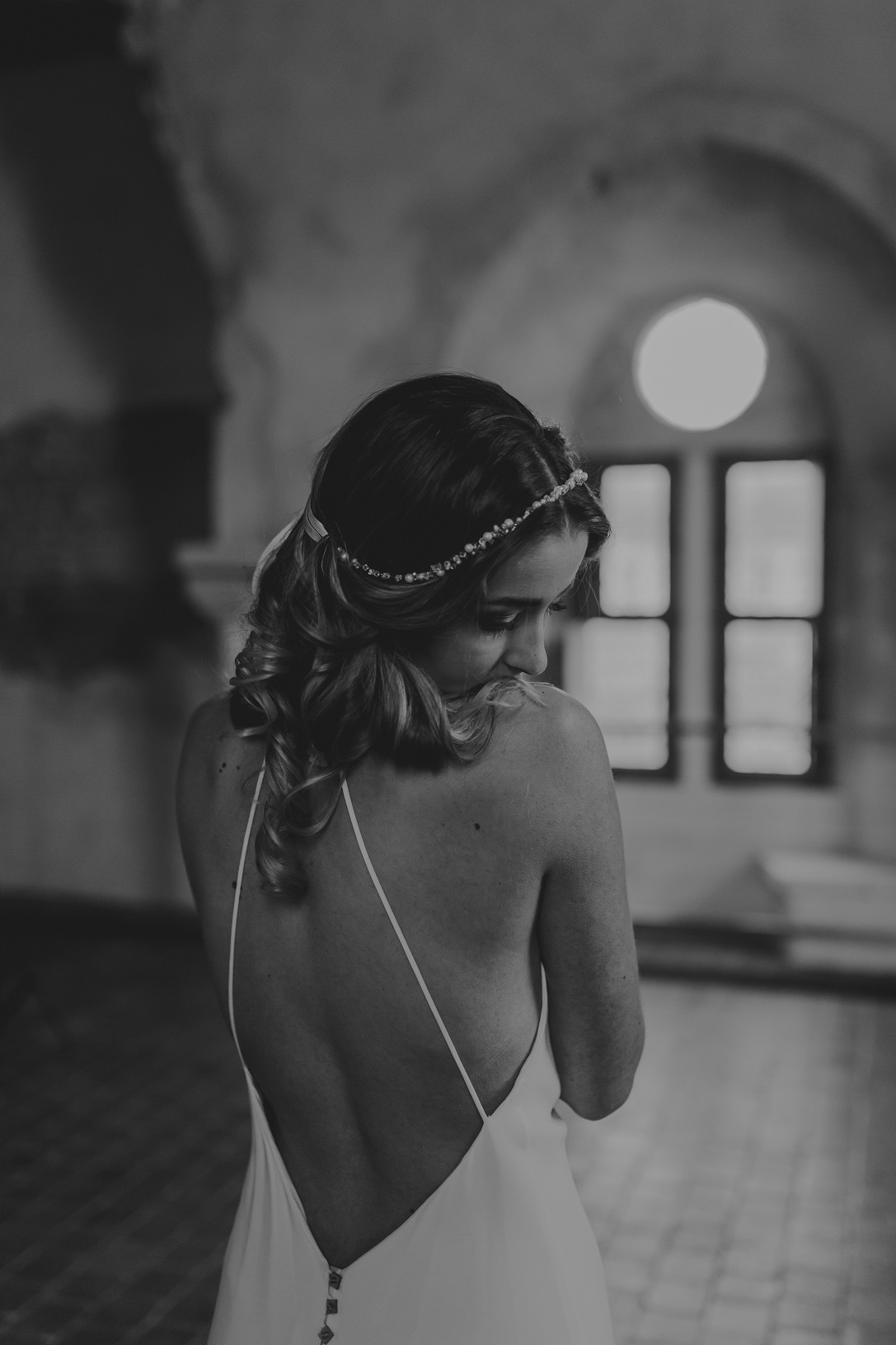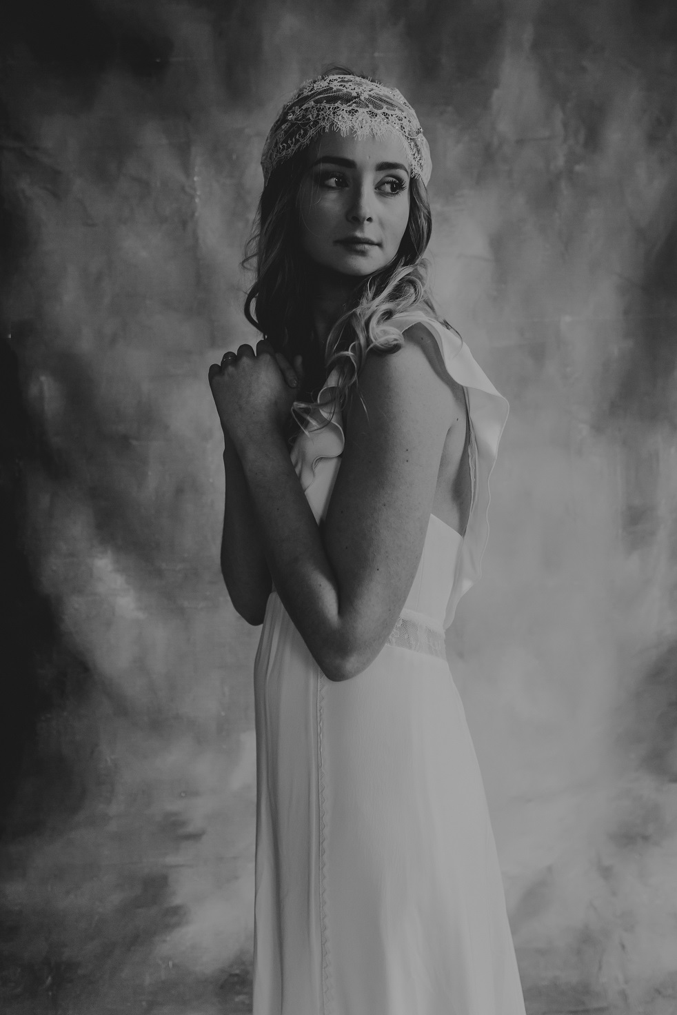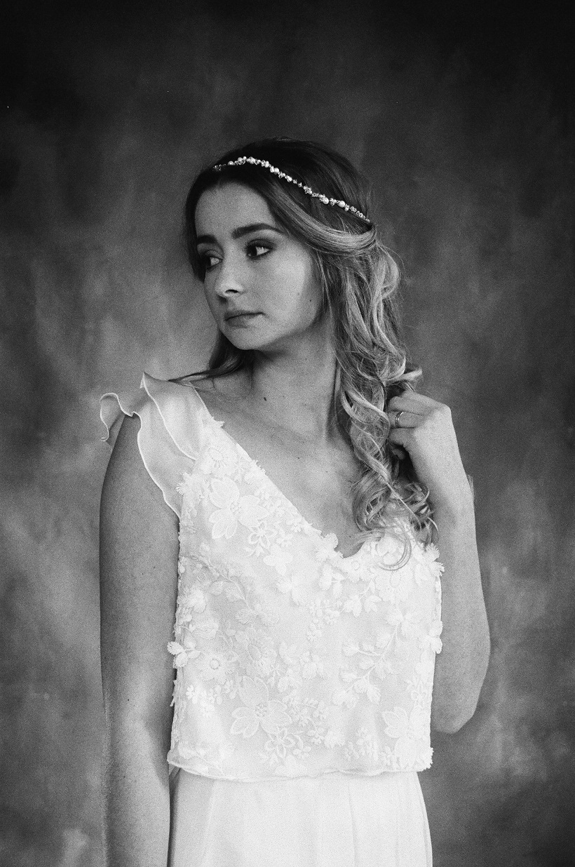 Inès – Robe : Aurélia Hoang / Bague : Zeïna Alliances / Headband : Alizzi Création