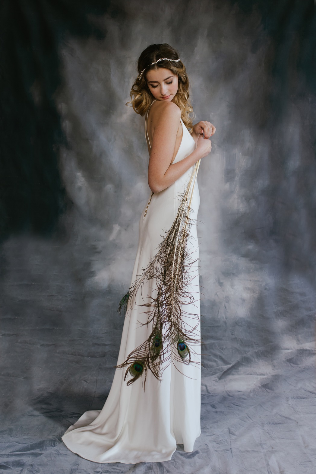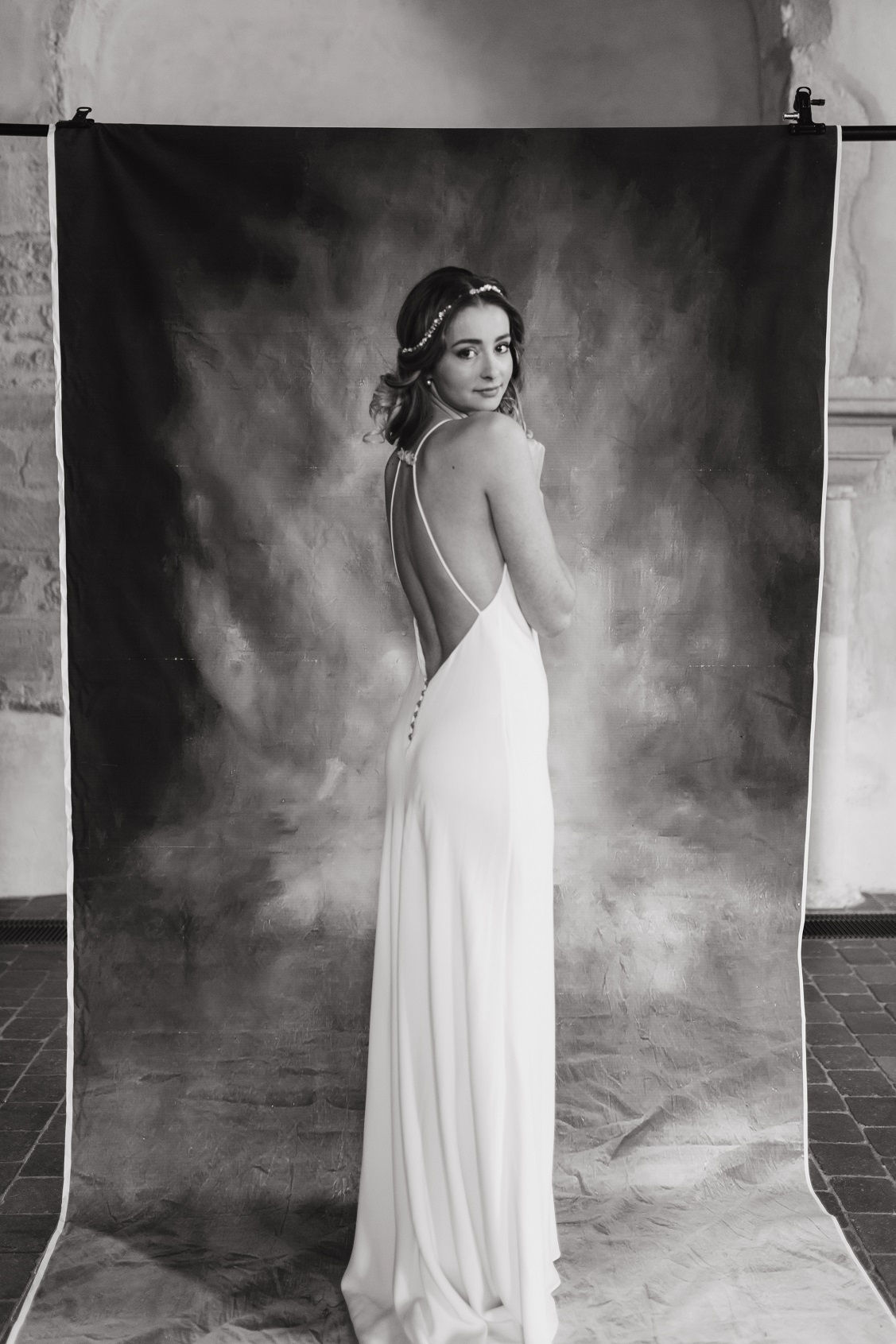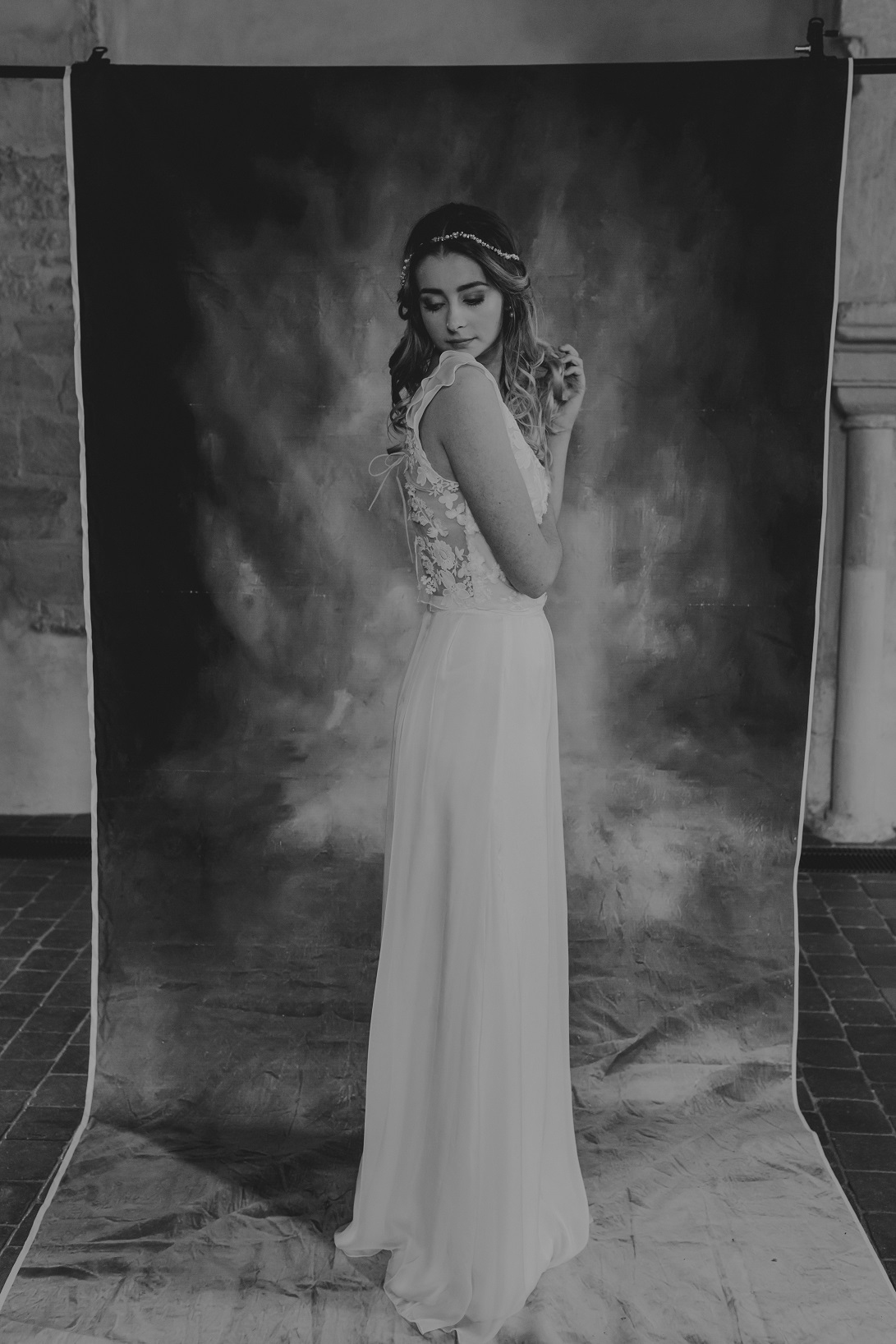 Inès – Robe : Aurélia Hoang / Bague : Zeïna Alliances / Headband : Alizzi Création