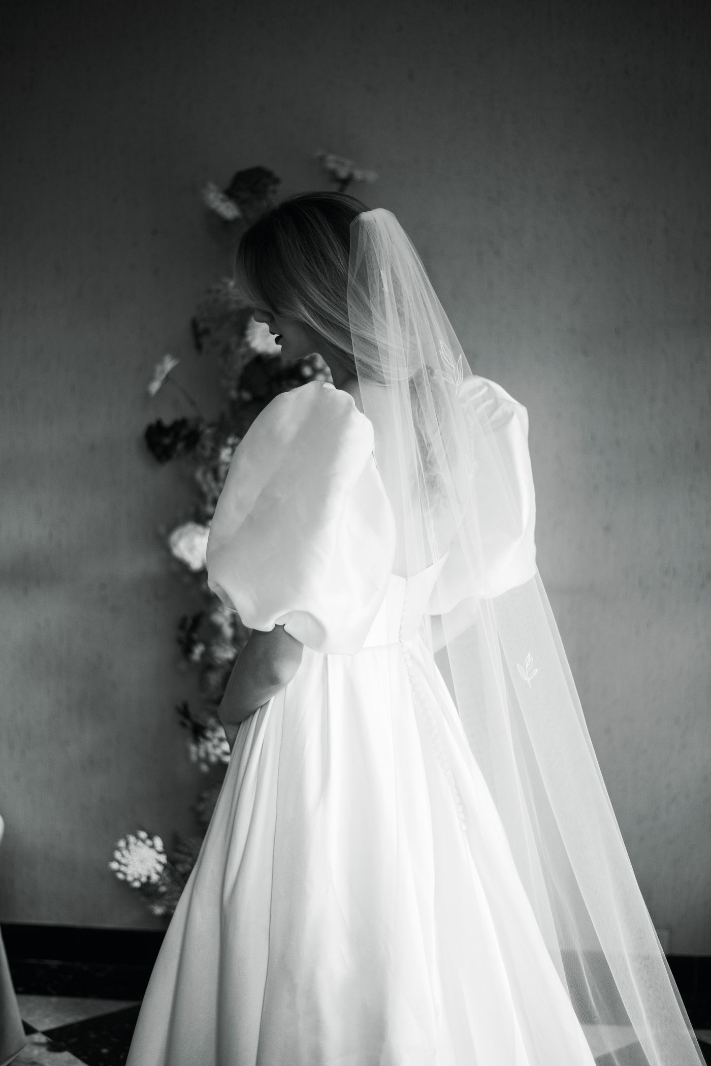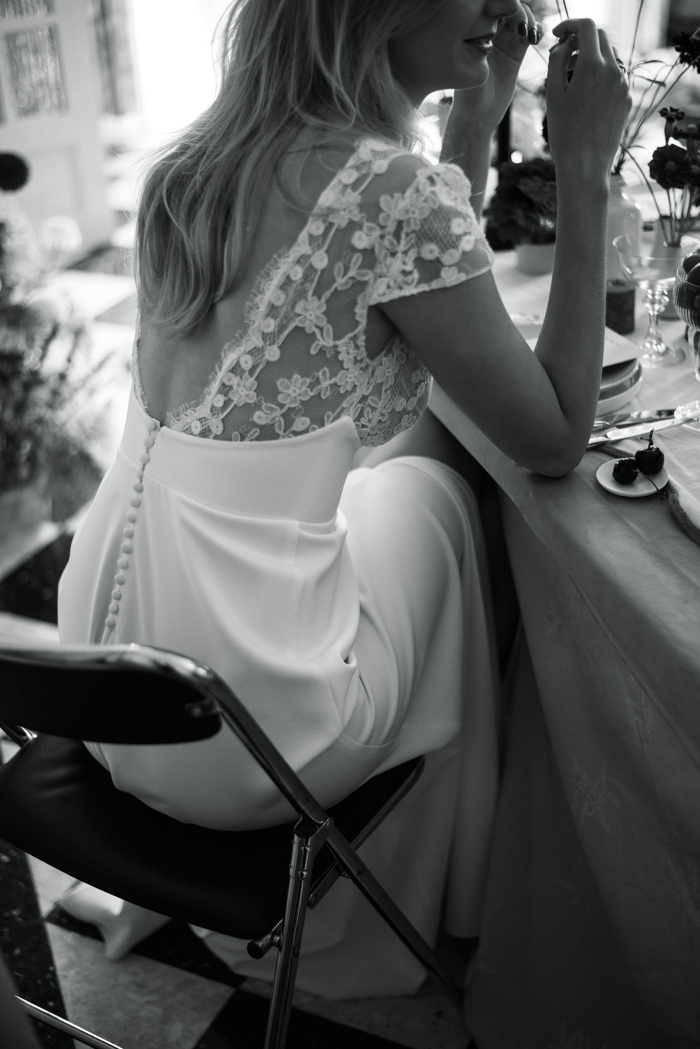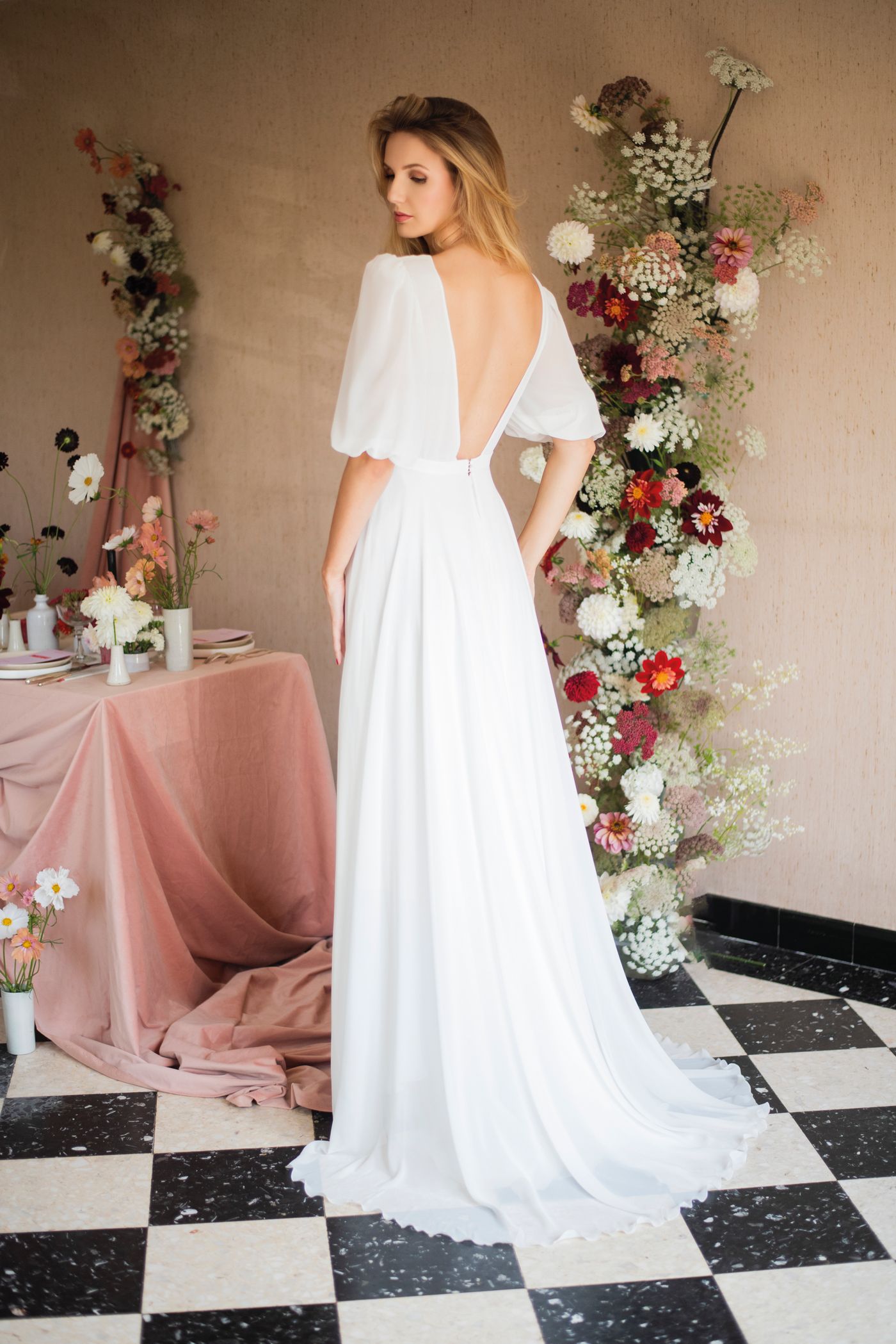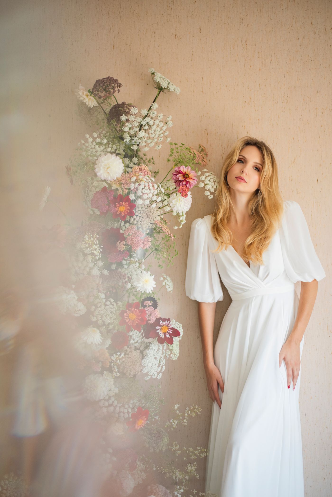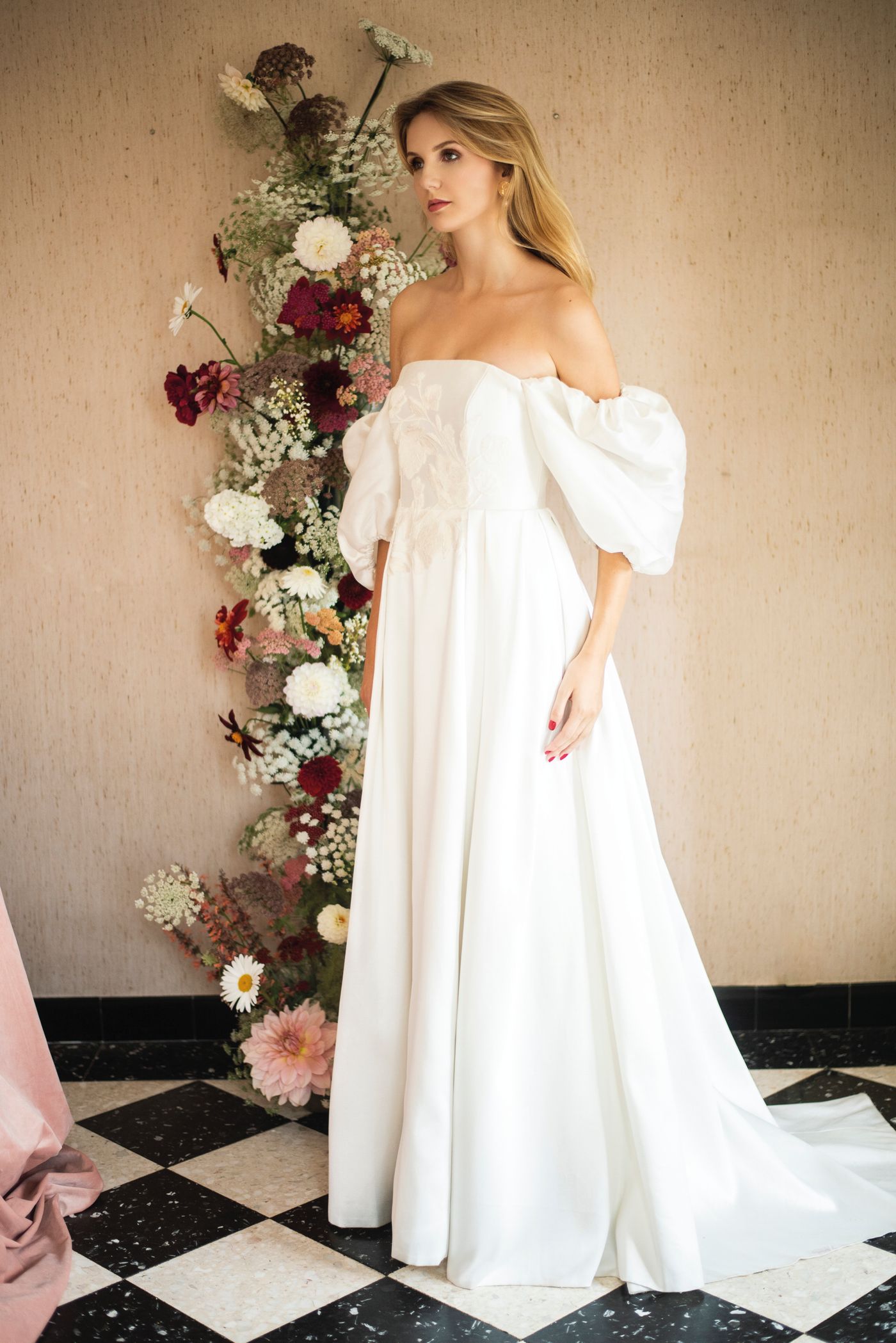 Les robes de mariée, quant à elles, jouent avec les volumes et les matières : manches bouffantes, dentelles fines, coupes fluides ou silhouettes structurées… Chaque modèle révèle une vision singulière de la mariée.