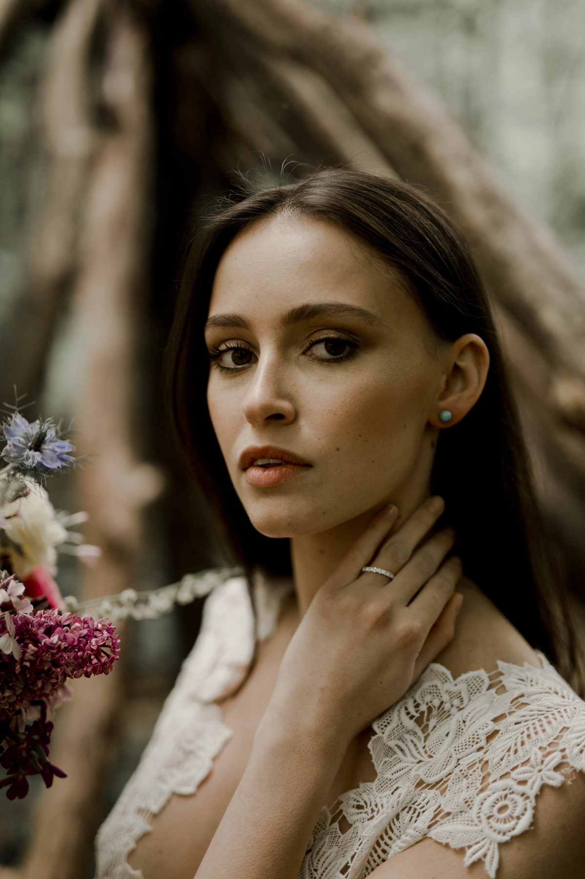 Elodie – Robe : Elise Martimort / Bague : Zeïna Alliances / Boucles d’oreille : Or du Monde