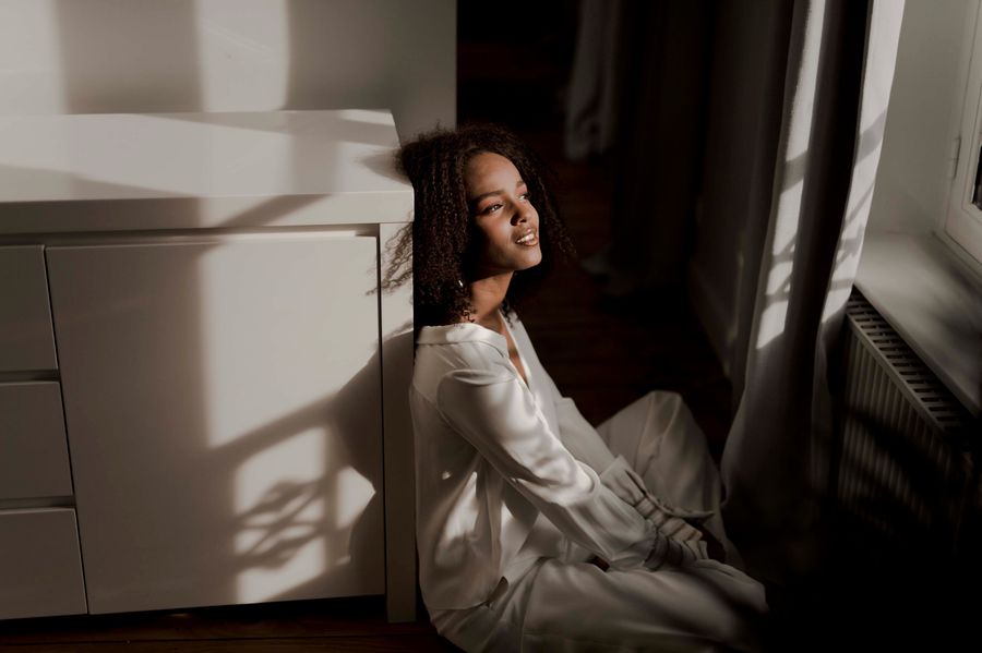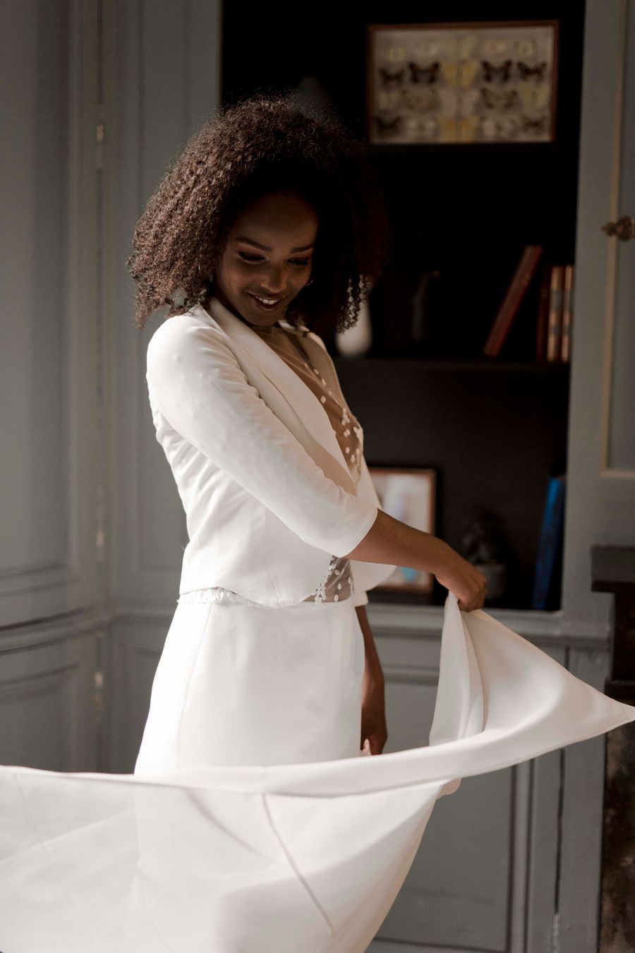Marie – Top & Pantalon : Love Is Like A Rose / Chaussures : Chamberlan x Elise Hameau / Bague : Zeïna Alliances