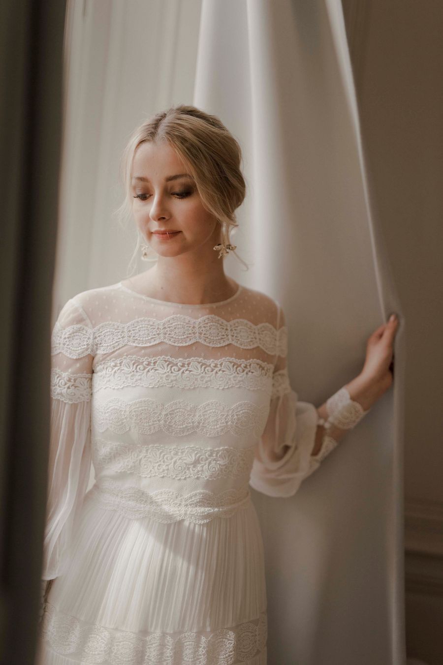 Marie – Robe : Marylise / Chaussures : Asos / Bague : Zeïna Alliances / Couronne : S U Z A N N E Ceremony