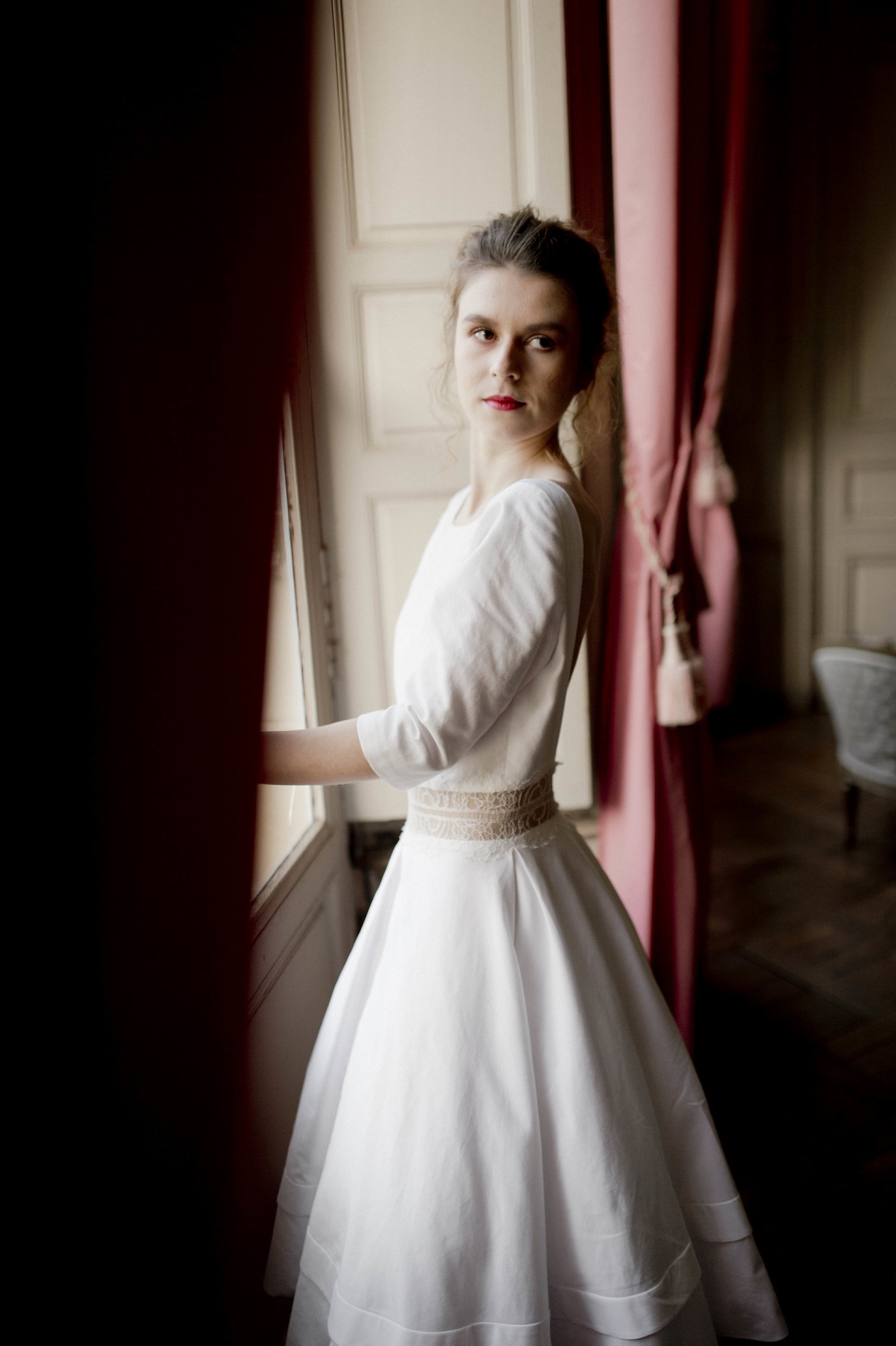Jeanne LM – Robe : Marylise Bridal / Boucles d’oreilles : Mignonne Handmade