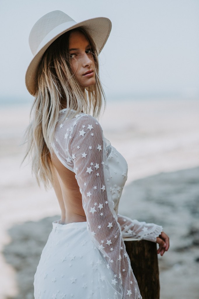 Léa – Robe : Elisa Ness / Boucles d’oreille : Monshiro