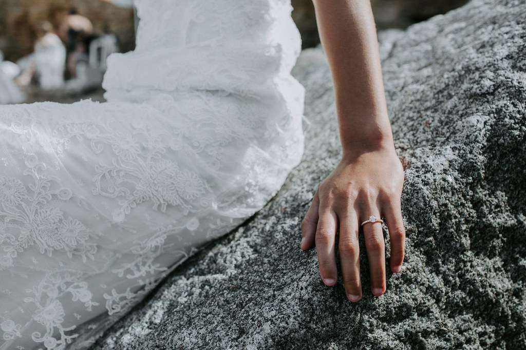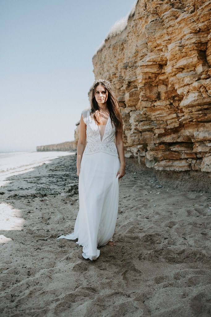 Léa – Robe : Créations Bochet / Boucles d’oreille & bague : Zeïna Alliances