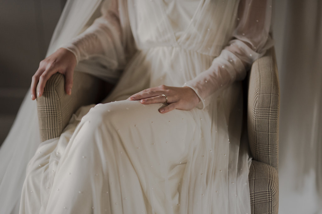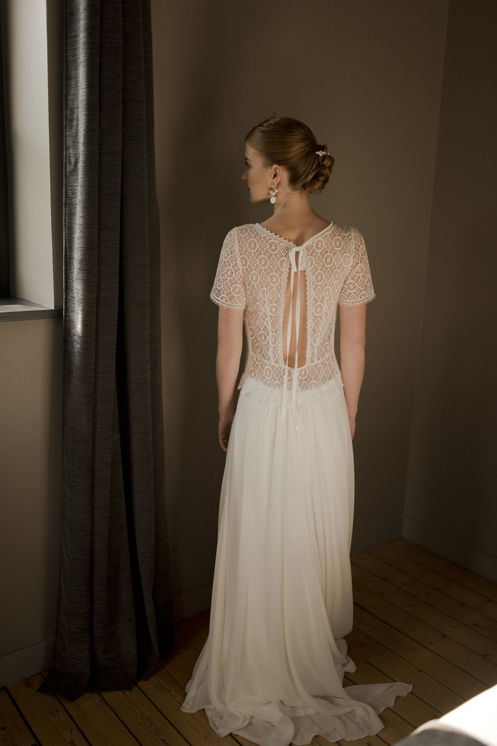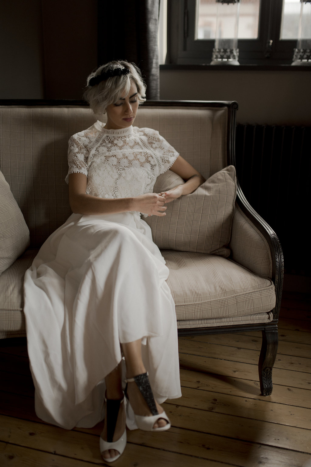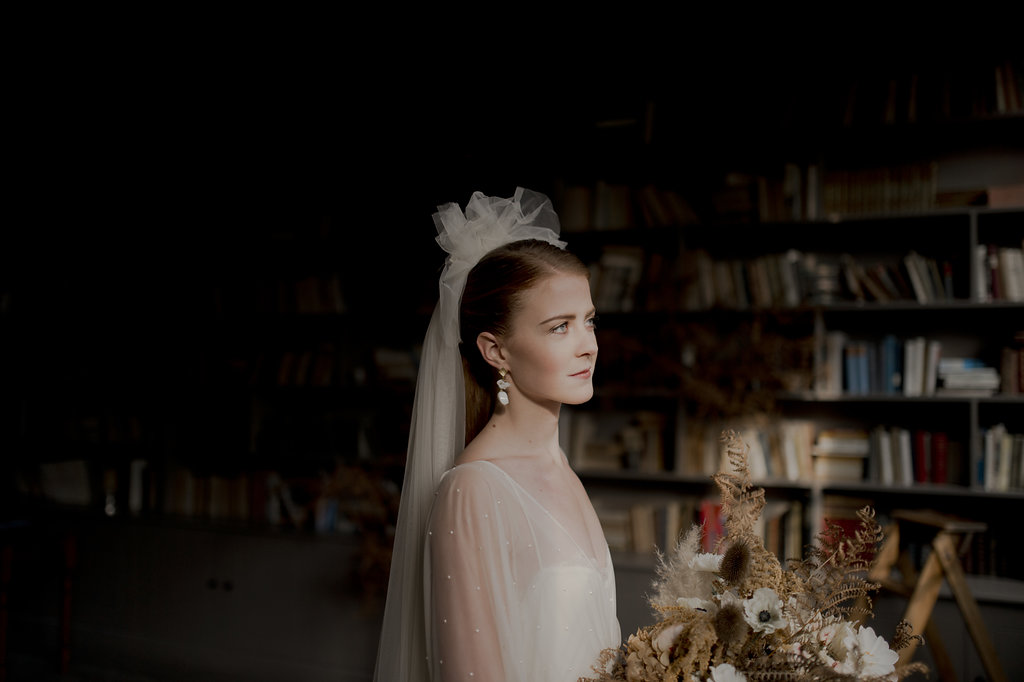 Robe Ingrid Fey – Boucles d’oreille Monshiro – Voile Les Fleurs Dupont x L’amoureuse by Ingrid FeyRobe Caroline Takvorian – Peigne Maison Guillemette chez Suzanne CérémonieRobe et cape Amarildine – Boucles d’oreille Monshiro – Peigne English Garden