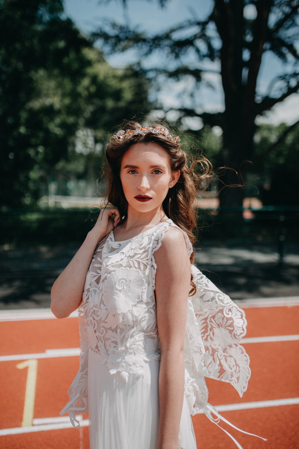 Pauline – Robe : Elsa Gary / Bijou & Peigne : English Garden / Chaussures : Chamberlan