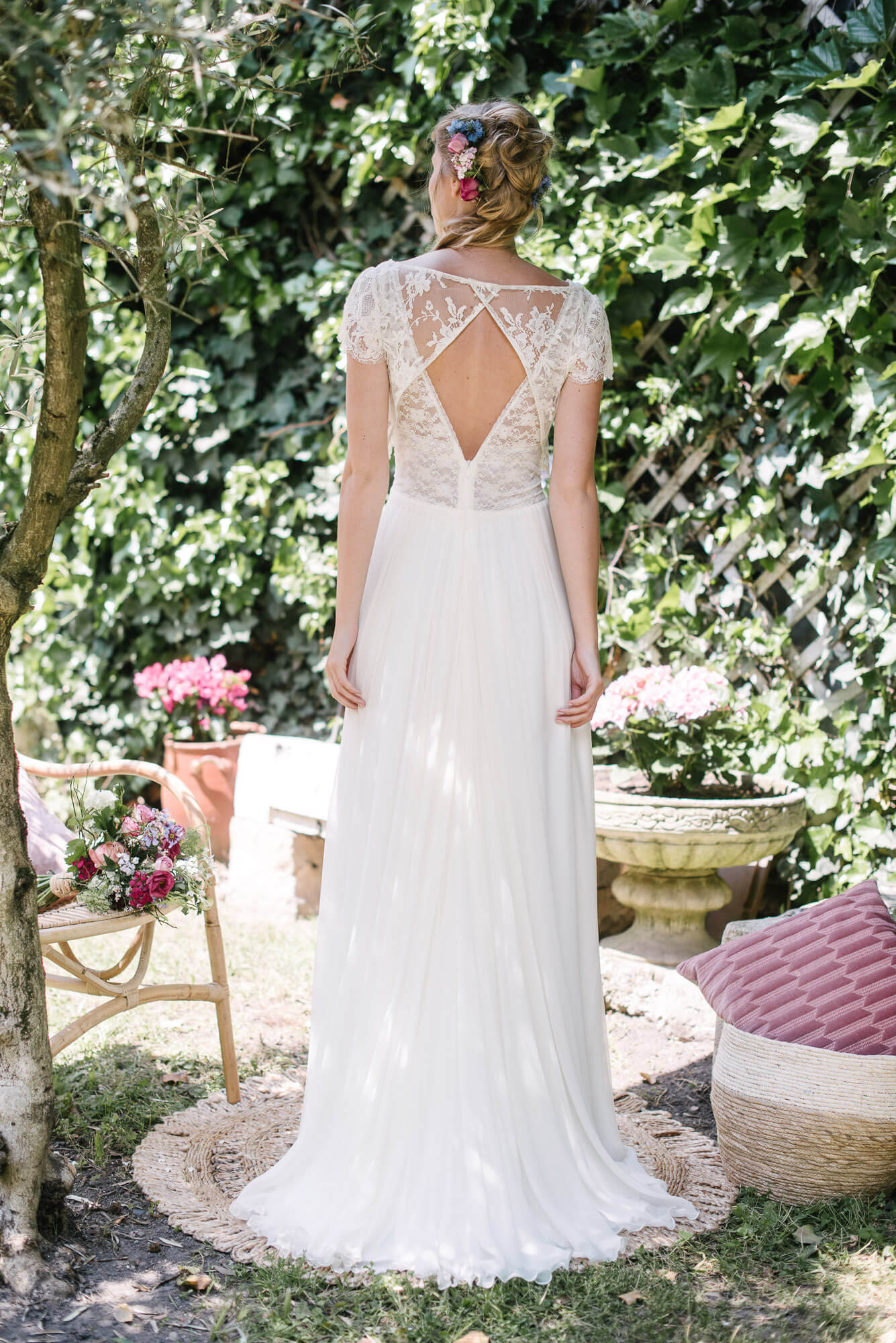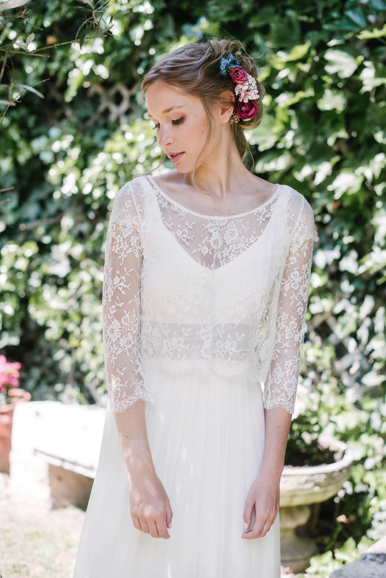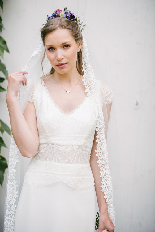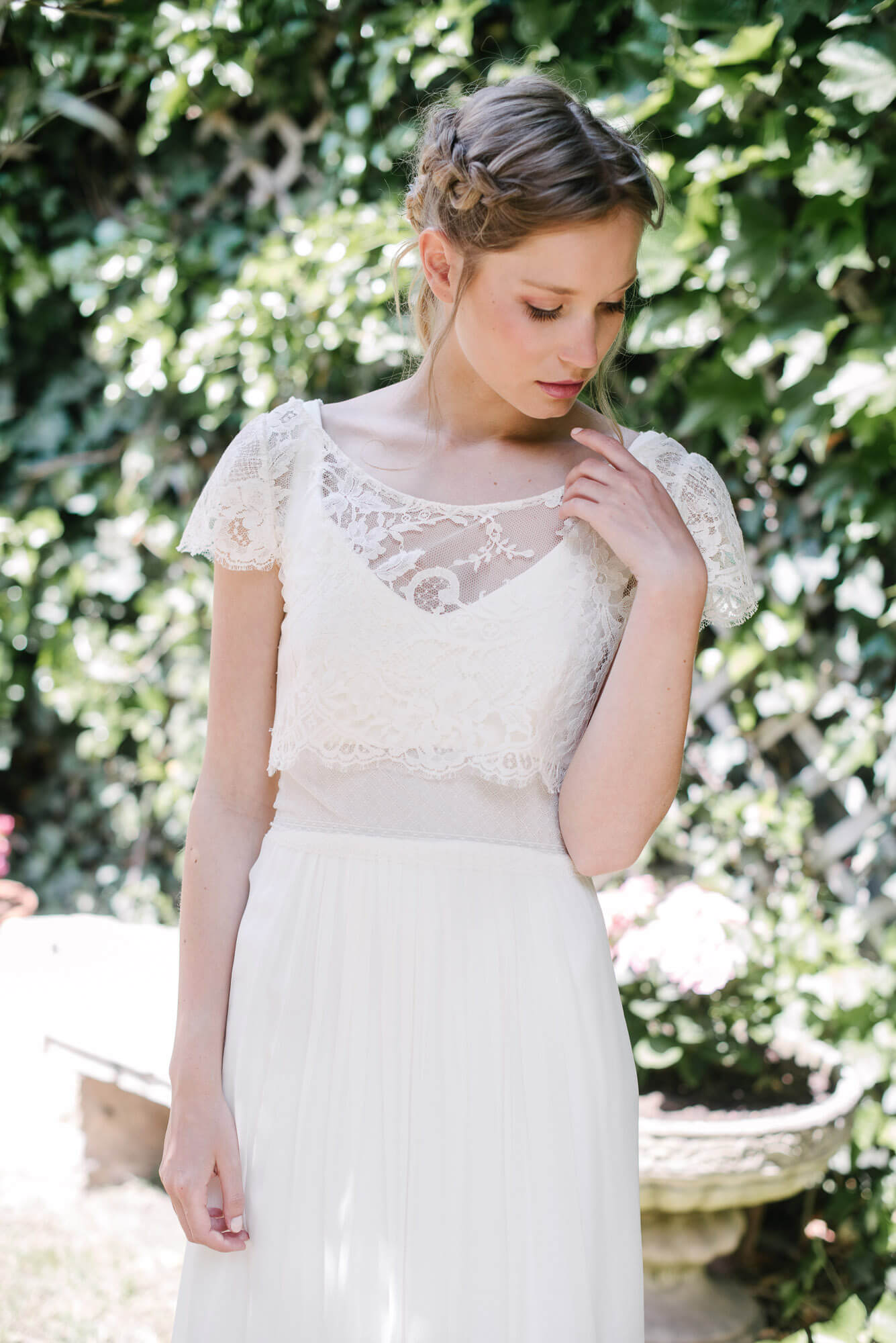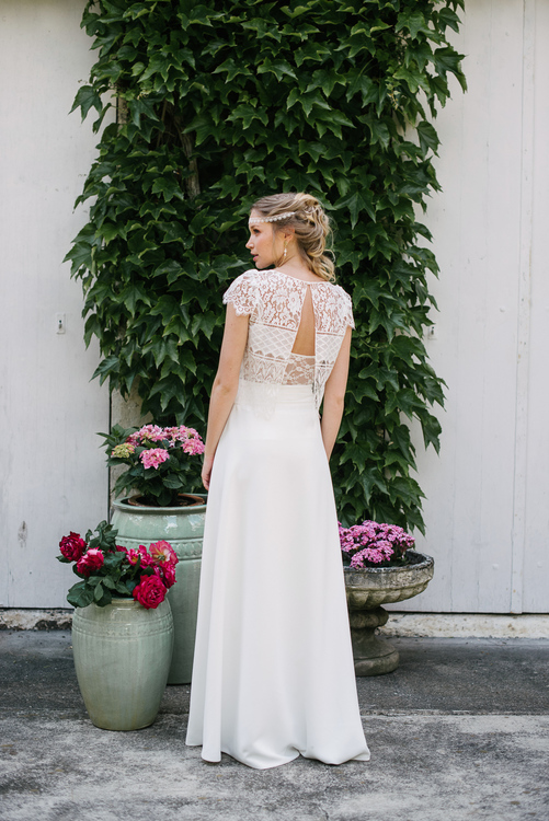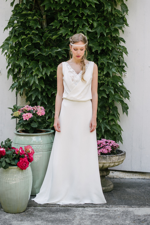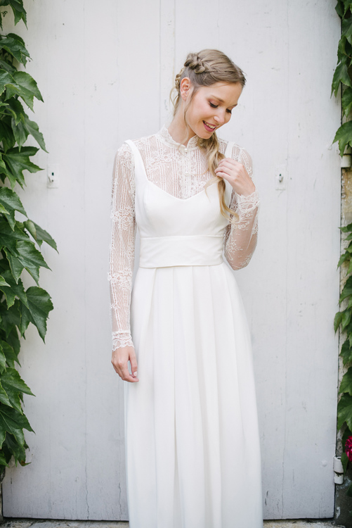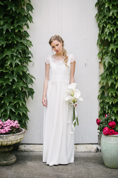 « C’est Le monde de la douceur de vivre, celui de Marcel Proust à l’ombre des jeunes filles en fleurs, des dentelles fines et des soies un peu jaunies. Cette collection très raffinée s’adresse à toutes les mariées qui comme moi sont nostalgiques de cet univers un peu suranné, mystérieux et insaisissable. » Elsa Gary