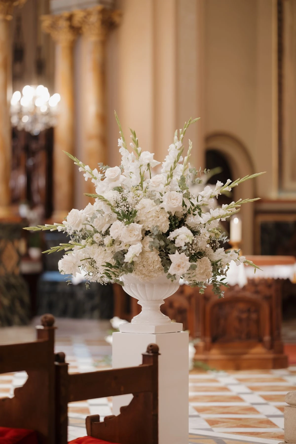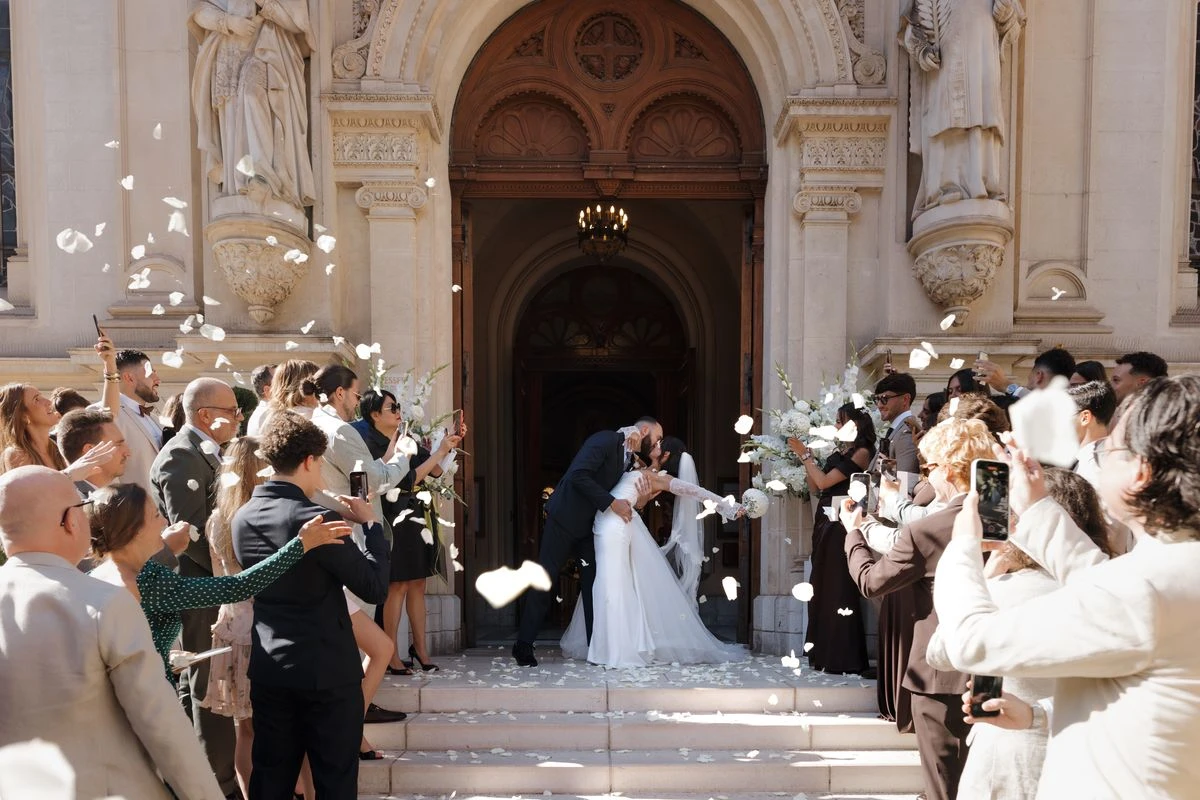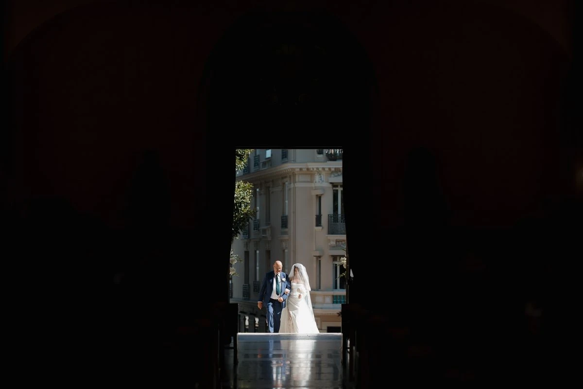 Nous avons décidé de nous marier à la mairie de Monaco le vendredi 19 septembre, uniquement avec notre famille proche (nous étions 15), puis le samedi 20 septembre à l’église Saint-Charles de Monaco avec tous nos invités. Les parents de Philippe s’y sont mariés et j’y ai été baptisée, ce qui donnait une grande signification à ce lieu. Ce choix de dates a été la meilleure décision : le vendredi nous a permis de vivre un moment fabuleux en petit comité avant le grand jour du samedi. Nos familles ont pu mieux se connaître et nous avons relâché la pression. Le samedi, nous étions donc beaucoup plus détendus que prévu.