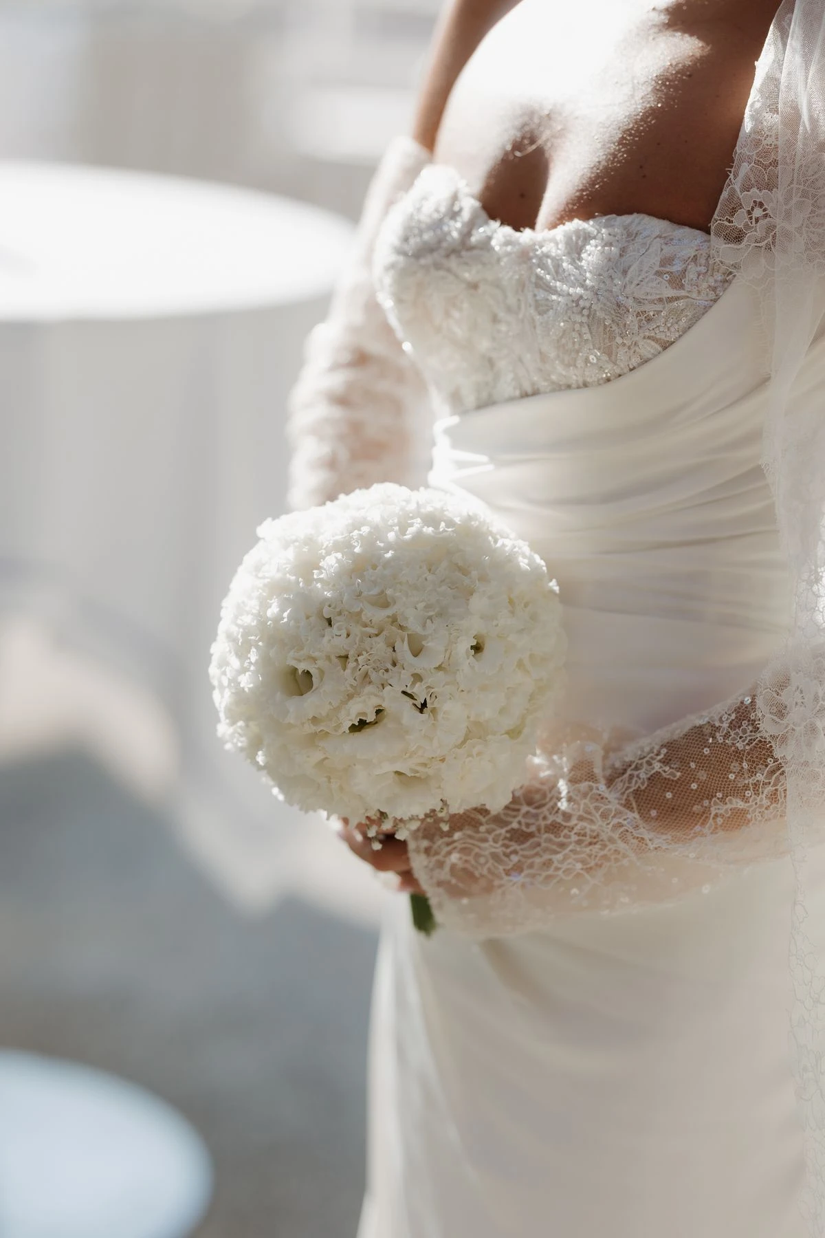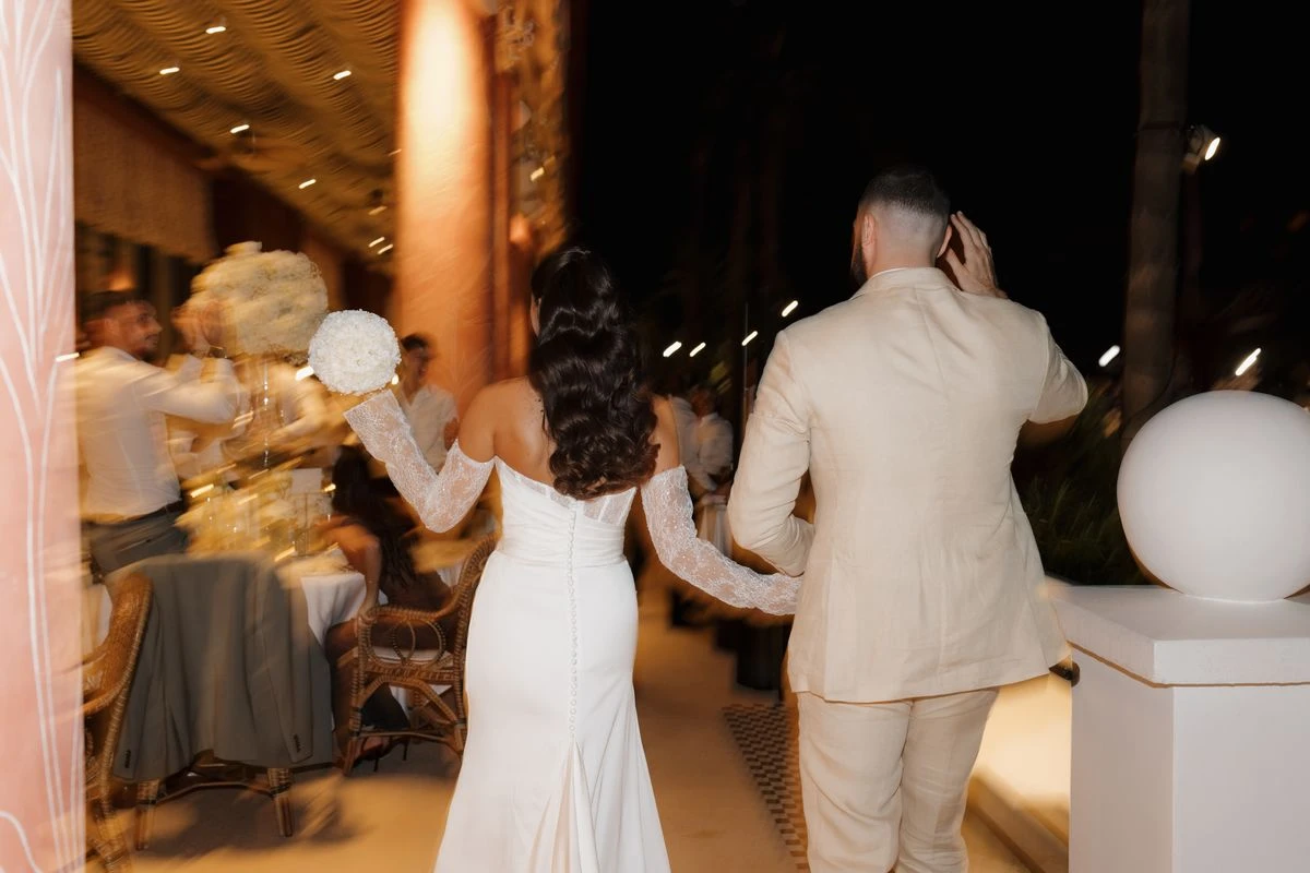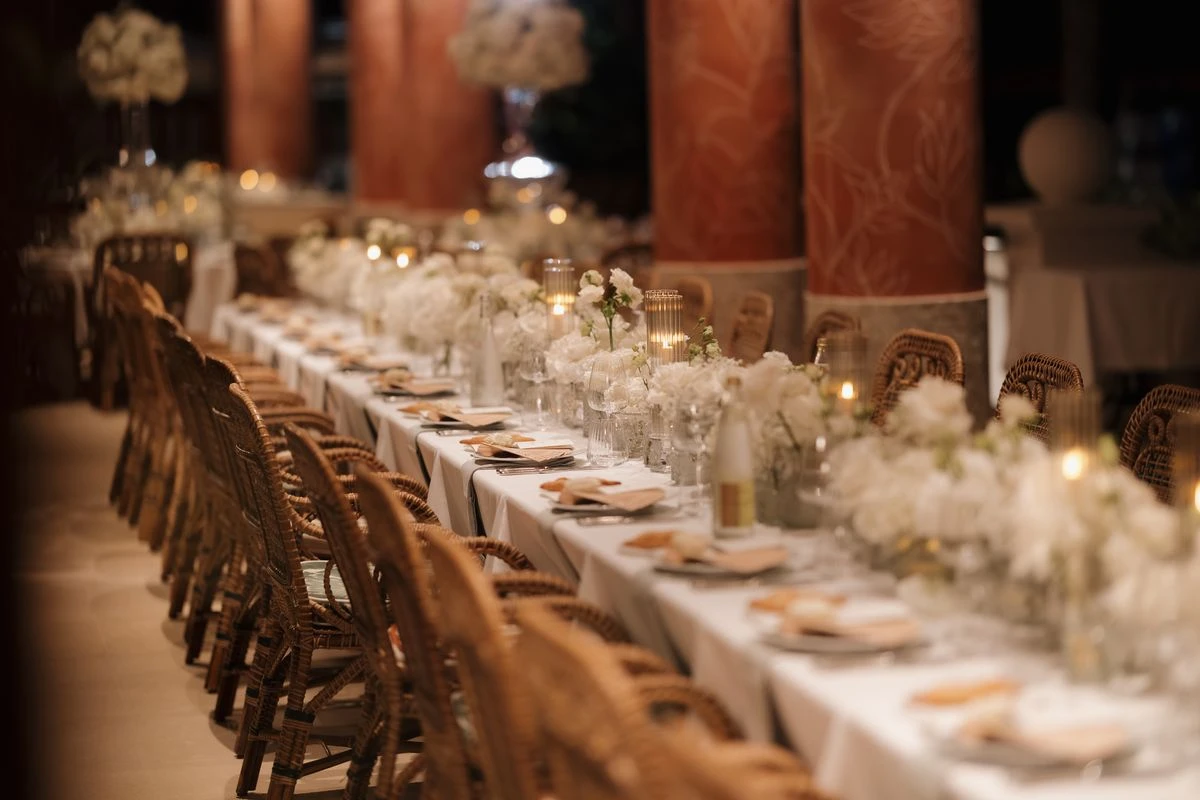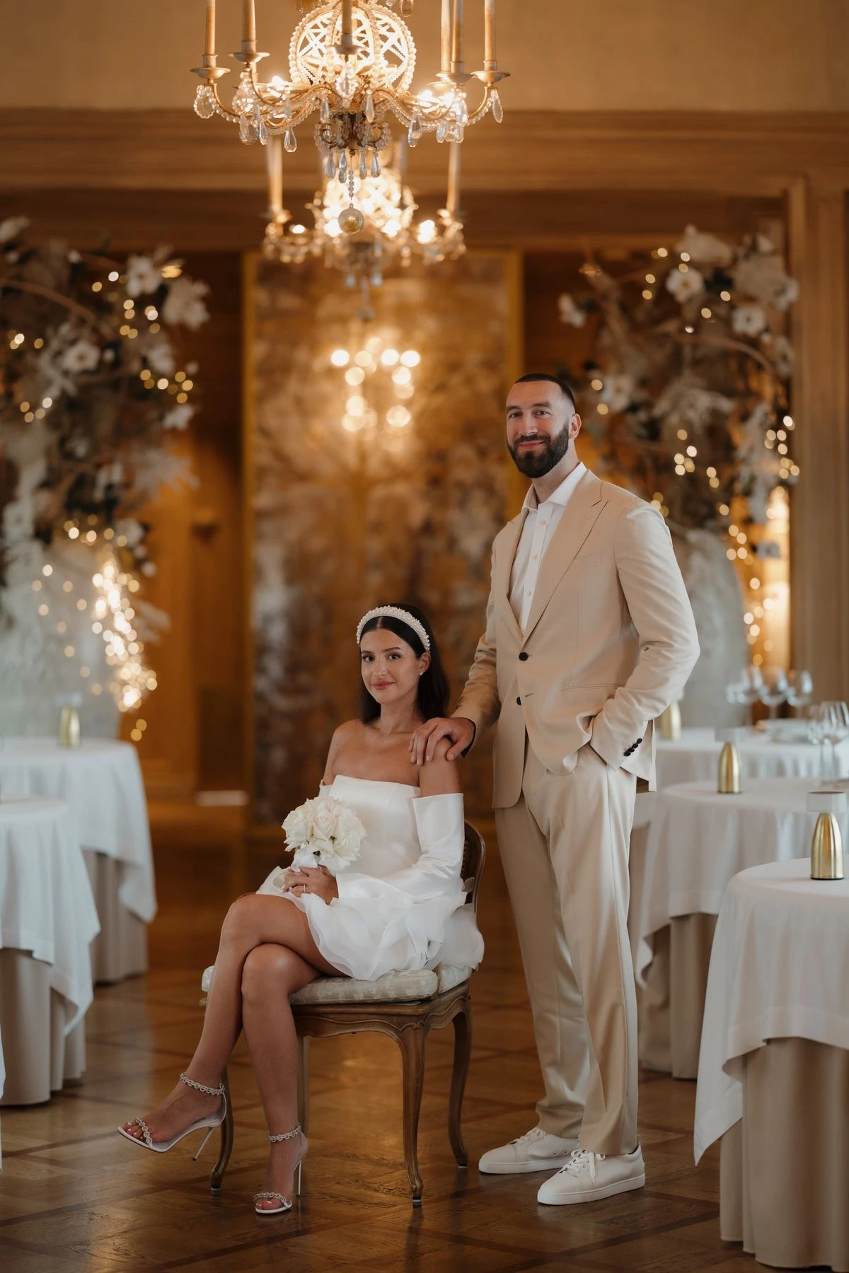Je les ai tous trouvés sur Instagram, car le contact est rapide et le travail des prestataires y est très visible. Pour le lieu, il s’agit d’un endroit emblématique de Monaco : le Monte-Carlo Beach Club. Nous savions dès le début que nous voulions nous marier là-bas si nous en avions la possibilité. C’était également très pratique, car nous étions presque tous sur place et nous ne voulions pas faire trop déplacer les personnes âgées, ce qui était primordial pour nous, notamment ma grand-mère de 94 ans, qui nous a apporté les alliances et qui compte énormément pour moi.