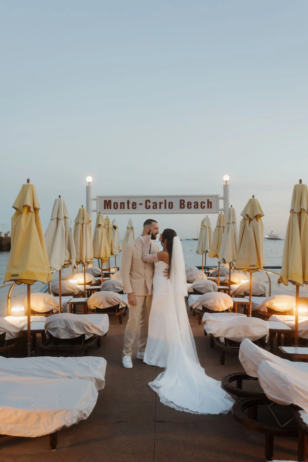 Découvrez le témoignage et les images du mariage chic de Giulia et Philippe qui a eu lieu au Monte-Carlo Beach, à Monaco.