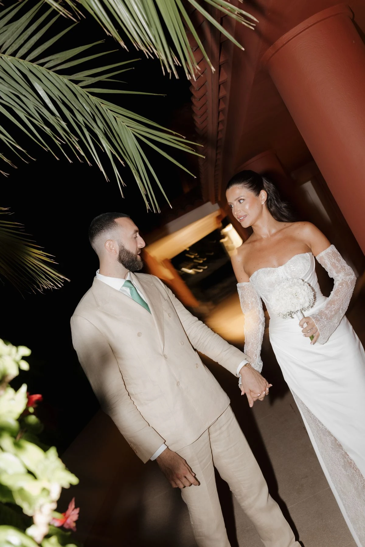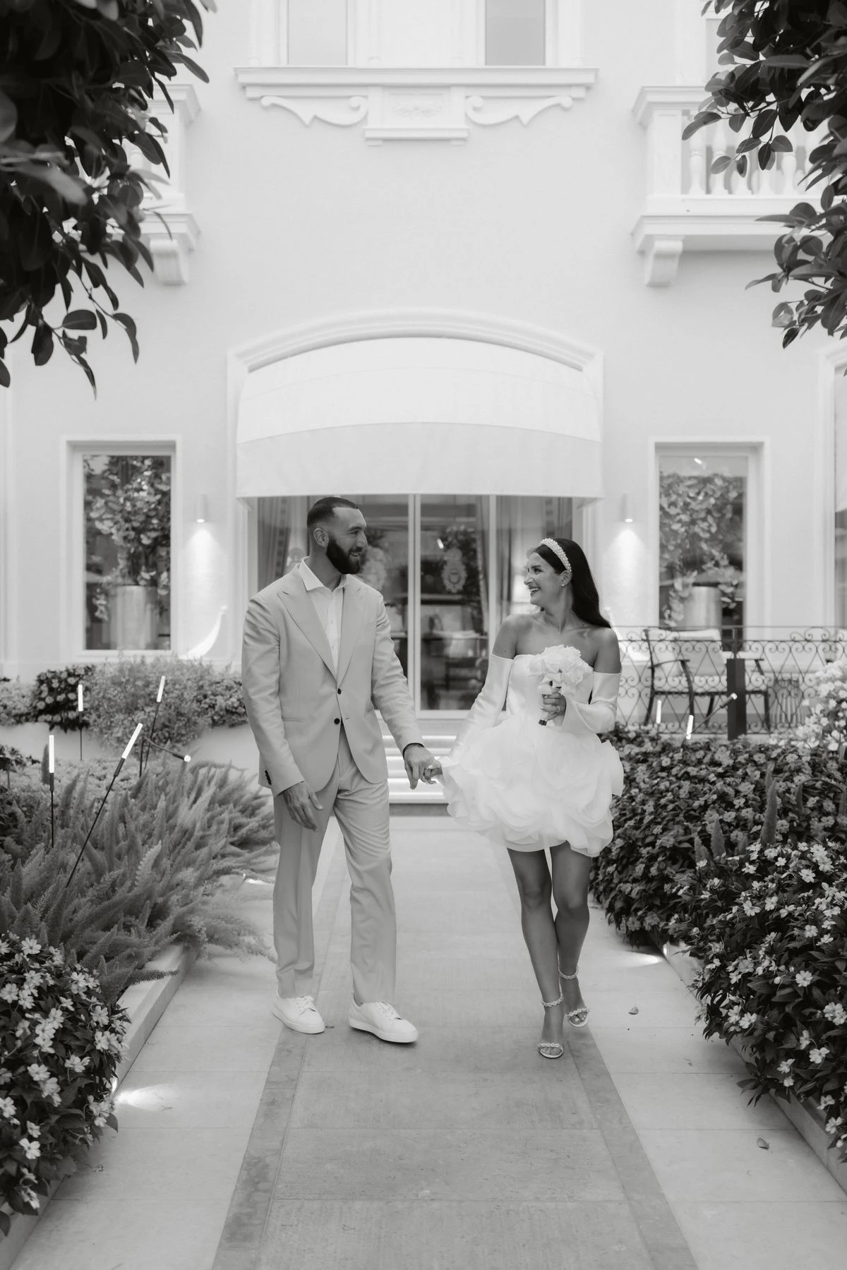 Pour notre thème, cela a été assez simple. Nous voulions quelque chose qui nous ressemble : un mariage épuré, chic, mêlant nos deux cultures, le Liban et l’Italie, qui se rejoignent sur la French Riviera.