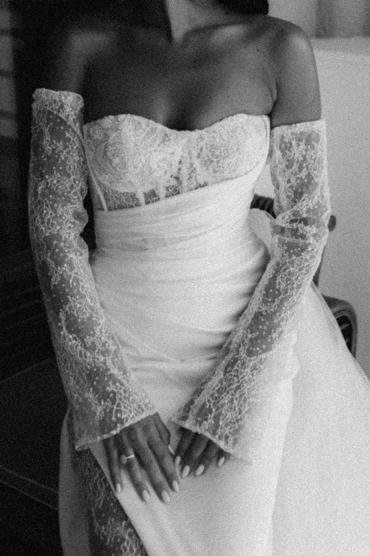 Je pense que l’une des choses les plus importantes lors d’un mariage est que la mariée se sente belle. Nous sommes toutes différentes, mais nous savons quand nous nous trouvons belles. Ce sentiment est essentiel, car s’aimer ce jour-là rejaillit sur tout le reste. J’ai volontairement évité de regarder d’autres mariages sur les réseaux sociaux pendant les préparatifs afin que ce mariage et mes robes soient vraiment à mon image. Il faut suivre son intuition et écouter sa petite voix intérieure.