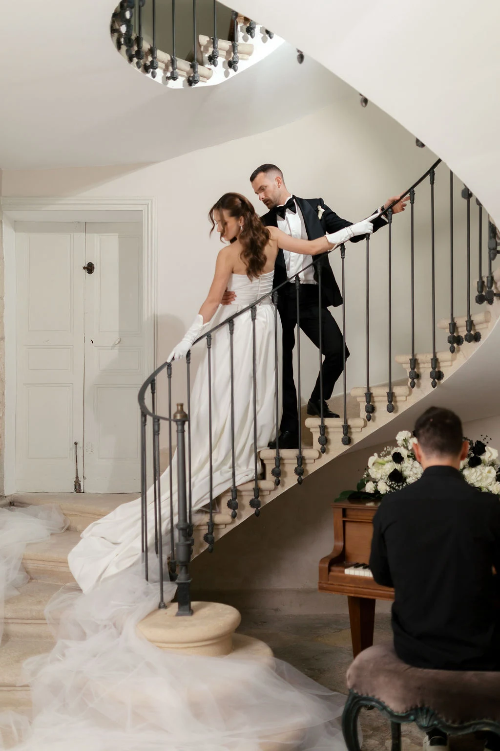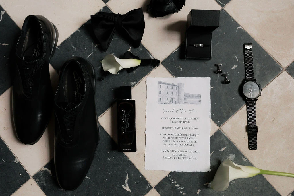 Chaque scène est ponctuée de détails qui ajoutent charme et émotion, la papeterie de My Sweet Papers, la musique du trio à cordes Melodia Violin Duet, et la voiture vintage Provence Classics.