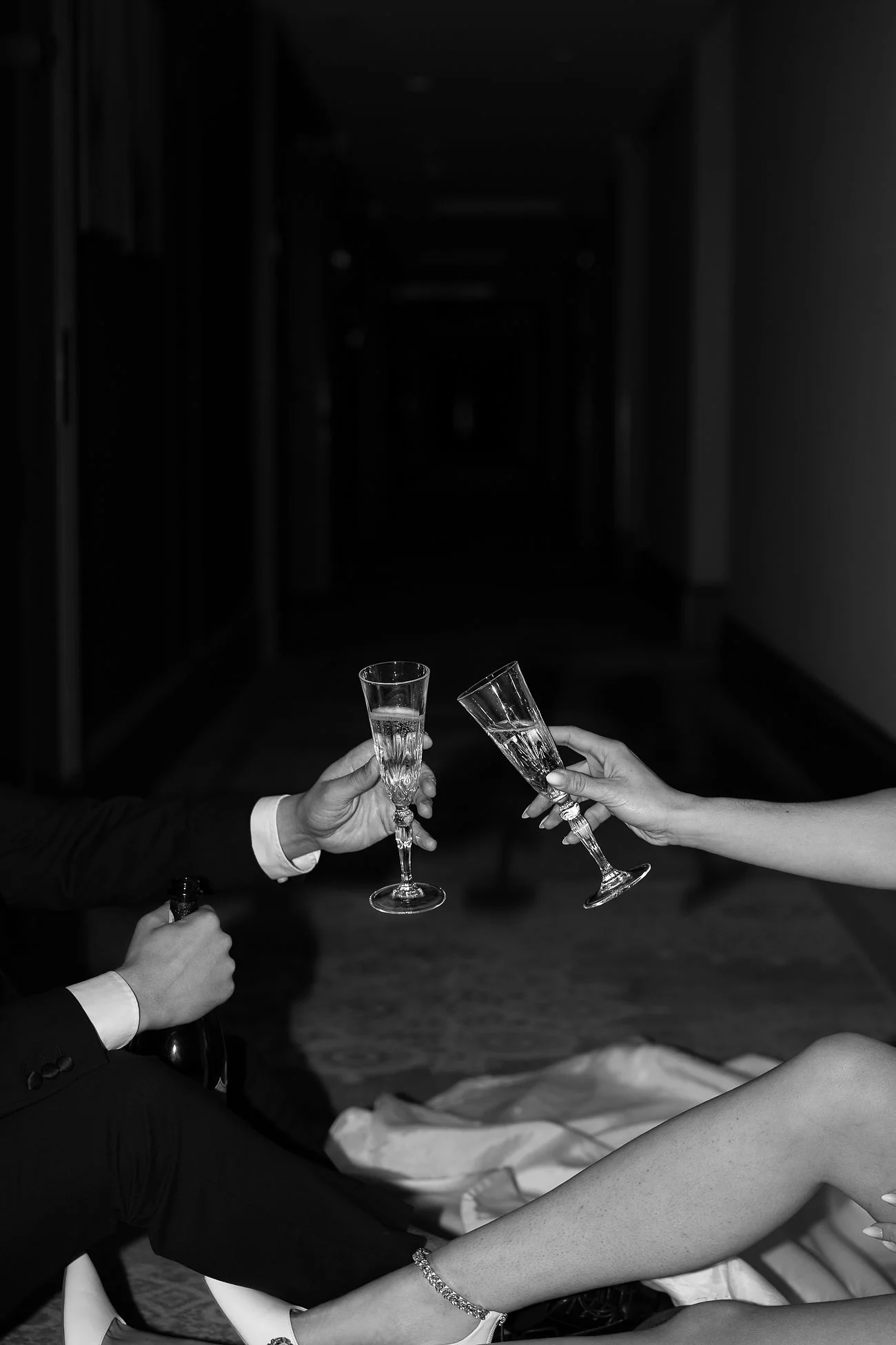 La réalisation d’un shooting de nuit et à l’aube dans un hôtel 5 étoiles a nécessité une équipe photo/vidéo pour respecter la quiétude des clients de l’Intercontinental. Les photographes sont Alexandra Sellier (Founder & main shooter), Delphine Closse (Assistant & Second Shooter), Caroline Merou (Second Shooter) et Flavien François (Vidéaste & Droniste pour les jumeaux mariages). Une équipe travaillant ensemble vers un même univers artistique.”