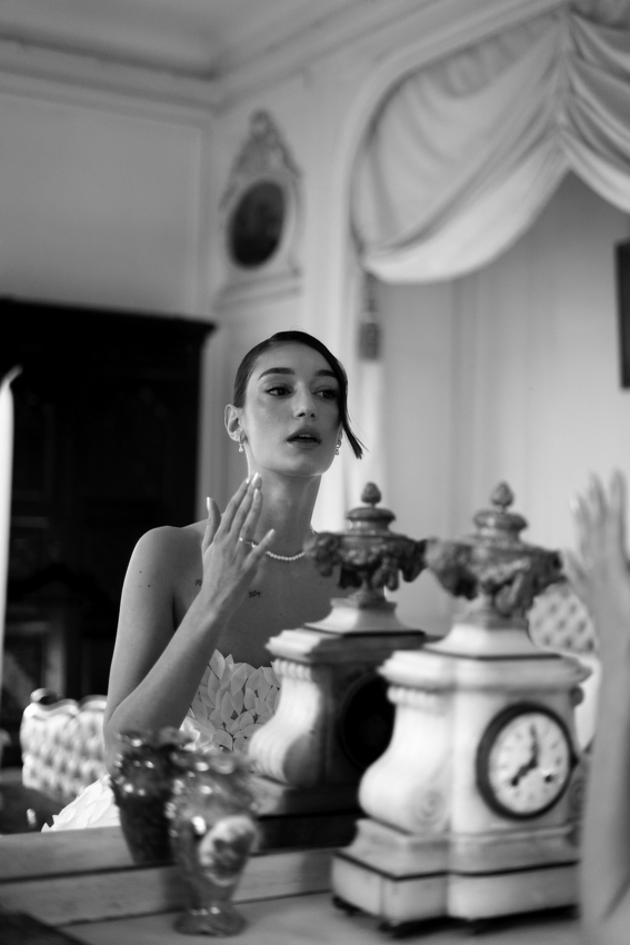 Symbolique : Cloud Dancer est bien plus qu’un choix esthétique pour ce shooting d’inspiration. Au de-la de l’évocation de la couleur blanche, il porte plusieurs messages :