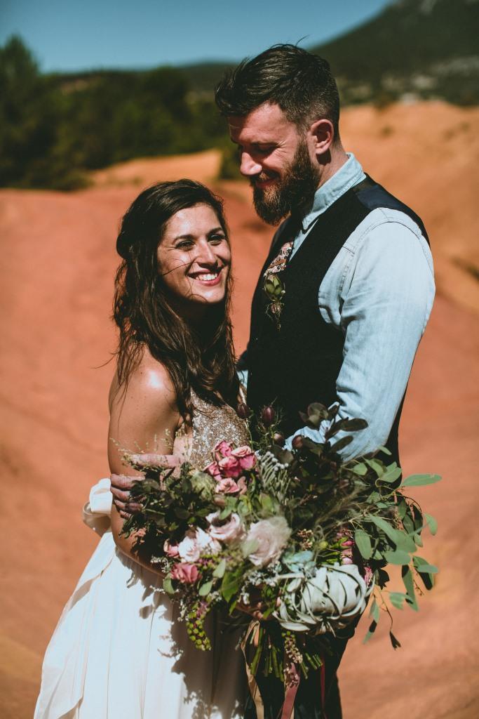 Amandine de June the Bride nous raconte comment ils ont organisé et comment s’est déroulé se superbe shooting ! “Nous avons eu envie de créer une inspiration qui s’inspirait du style désert. Et puis nous sommes partis sur le Colorado mais il était difficile pour un projet de déplacer toute l’équipe dans le real Colorado. Marie & Florent [La Paire de Cerises] nous ont proposé ce lieu en France et là WHAOU nous sommes tombés amoureux ♥ Arrivée à 8H au Colorado Provençal… Ce jour là il a fait chaud très très très chaud et nous remercions encore Charlène & Pop de leur patience pour les plans. Les pauses sous les pins ont été plus qu’apprécié.