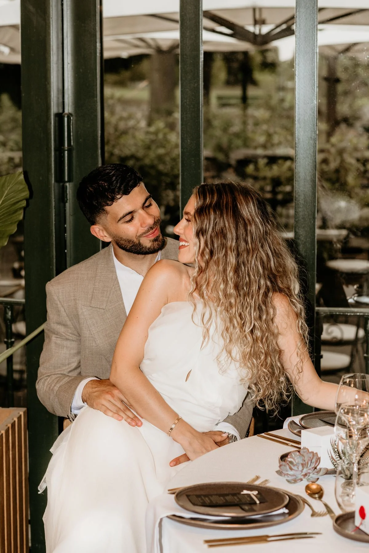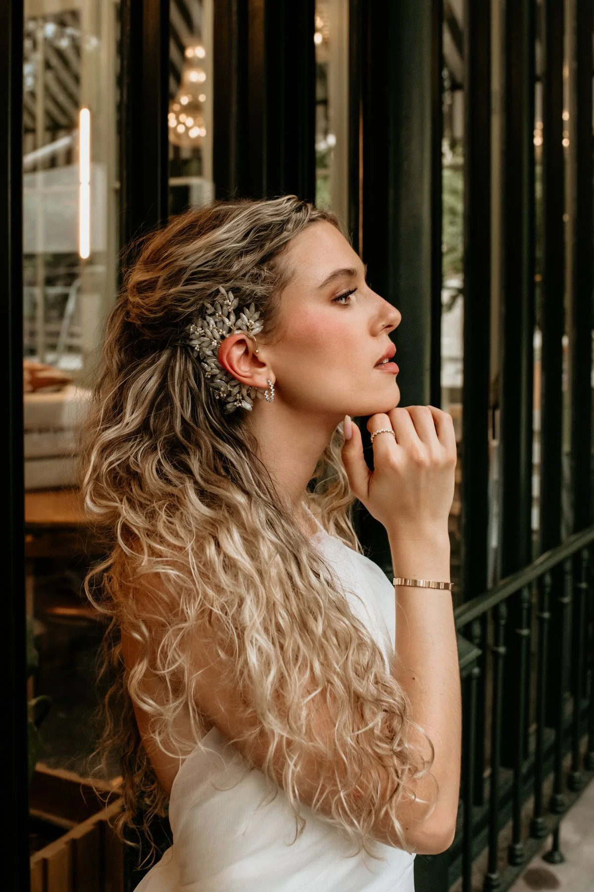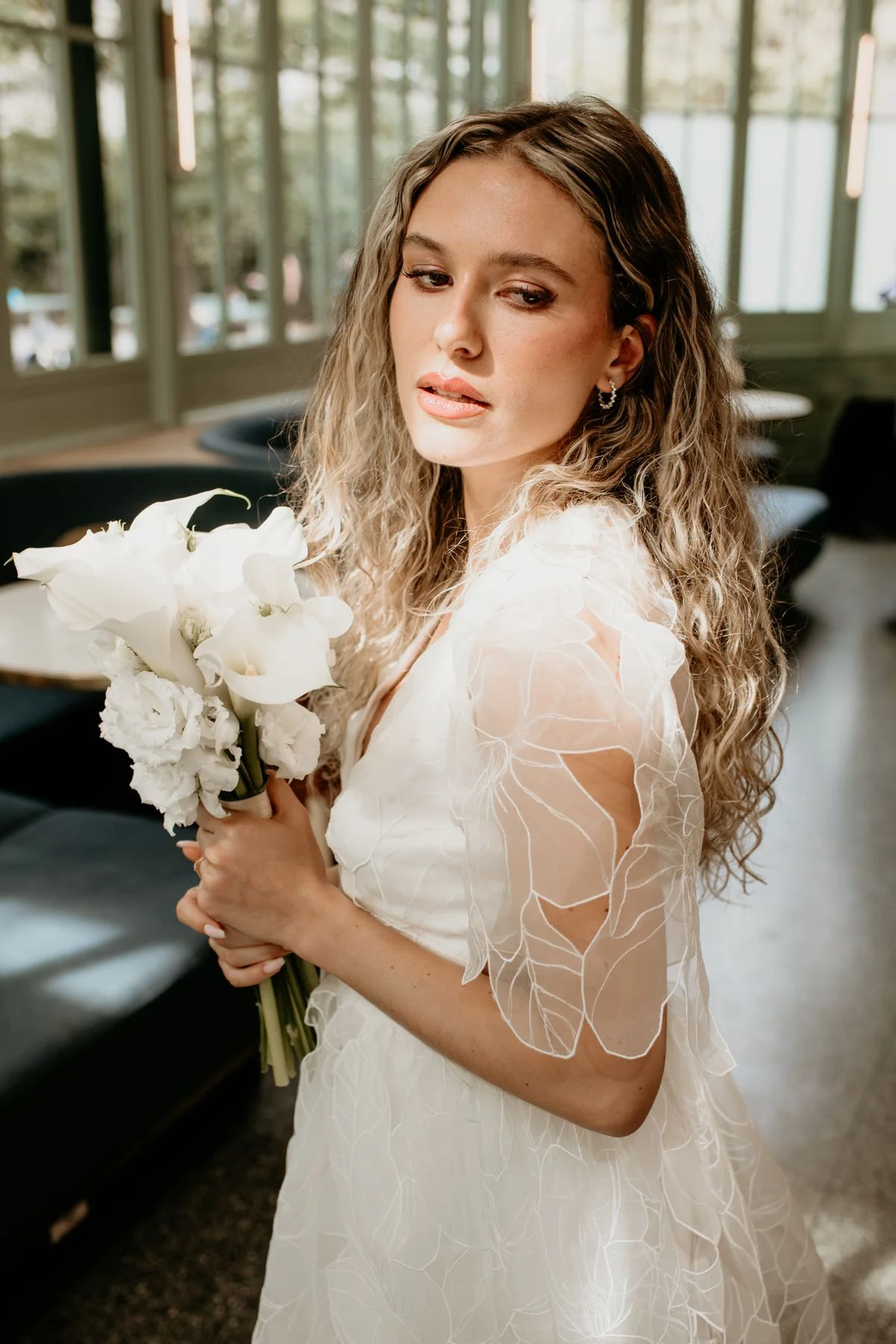 Chaque élément de ce shooting a été minutieusement pensé pour refléter l’esprit d’un couple d’aujourd’hui. La mariée, une femme libre et affirmée, arbore une chevelure ondulée qui se joue des convenances, tandis que le marié affiche une élégance décontractée mais raffinée. Ensemble, ils prouvent que la sophistication réside dans l’authenticité.