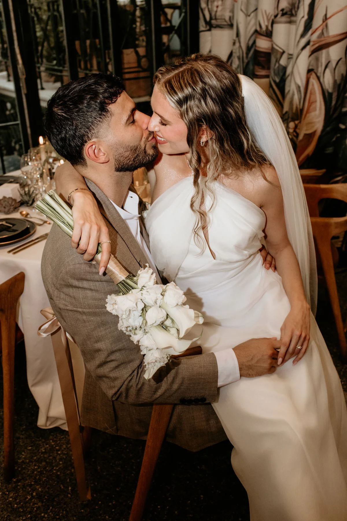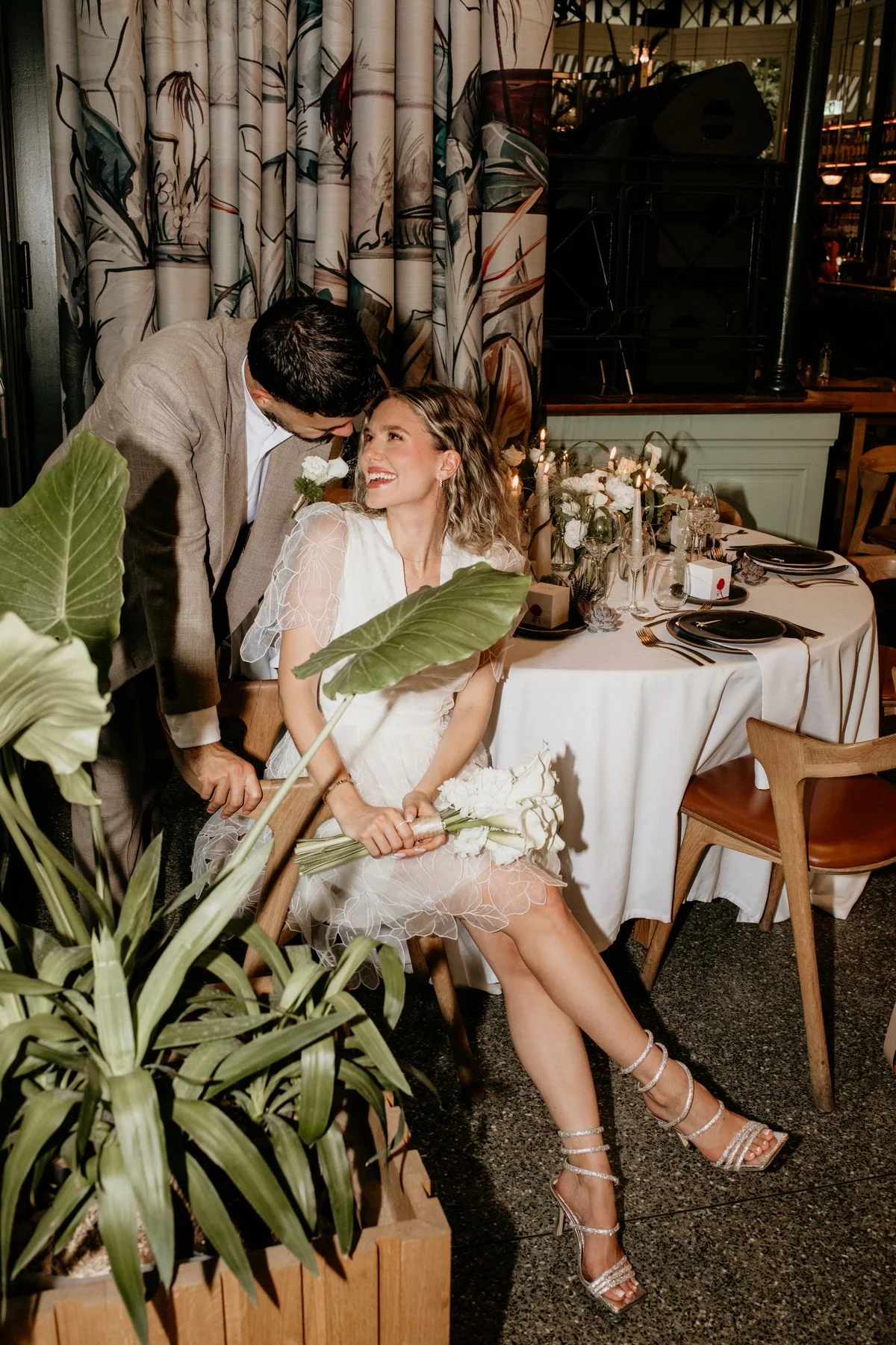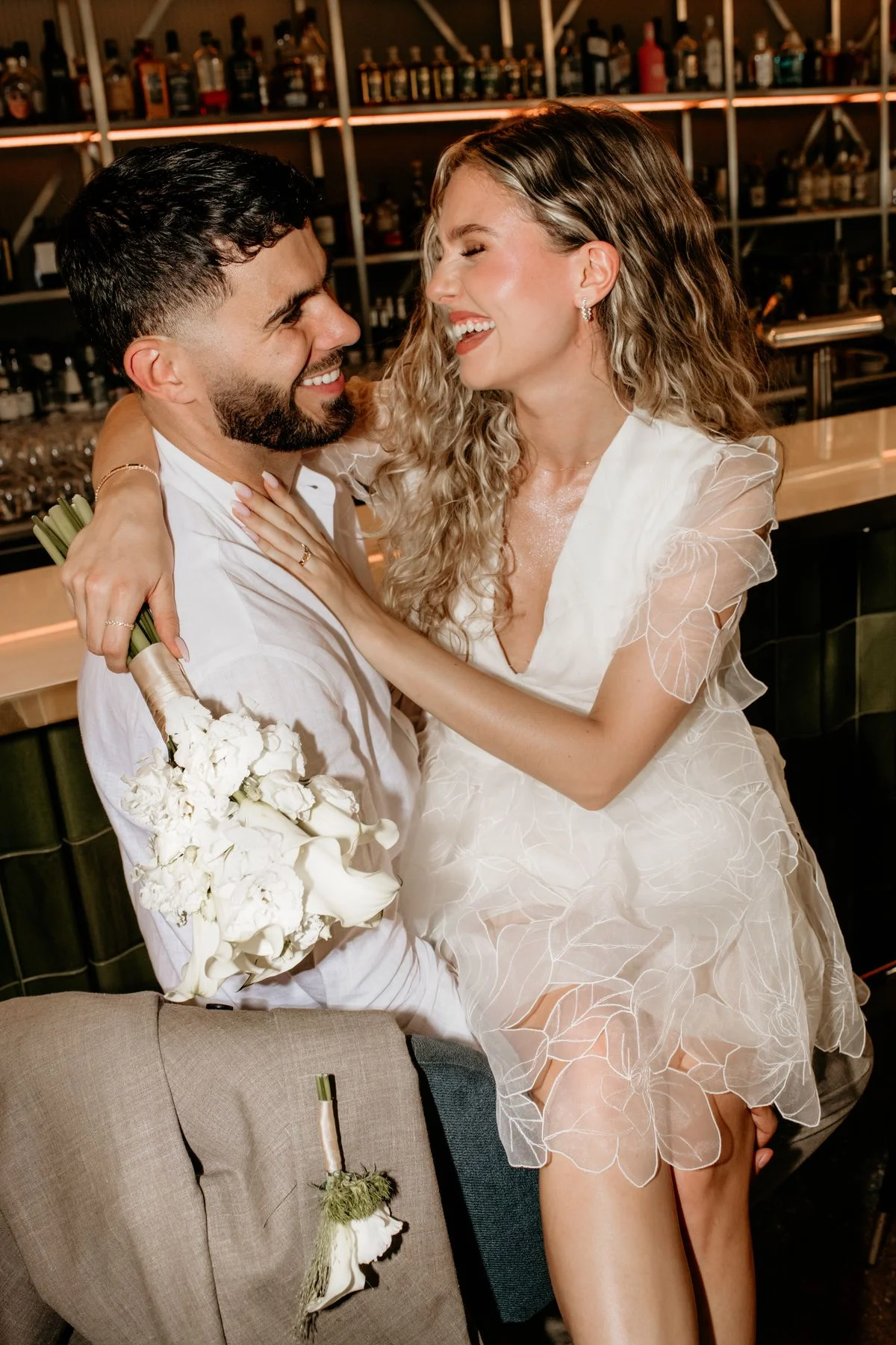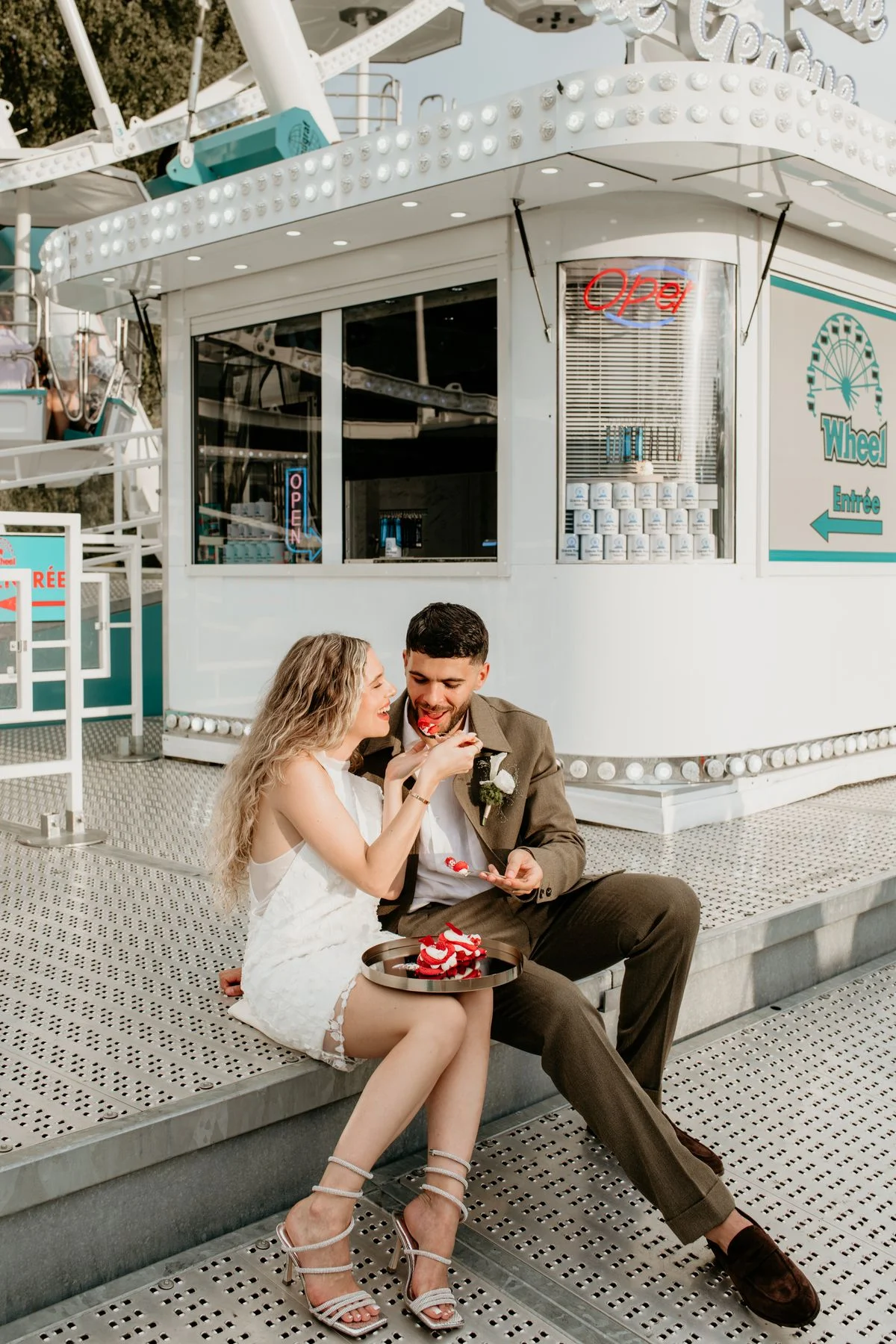 Chaque élément de ce shooting a été minutieusement pensé pour refléter l’esprit d’un couple d’aujourd’hui. La mariée, une femme libre et affirmée, arbore une chevelure ondulée qui se joue des convenances, tandis que le marié affiche une élégance décontractée mais raffinée. Ensemble, ils prouvent que la sophistication réside dans l’authenticité.