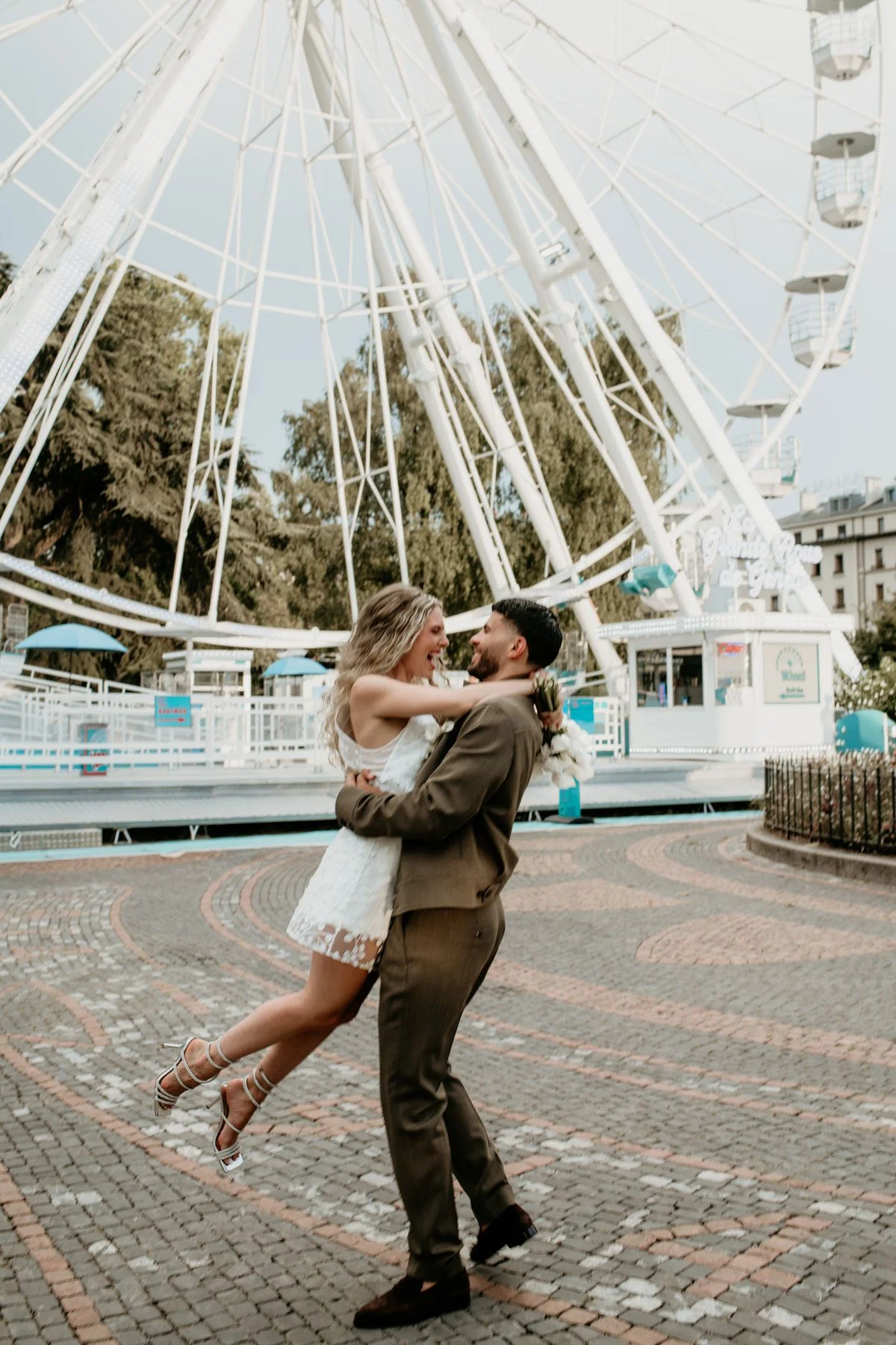L’épilogue, une dernière image de ce couple sur la grande roue… Genève Mon Amour.  Un moment de grâce suspendu au-dessus de la ville avec en toile de fond le jet d’eau, symbole emblématique de la ville de Genève.