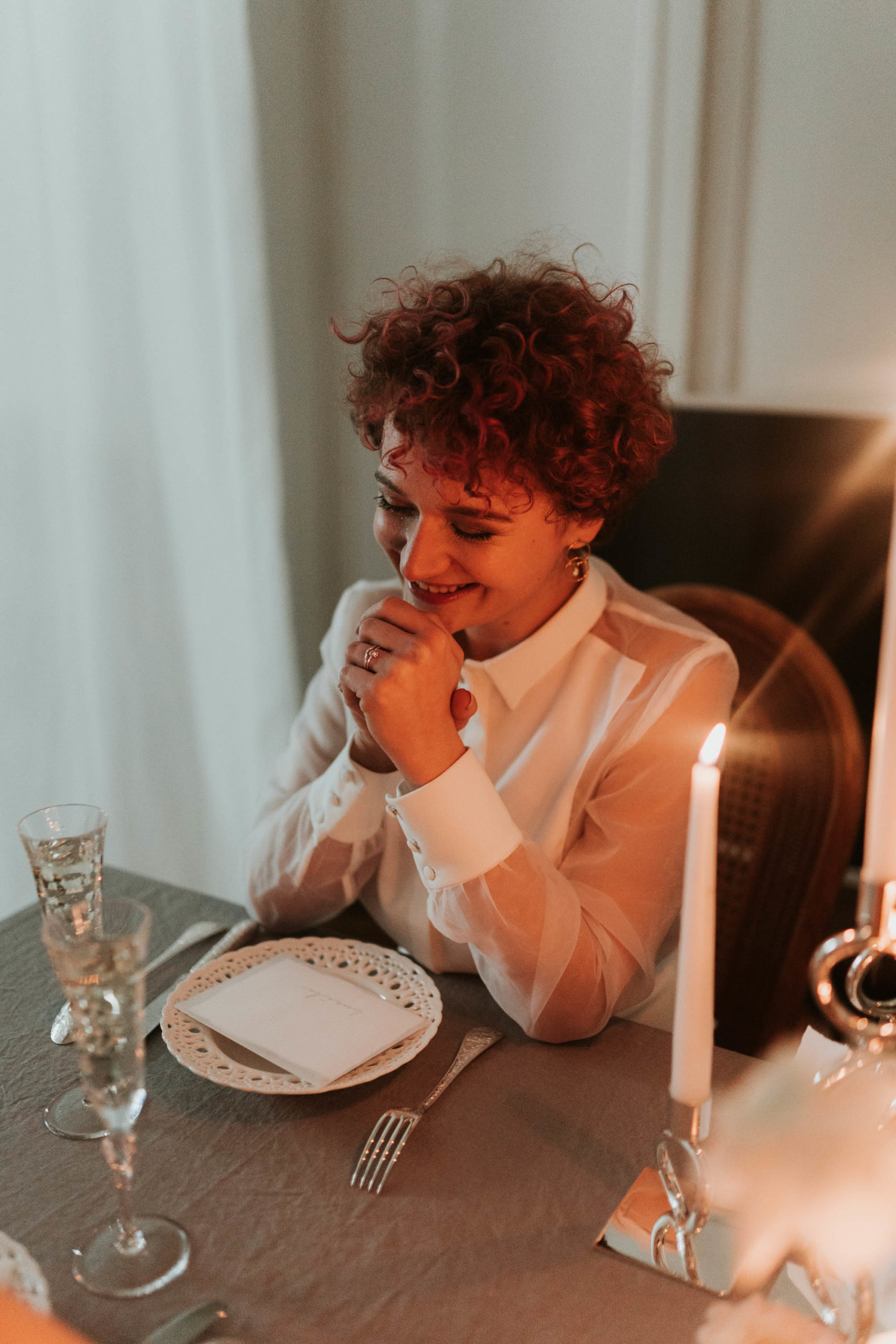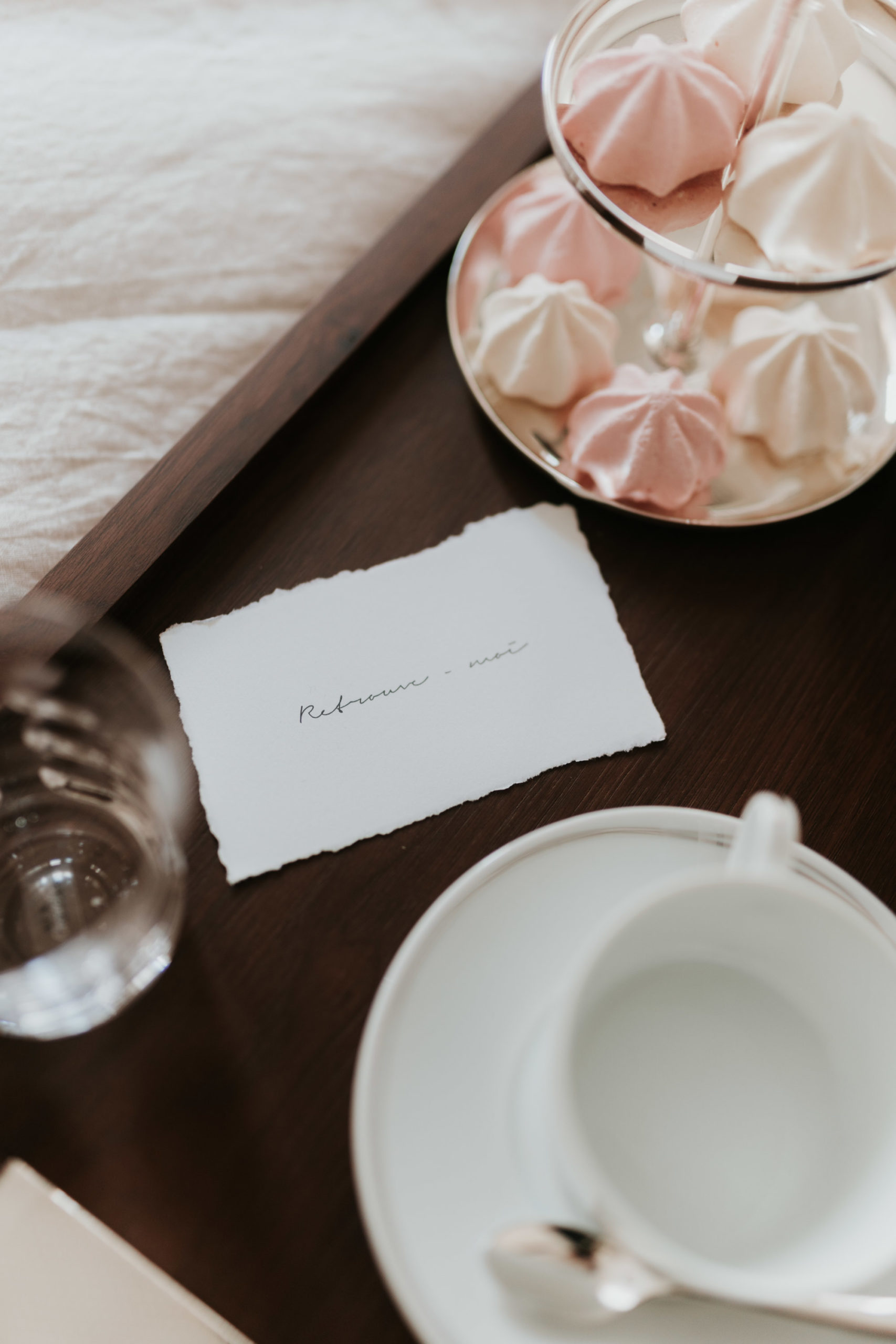 « Le jour J, nous sommes arrivées dans ce joli appartement Lyonnais dans lequel nous avons passé la journée. Lucile a commencé la matinée toute seule, en recevant une petite carte sur lequel était noté “Retrouve-moi”. De l’autre côté, c’était Marie qui avait une petite carte avec un point d’interrogation. Après quelques temps d’attente, elles se sont retrouvées dans la chambre pour poursuivre la journée ensemble. On a eu de la chance d’avoir une très belle lumière dans l’appartement, ce qui donne un côté encore plus doux aux photos. »