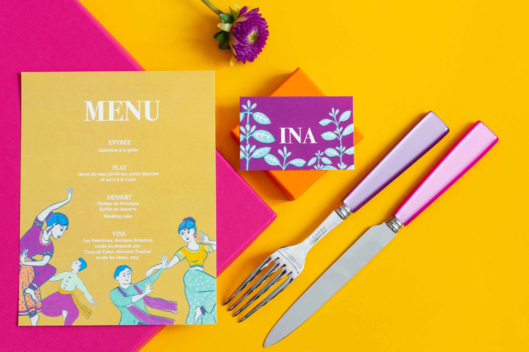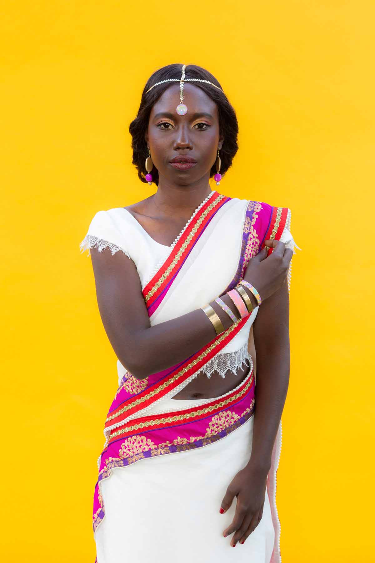 Orchestré par 2 Fois oui (Créatrice de papeterie), J&T (créatrice d’accessoires) et Mariecarlota Photographie, ce nouveau shooting s’inspire de la mise en scène du cinéma Bollywoodien, du glamour, de l’Inde et de ses couleurs vives.