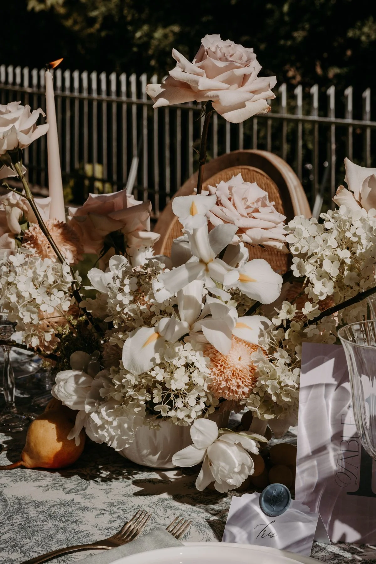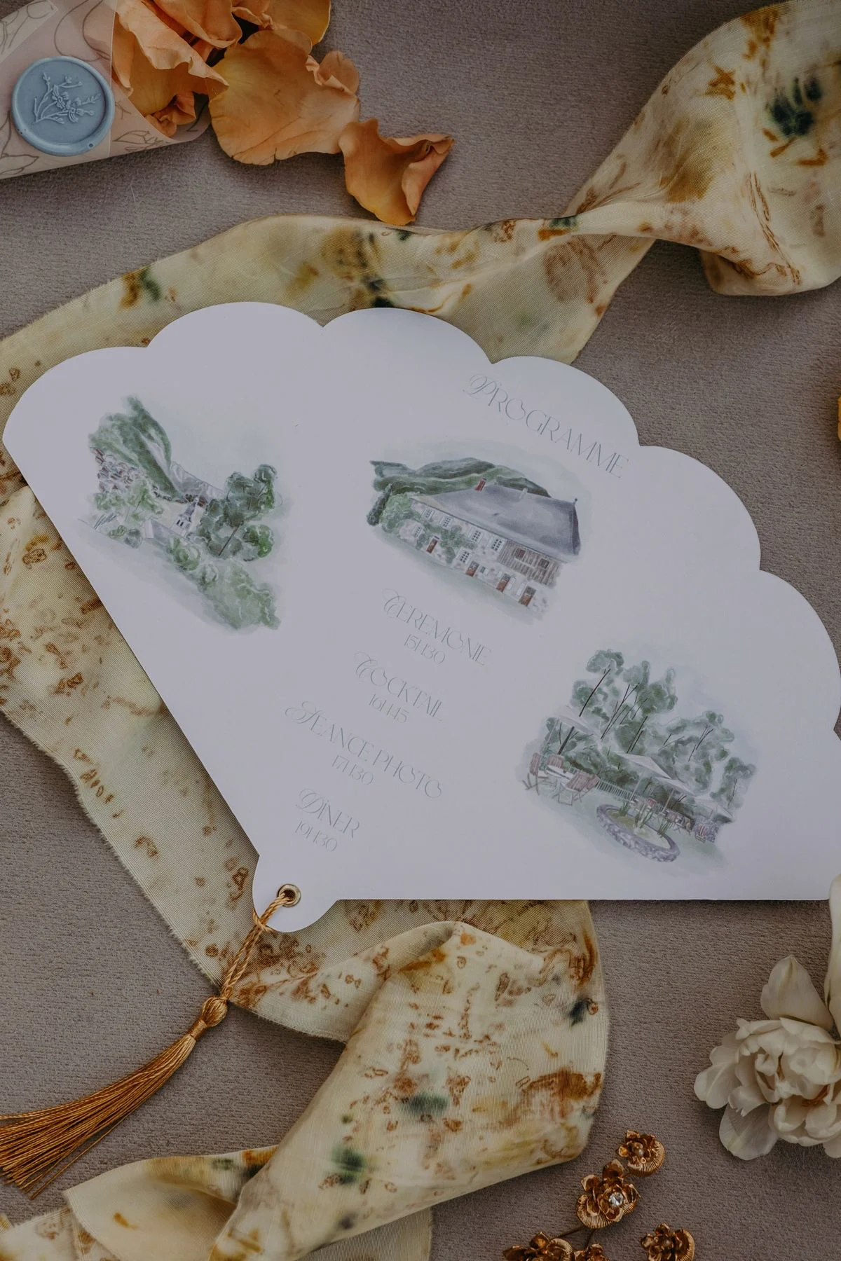 Par ce shooting, nous avons souhaité mettre en avant un mariage moderne et élégant, tout en restant intemporel et romantique. La direction artistique a été menée par Marion, créatrice de papeterie chez Koklyqo, et Julie, wedding planner de l’agence Love is all Events, qui ont voulu mêler leurs identités poétiques et éco-sensibles. Nous avons imaginé un mood coloré mais doux, tout en y apportant une touche “couture” pour un rendu audacieux et tendance.