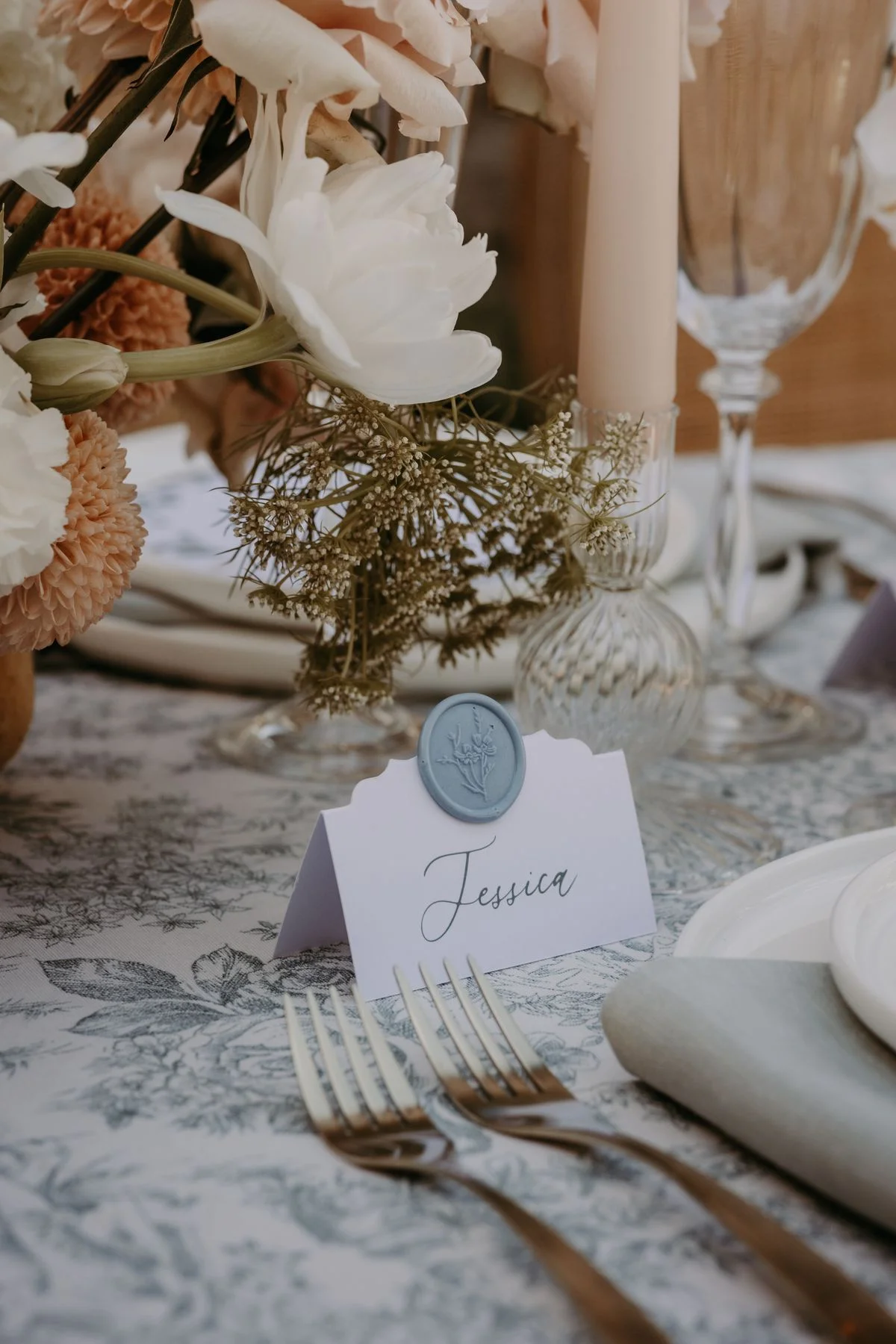 La décoration a été pensée par Marion, de Koklyqo, Maurine, décoratrice de Moème, et Audrey, fleuriste de Dix Octobre. Elles ont ensemble imaginé cet univers bucolique, moderne et intemporel, et travaillé chaque détail pour créer cette cohérence et cette osmose. Plusieurs éléments de décoration ont été loués à Maison Options Lyon, tels que le mobilier, la vaisselle et les nappages.