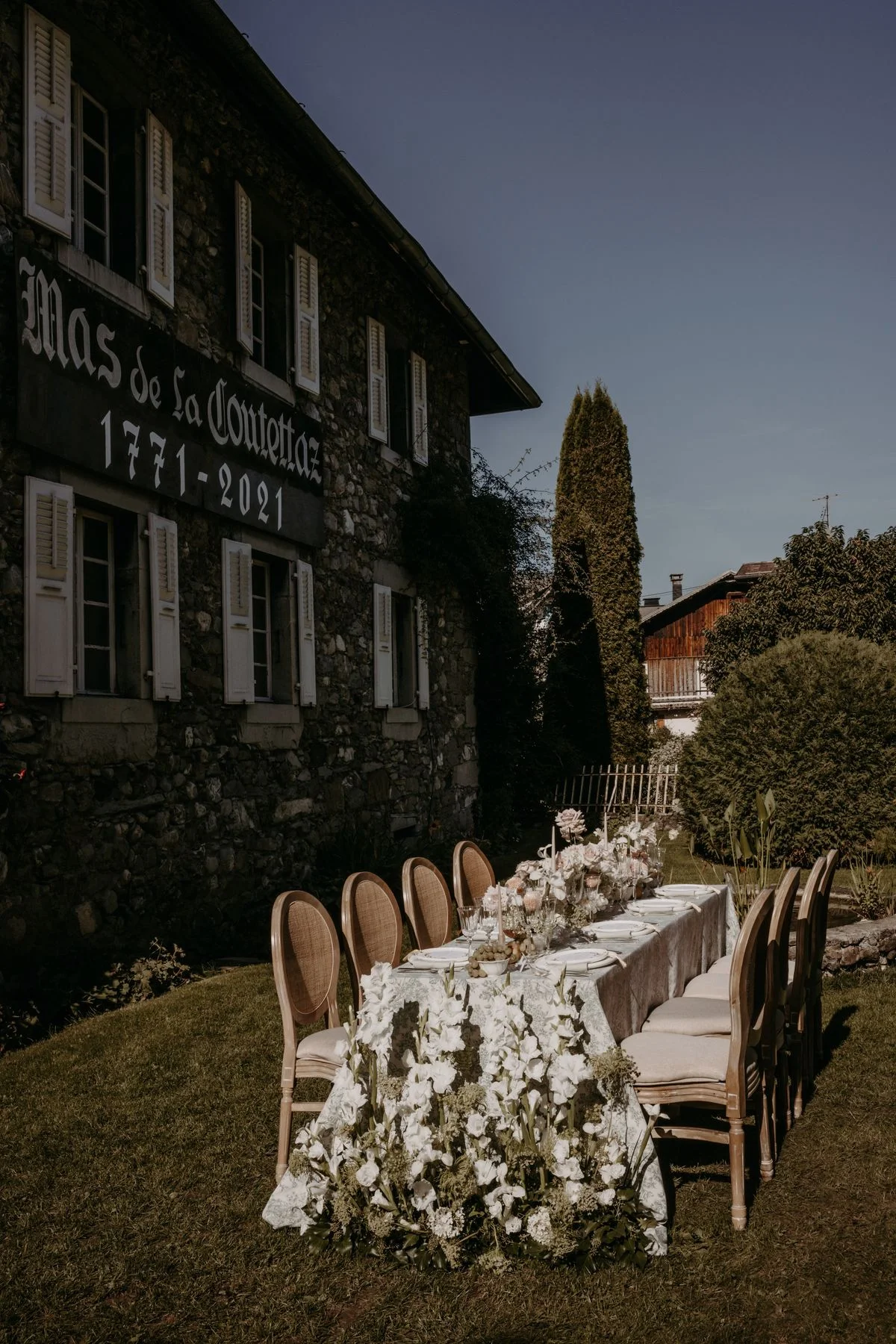 Le shooting d’inspiration “Osmose”, qui a eu lieu à la Farmhouse de Morzine, met en lumière un mariage moderne et poétique. Pensée comme une ode aux paysages alpins, cette mise en scène célèbre une élégance naturelle où se rencontrent authenticité et raffinement.