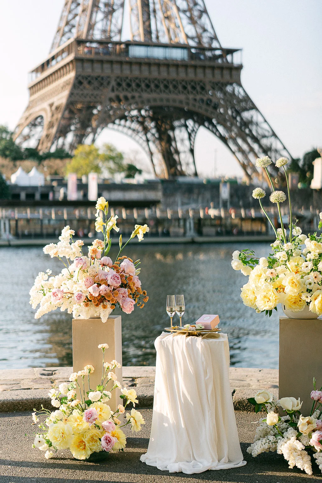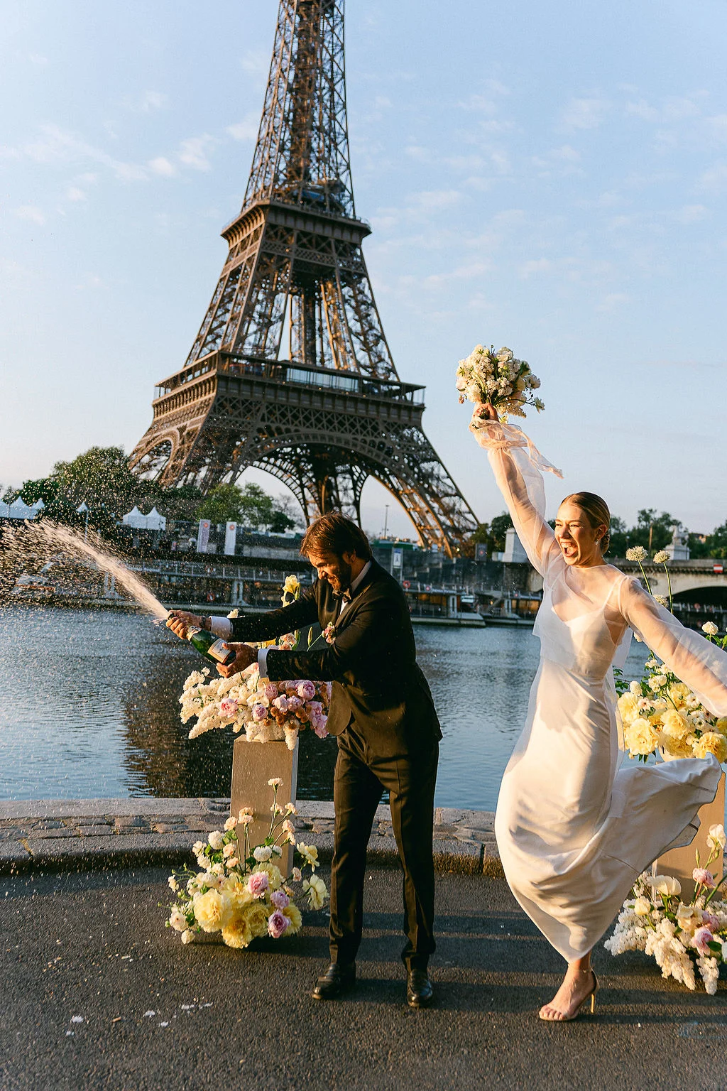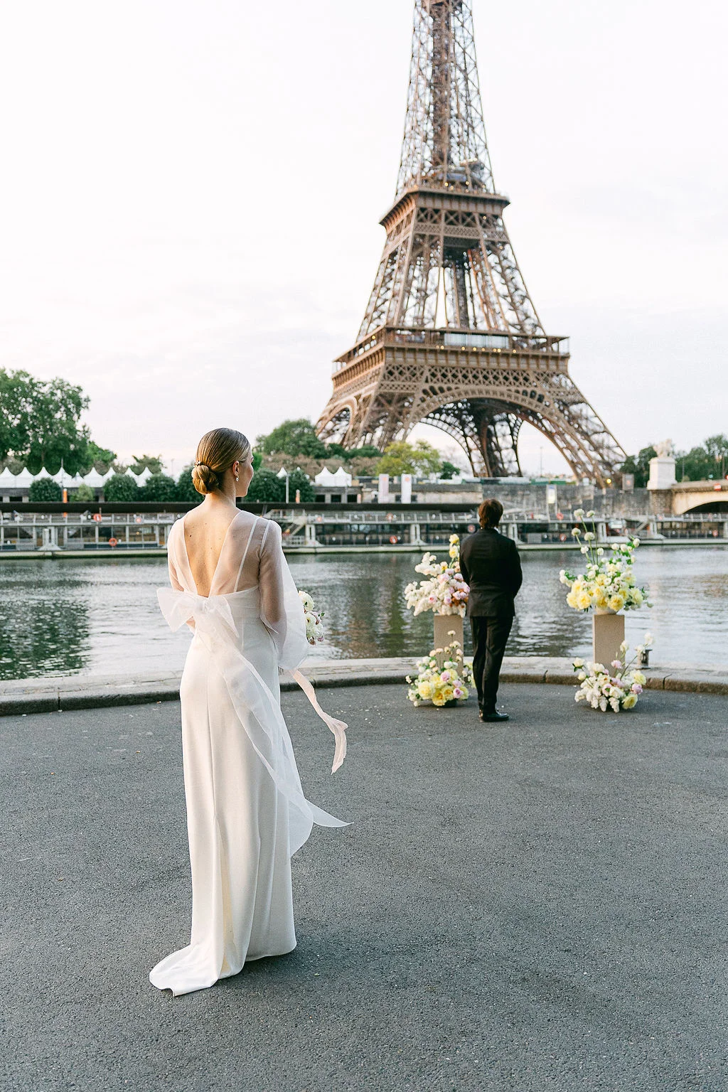 “Ce projet met en scène un couple d’amoureux venus d’Angleterre, tombés sous le charme de la Tour Eiffel lors d’un précédent séjour à Paris. C’est tout naturellement qu’ils ont souhaité y revenir pour se dire “oui”, au lever du soleil, dans une atmosphère feutrée et romantique.