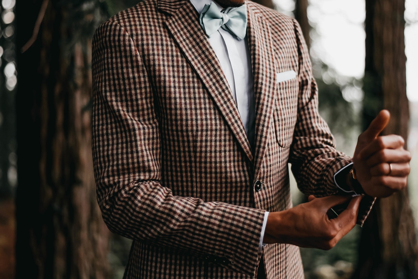Pour la tenue homme, j’ai voulu mettre en avant le côté  « So british » du lieu. Nous sommes donc partis sur un blazer de qualité que j’ai couplé avec un jean d’une grande enseigne pour les mêmes raisons que la tenue femme. » Edwige Mugica.