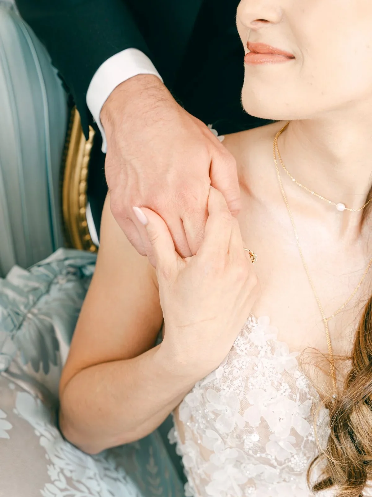 Et puisqu’aucun détail n’a été laissé au hasard, ce shooting c’est aussi un choix de bijoux résultat d’un savoir-faire artisanal précieux et des alliances issues du savoir-faire d’une bijouterie-joaillerie haut de gamme pour sceller symboliquement cette union, mises en scène au travers du flatlay.