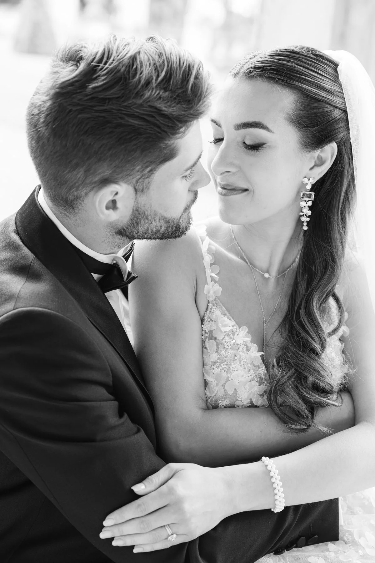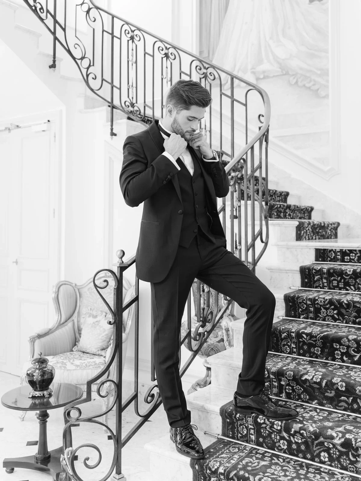 À l’illustration de cette fabuleuse histoire, une scénographie sublimée par des savoir-faire artistiques précieux : des conceptions florales exclusives et élégantes, et une papeterie d’exception mêlant calligraphie et illustrations, soigneusement pensées pour ce shooting d’inspiration et pour l’Alexandra Palace. Et pour rendre l’imaginaire réalité, un couple plein de tendresse, magnifiquement sublimés par leur mise en beauté, mais aussi par leurs tenues : un smoking noir pour l’élégance intemporelle et une robe digne d’un conte de fées, aux détails élégants et raffinés.