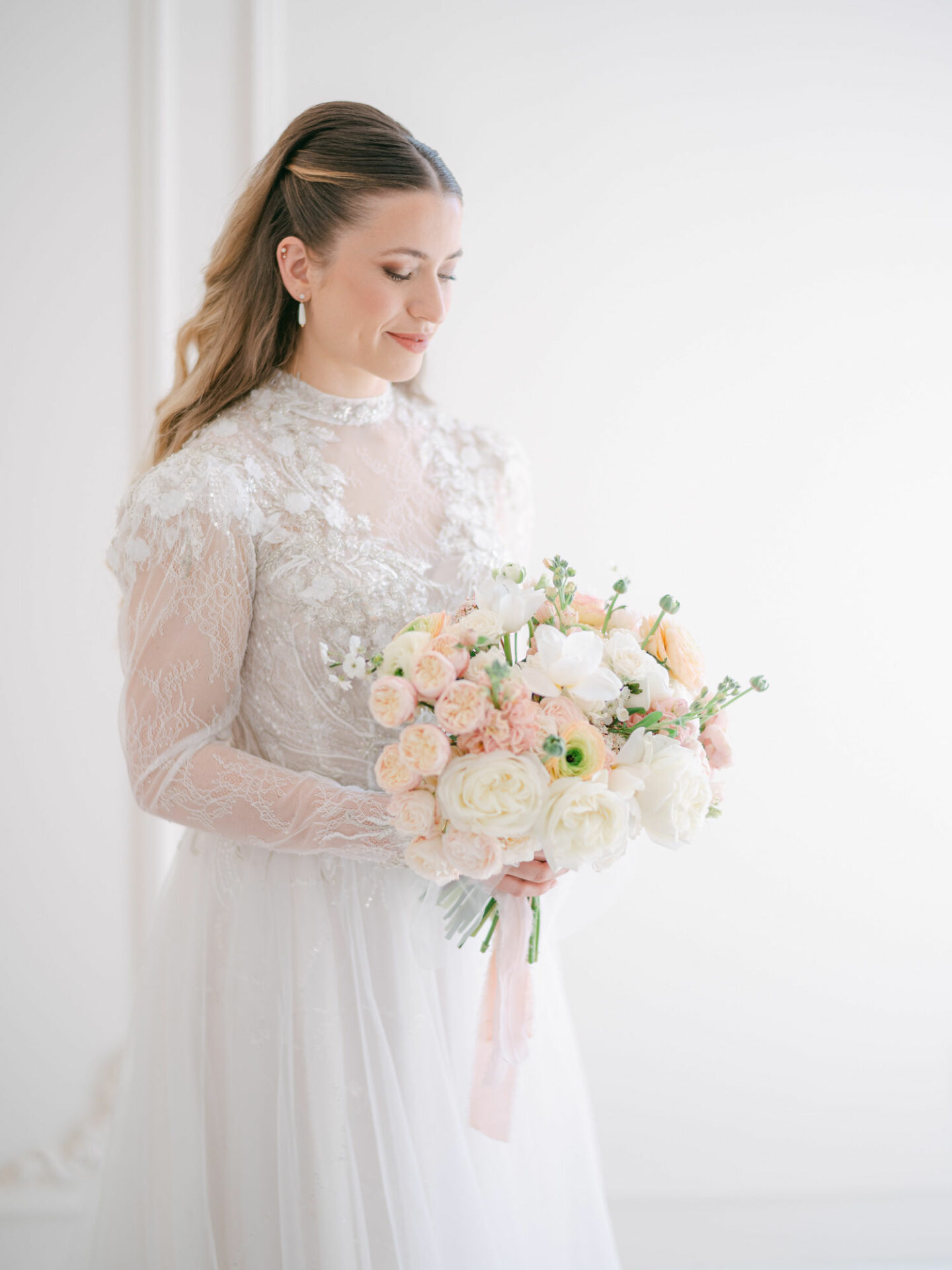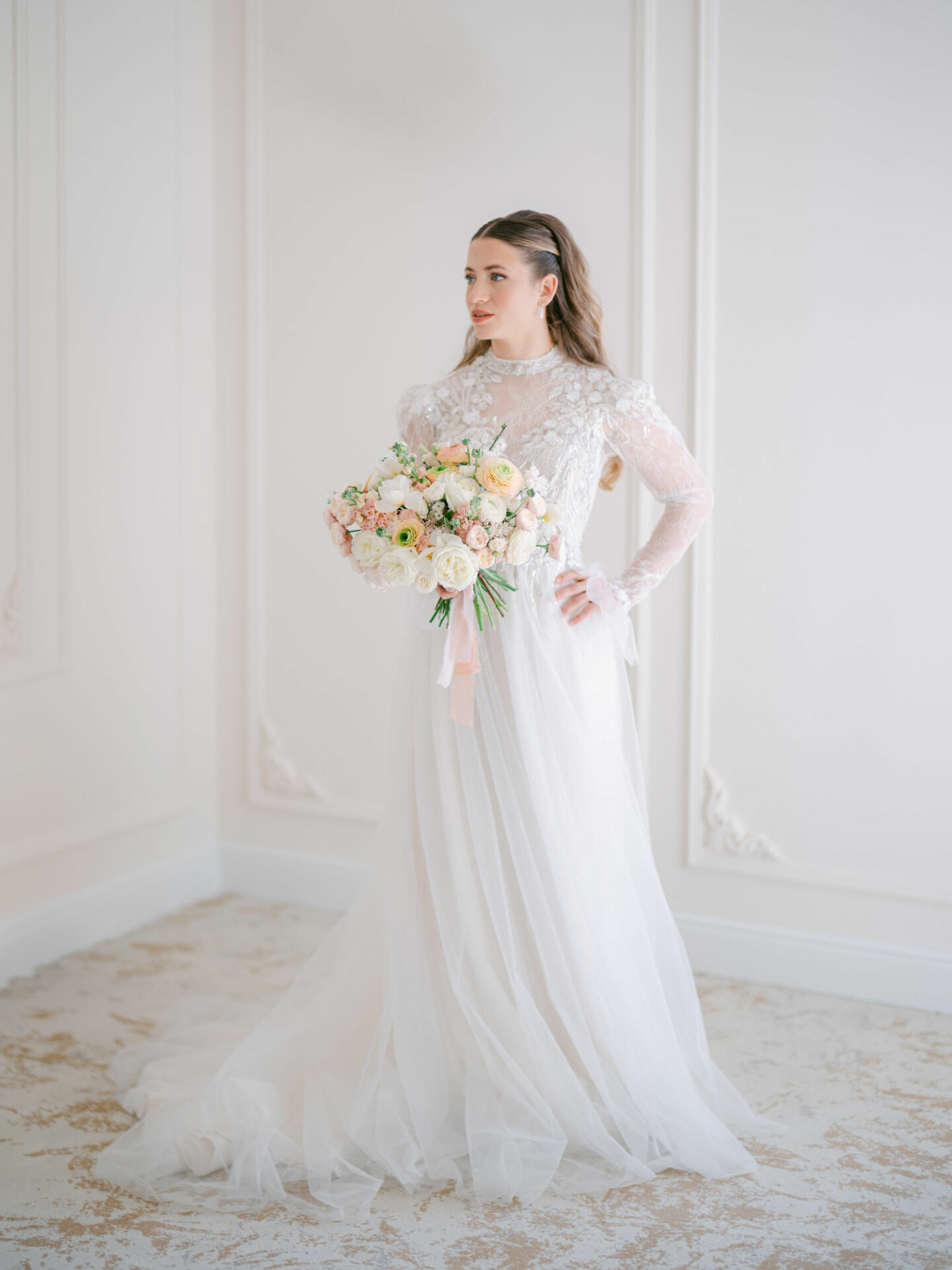Pour mettre en valeur ce joyau, j’ai imaginé un shooting d’inspiration printanier mêlant élégance intemporelle, fleurs généreuses et détails raffinés, en collaboration avec une équipe de prestataires talentueux.